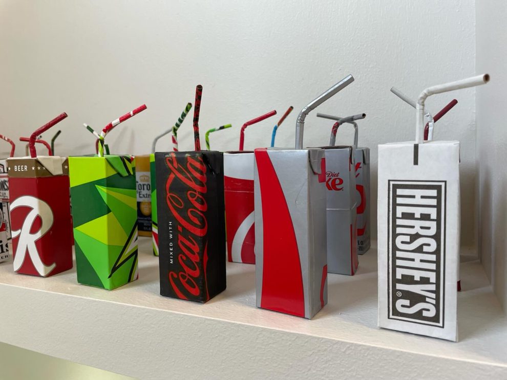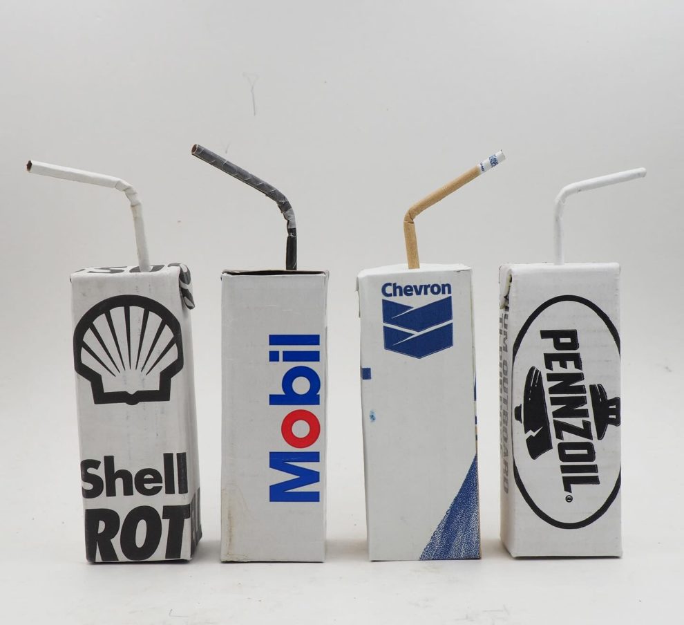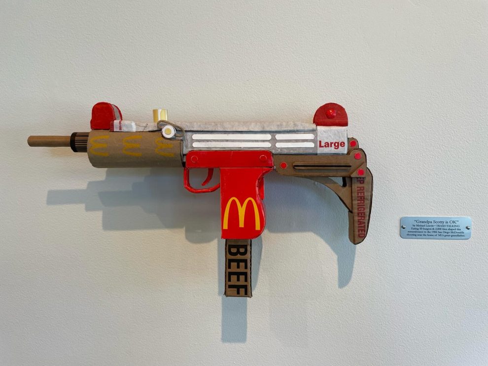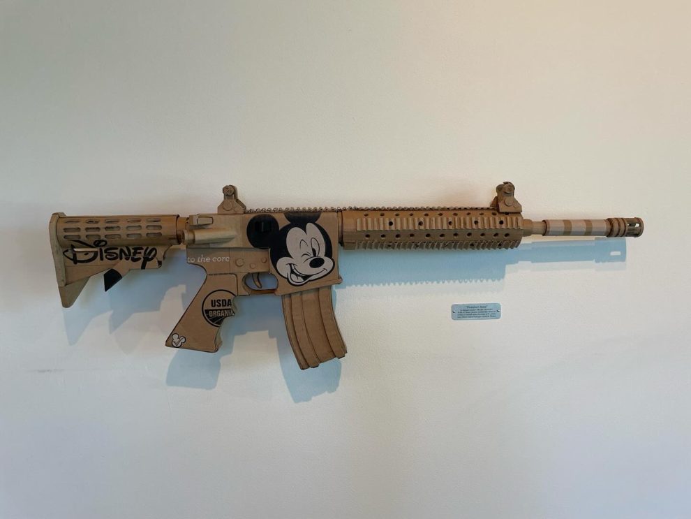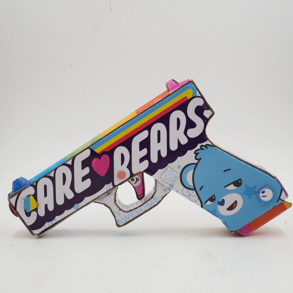 His works—ranging from Skittles-wrapped handguns to Apple-branded rotary phones—are full-scale replicas that use no paint, relying solely on the original packaging’s graphics. Inspired by his environmentalist father, Leavitt channels his passion for recycling into art that’s both witty and provocative. Since 2006, he’s used satire to spotlight how brands infiltrate daily life, revealing the hidden costs of addiction, excess, and ecological harm.