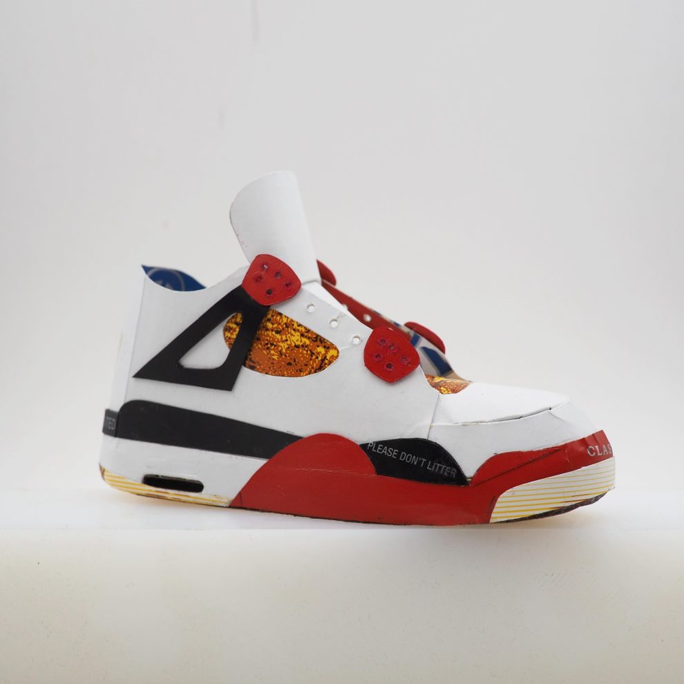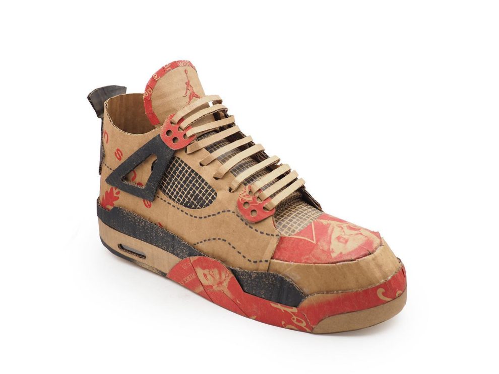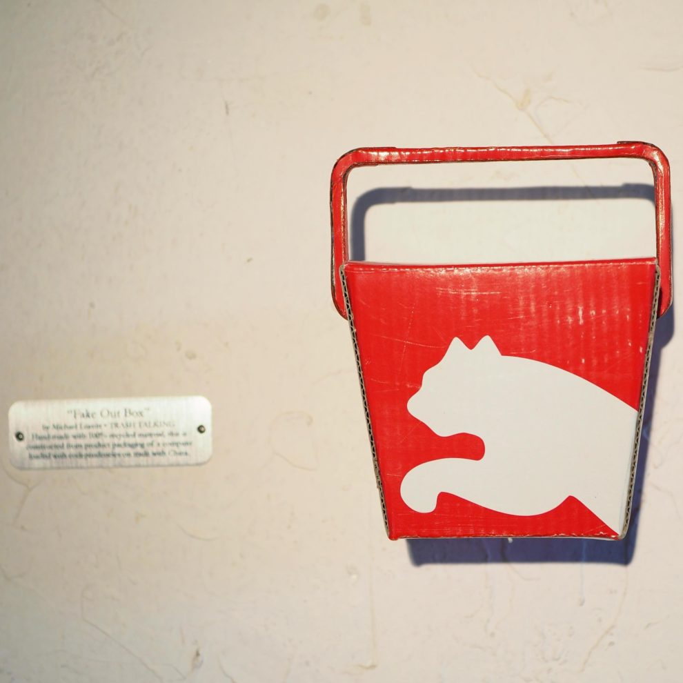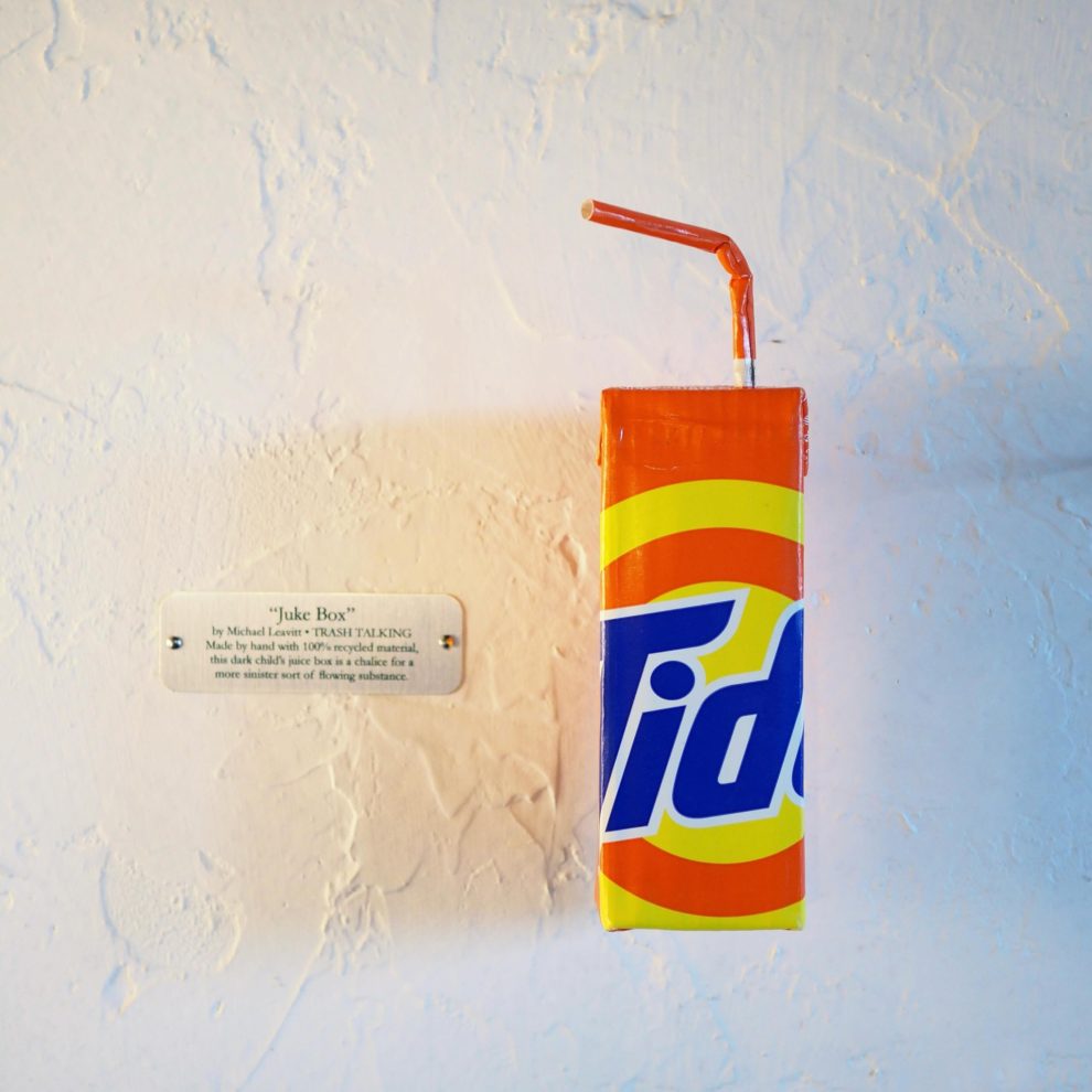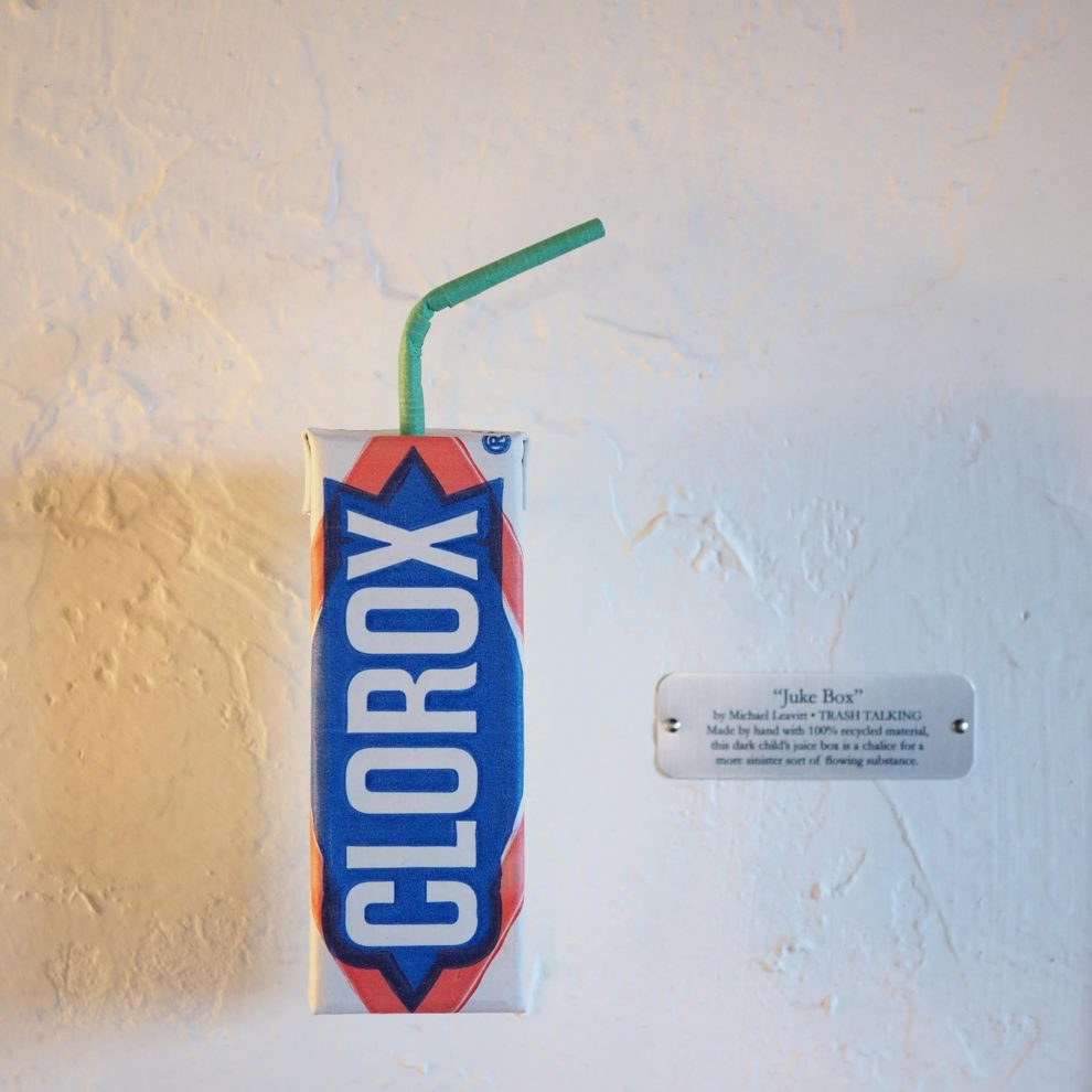 Seattle artist Mike Leavitt critiques consumerism and waste through *Trash Talking*, a sculpture series made entirely from salvaged materials like cardboard and discarded packaging.