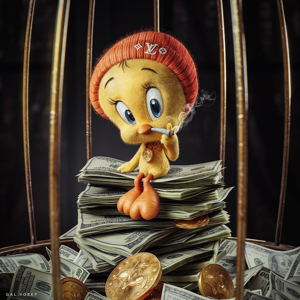 He started creating 3D art at the age of thirteen, inspired by iconic animations like “Toy Story”. Yosef’s unique style mixes nostalgia with sharp contemporary themes, often reimagining beloved characters in provocative new scenarios. His works challenge viewers’ perceptions with playful social commentary on money, appearance, and culture. Now a studio owner with a global following, Gal has collaborated on NFT projects with celebrities and is signed by Eden Gallery. His passion and ambition make him one of the standout talents in digital art today.