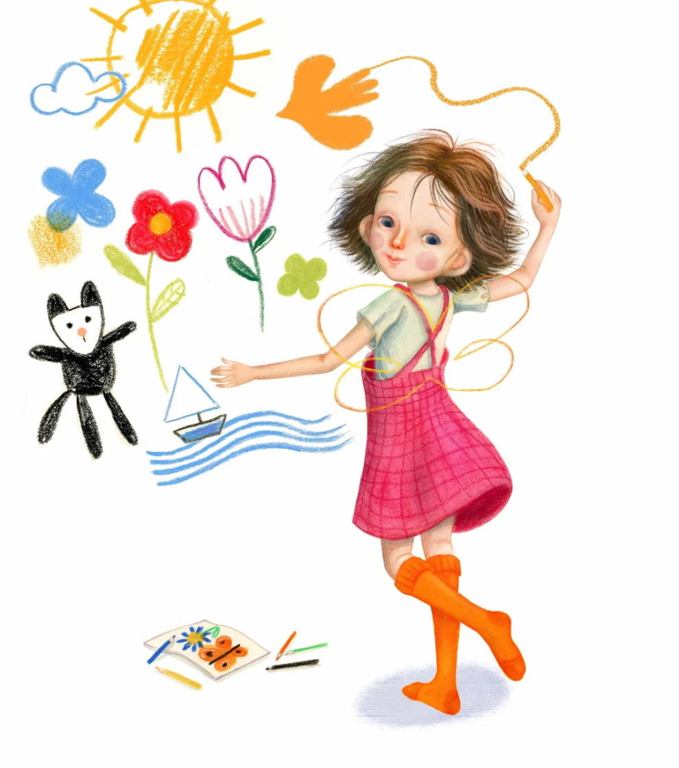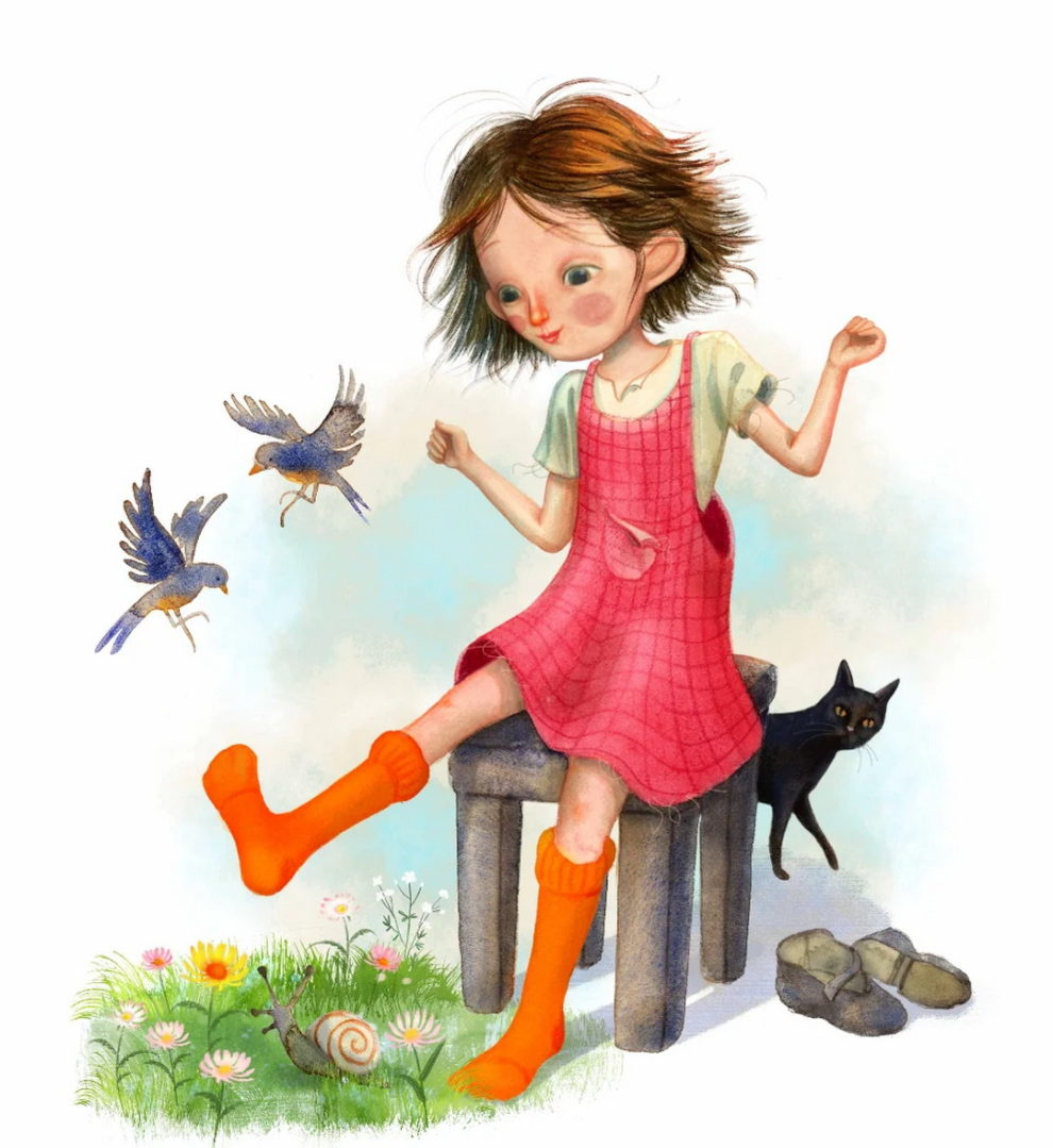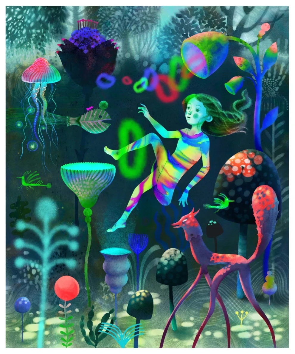Her work, often created with traditional media like watercolor, gouache, and ink, carries a cinematic quality and layers of metaphor that evoke deep emotional resonance. Figures in her illustrations frequently merge with natural elements, reflecting a seamless connection between inner experience and the external world. With over fifty children’s books to her name and international exhibitions under her belt, Glenda now shares her passion through teaching at the Stepan Zavrel International School of Illustration.