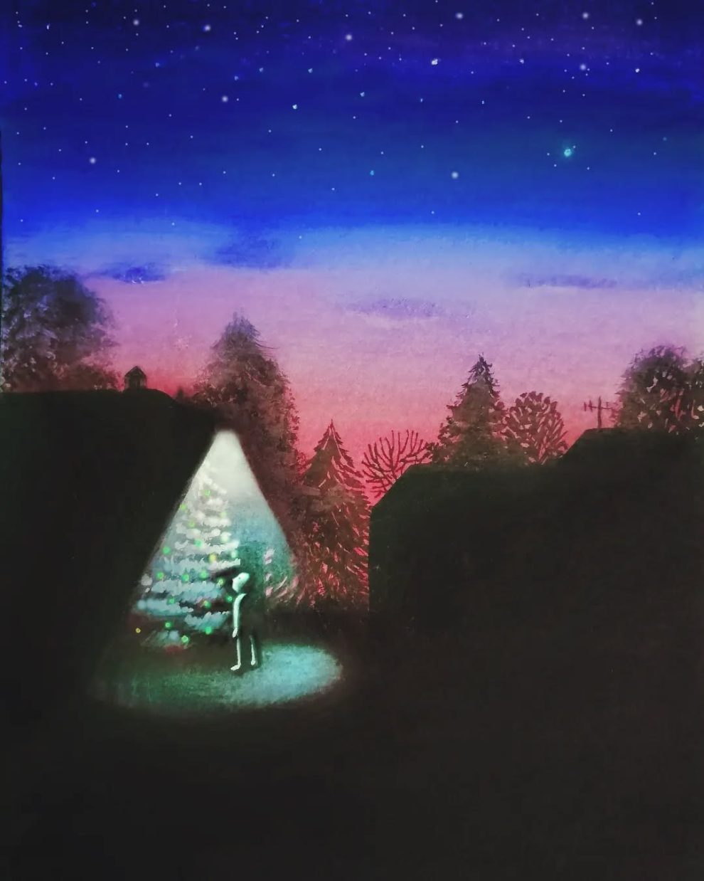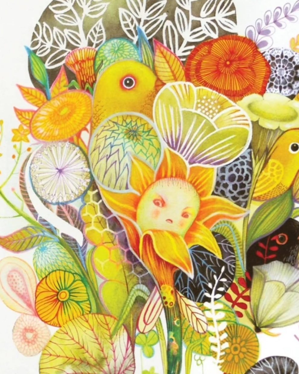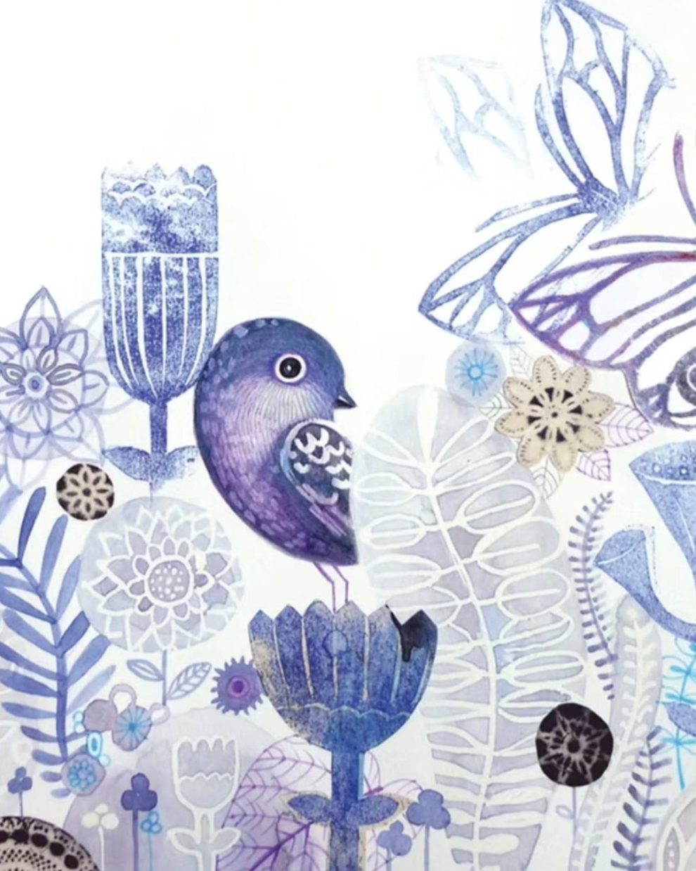 Her work, often created with traditional media like watercolor, gouache, and ink, carries a cinematic quality and layers of metaphor that evoke deep emotional resonance. Figures in her illustrations frequently merge with natural elements, reflecting a seamless connection between inner experience and the external world. With over fifty children’s books to her name and international exhibitions under her belt, Glenda now shares her passion through teaching at the Stepan Zavrel International School of Illustration.