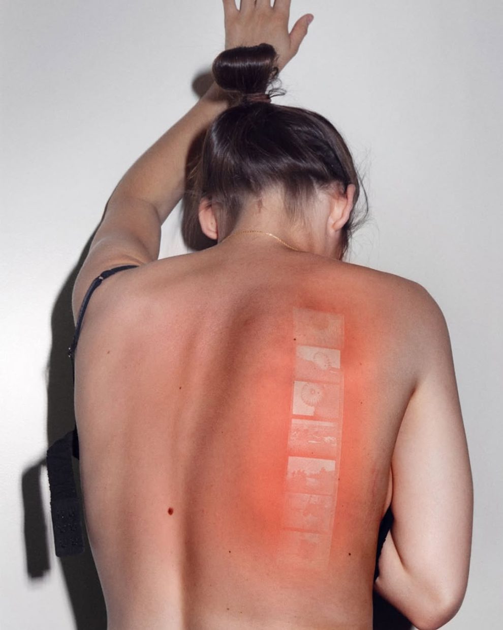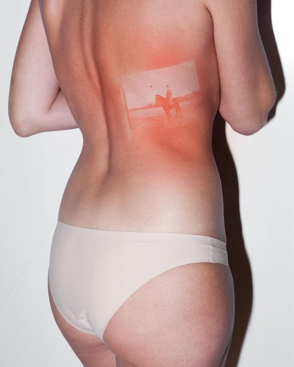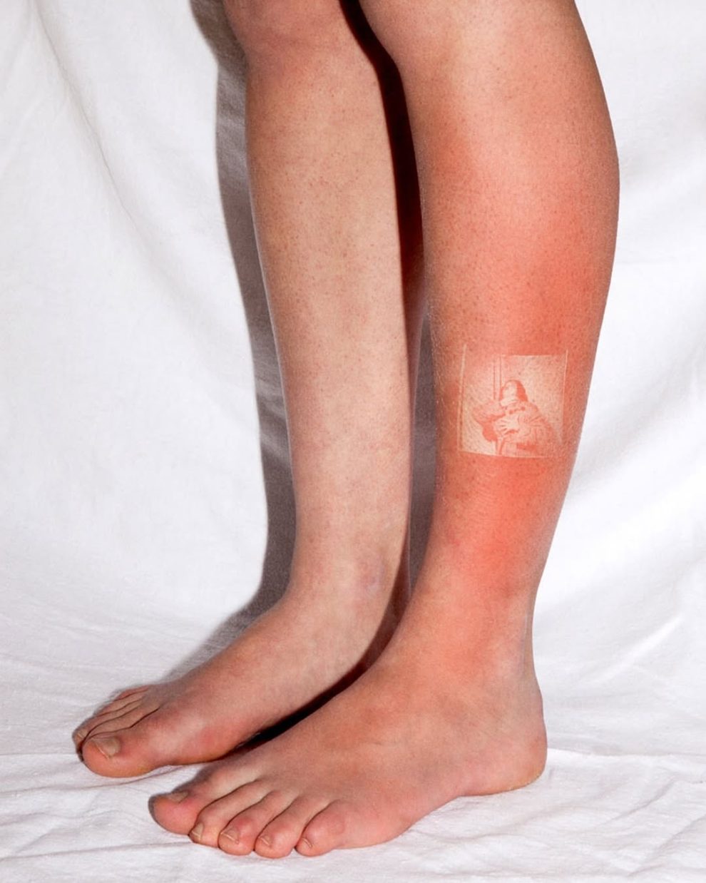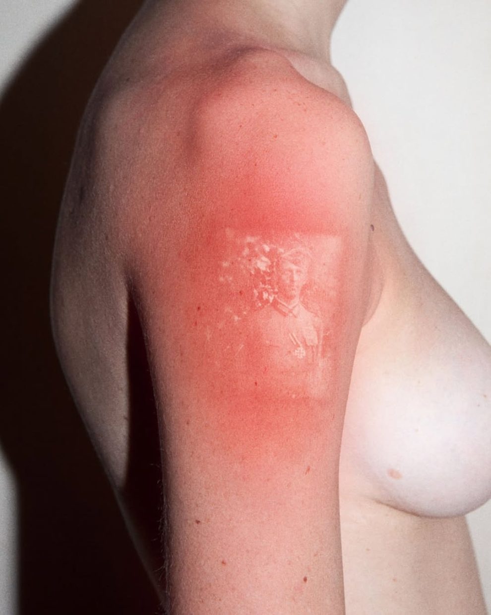 French artist Thomas Mailaender created the “Illustrated People” series by transferring vintage film negatives from the Archive of Modern Conflict onto his volunteers’ skin using a special gel and UV lamp, resulting in temporary photo prints caused by mild sunburn.