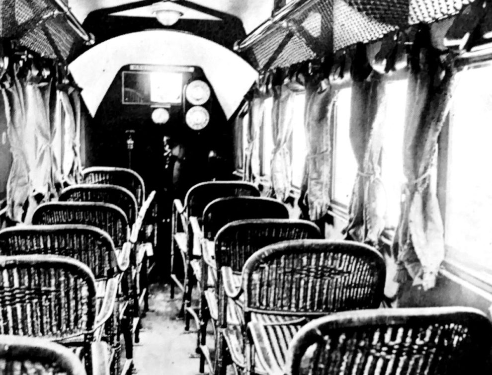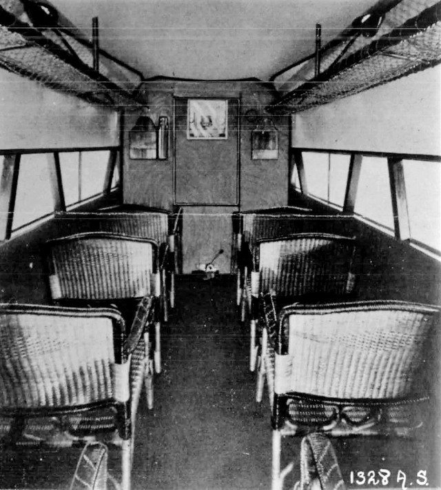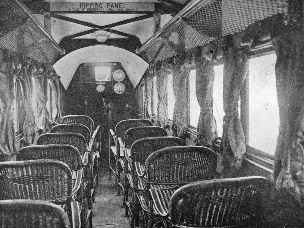 In the early 20th century, commercial airplanes featured wicker chairs for seating, chosen for their light weight, durability, and ventilation—ideal for aircraft with limited engine power and payload capacity.