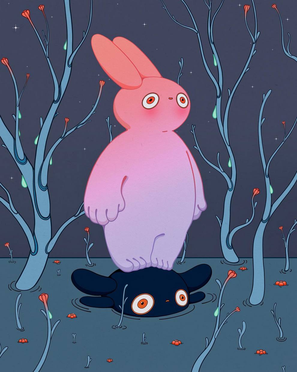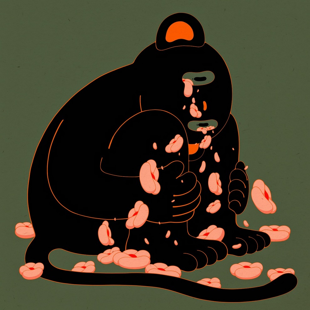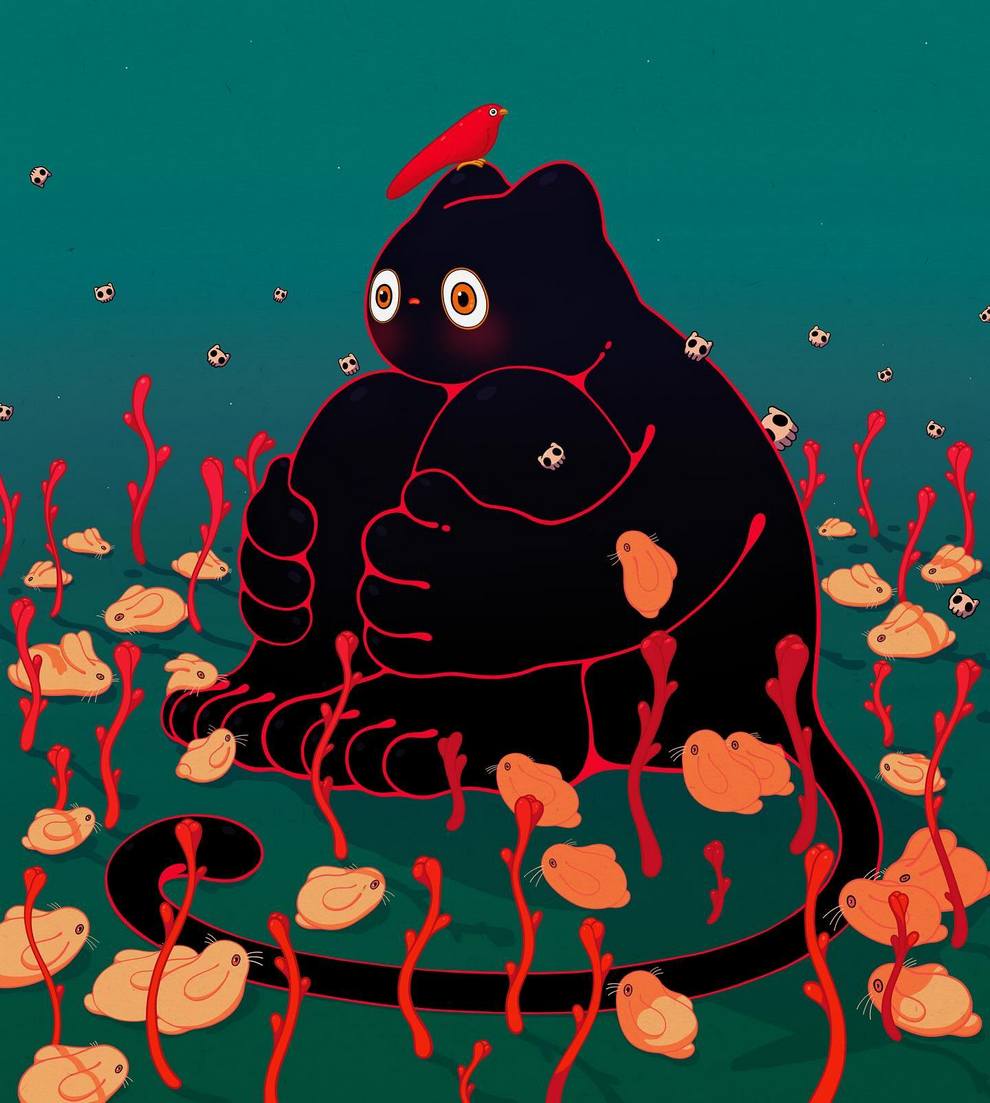 Ella May is a contemporary artist and illustrator who builds soft, surreal worlds with big‑eyed girls, monkeys, spirits and plants painted in acrylic, oil pastel and mixed media on canvas.