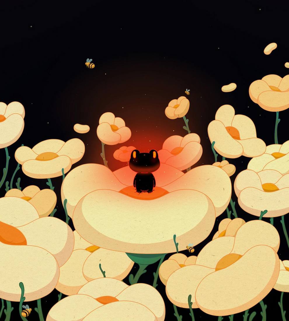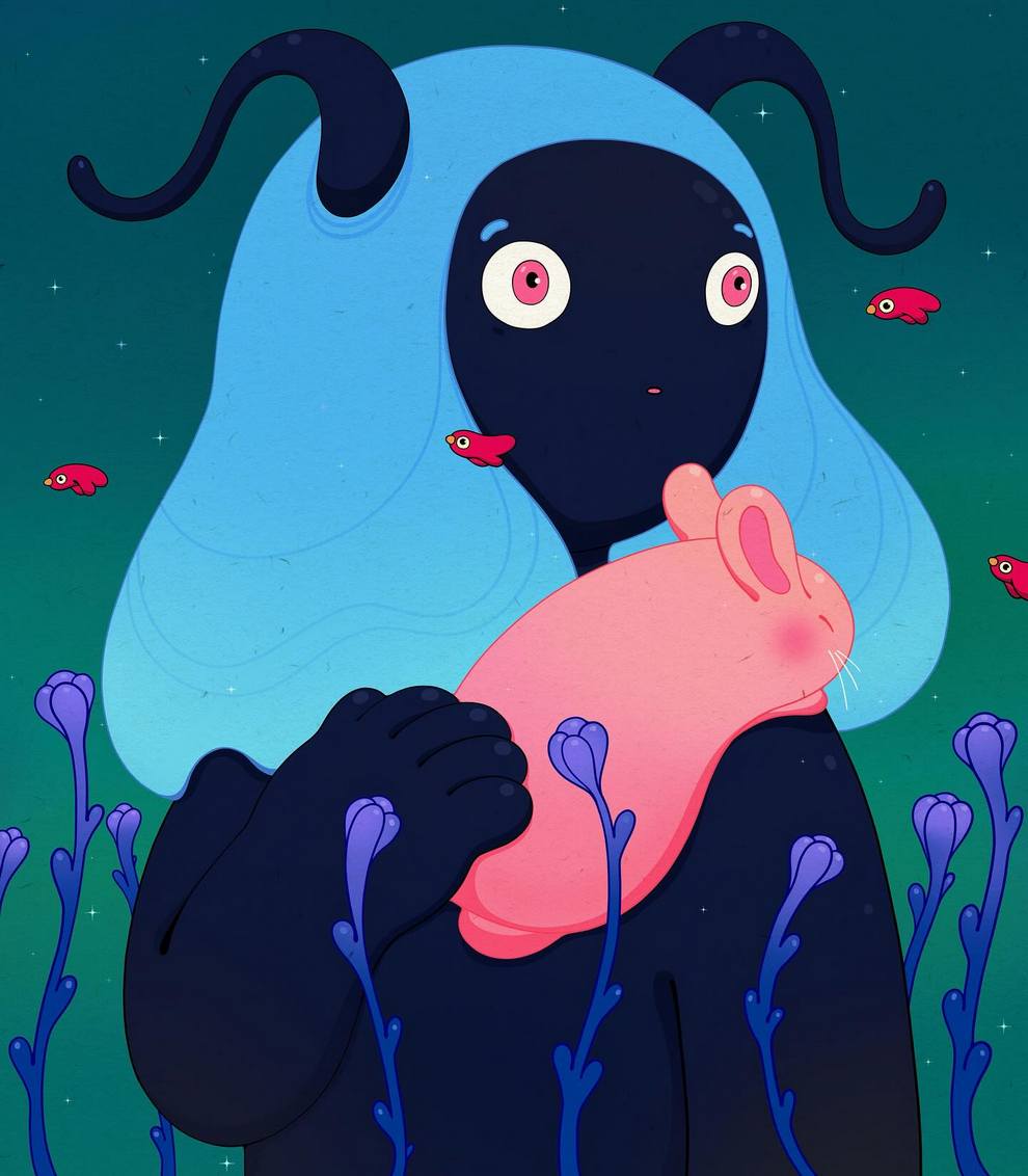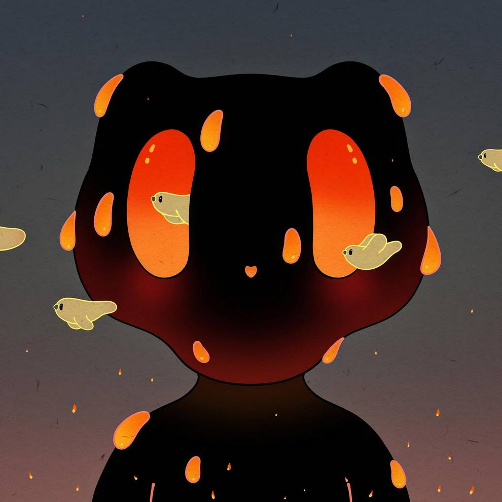 Her work often shows peaceful “guardians,” floating figures and dreamlike interiors filled with sprouts, blossoms and cosmic skies, using gentle colour, rounded shapes and cute details to talk about mental health, protection, vivid dreams and quiet self‑reflection. Alongside finished paintings like “The Guardian,” “Between Sprouts,” “Blossom Keeper” and small oil‑pastel pieces such as “Floral Drip,” she shares process videos, sketches and personal notes across Instagram, TikTok and YouTube, positioning her art as a calm, comforting space online.