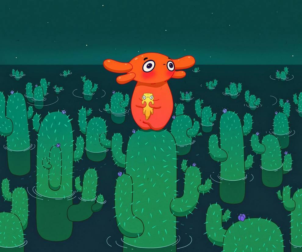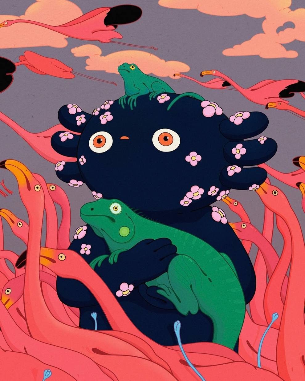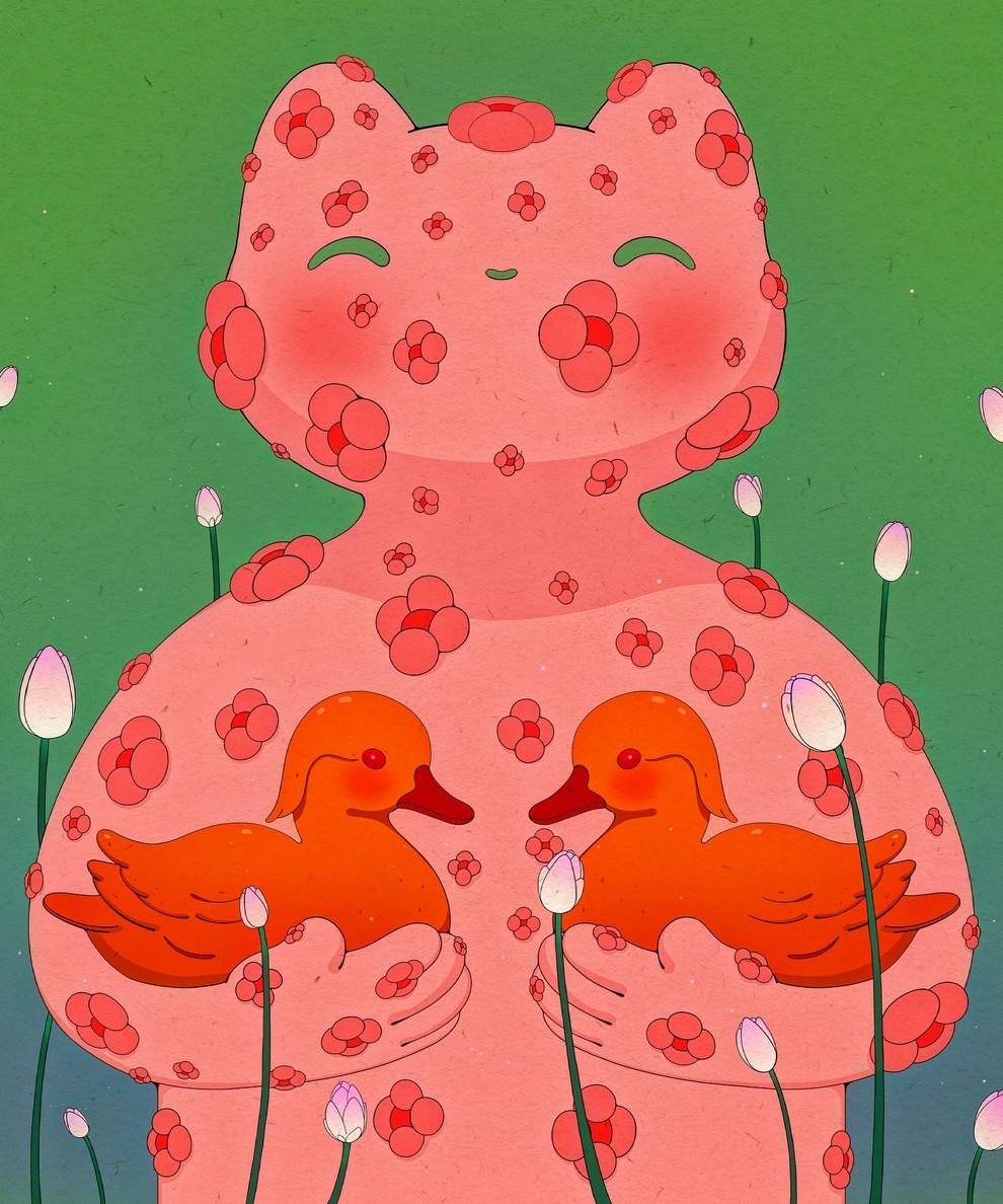 Her work often shows peaceful “guardians,” floating figures and dreamlike interiors filled with sprouts, blossoms and cosmic skies, using gentle colour, rounded shapes and cute details to talk about mental health, protection, vivid dreams and quiet self‑reflection. Alongside finished paintings like “The Guardian,” “Between Sprouts,” “Blossom Keeper” and small oil‑pastel pieces such as “Floral Drip,” she shares process videos, sketches and personal notes across Instagram, TikTok and YouTube, positioning her art as a calm, comforting space online.