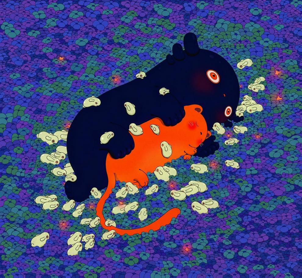 Artist Paints Dreamy Guardians, Monkeys And Plant‑spirits In Soft Acrylics, Turning Canvases Into Little Safe Zones For Anxious Hearts