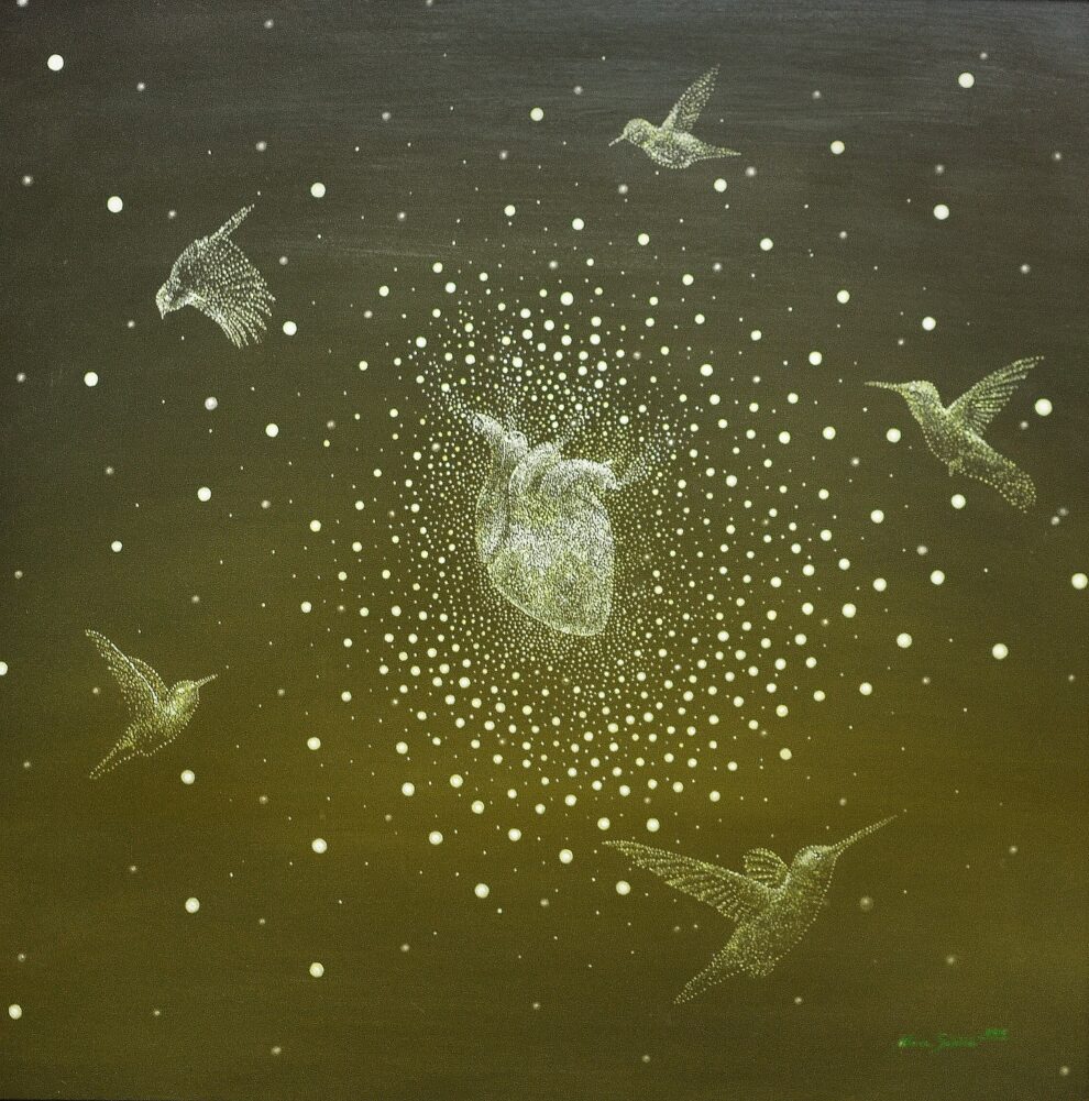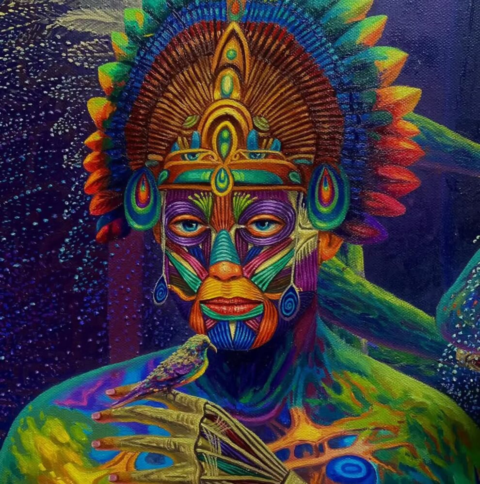 A graduate in Fine Arts (Advertising), he runs his own studio and creates large, highly detailed oil canvases and colourful digital pieces filled with eyes, portals, geometric halos, and nature motifs that explore purpose, inner awakening and the “divine love of life.” His artworks appear in NFT/psy‑art platforms, in group shows such as WOW x WOW’s “Conversations With Ourselves,” and as prints on sites like INPRNT, while he shares process videos and studio life across social media.