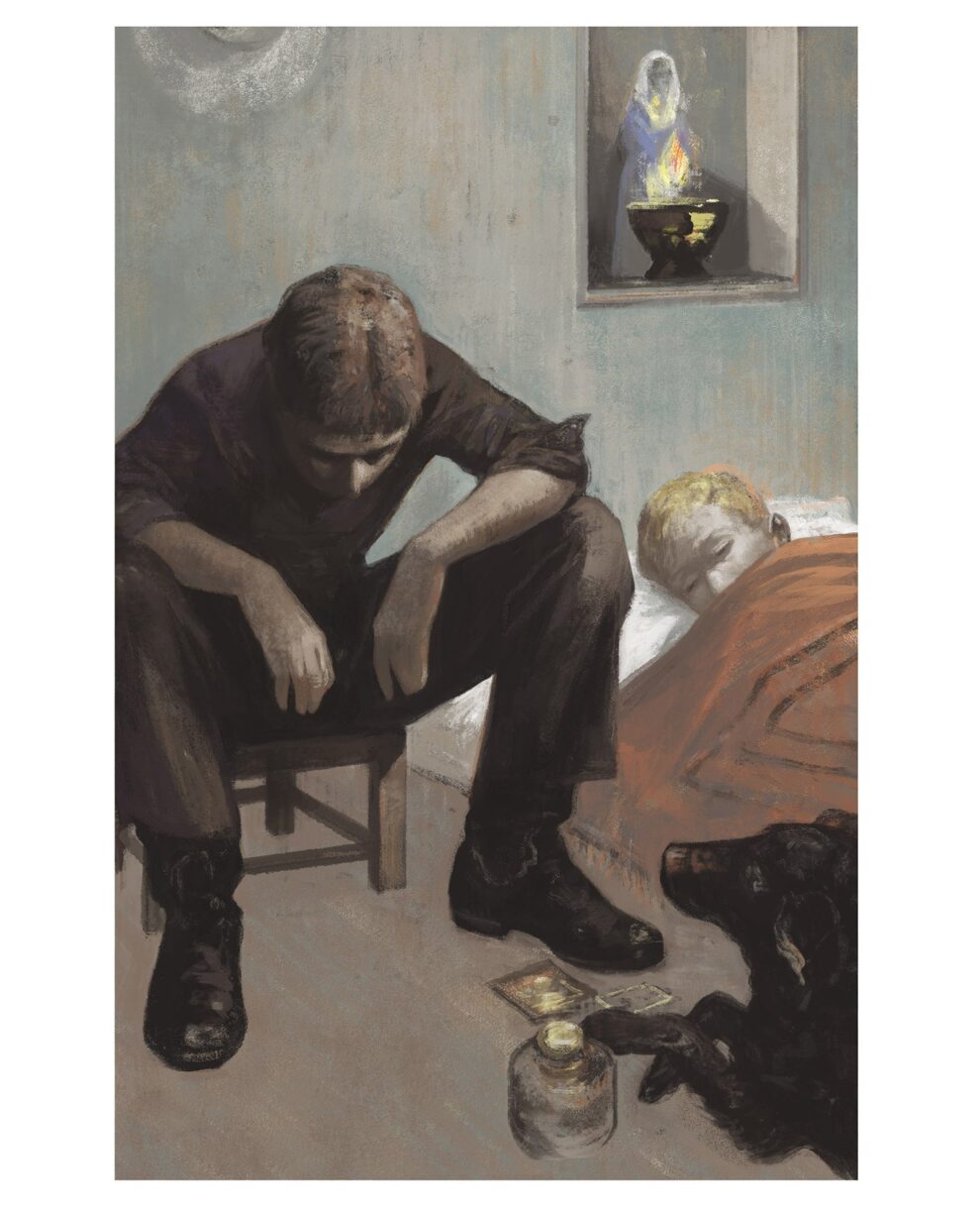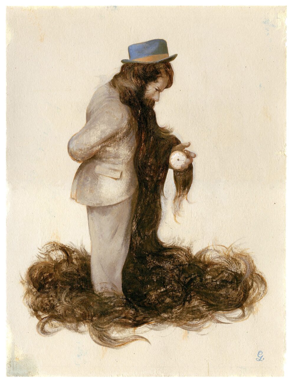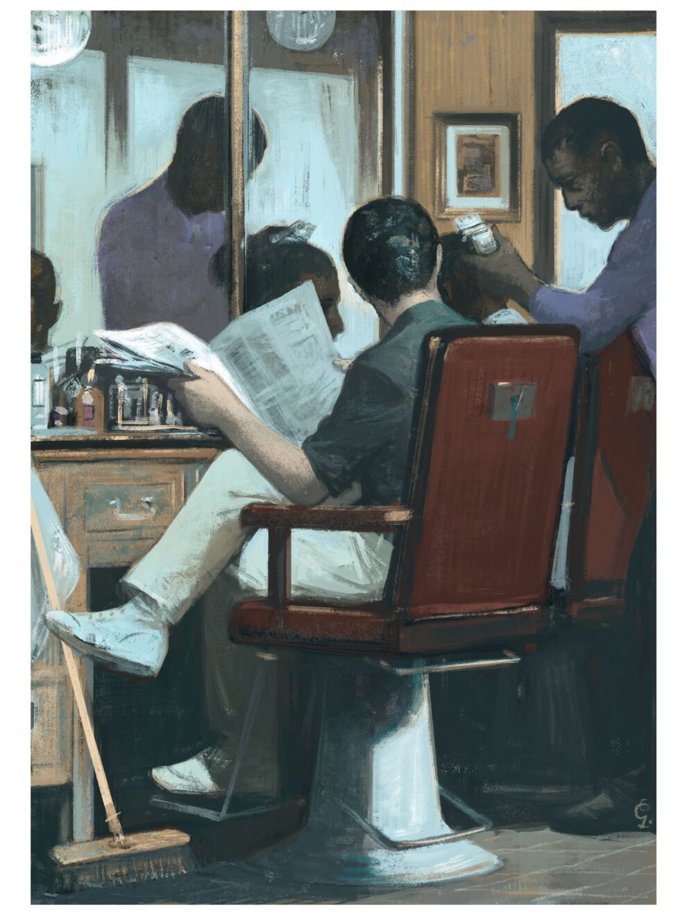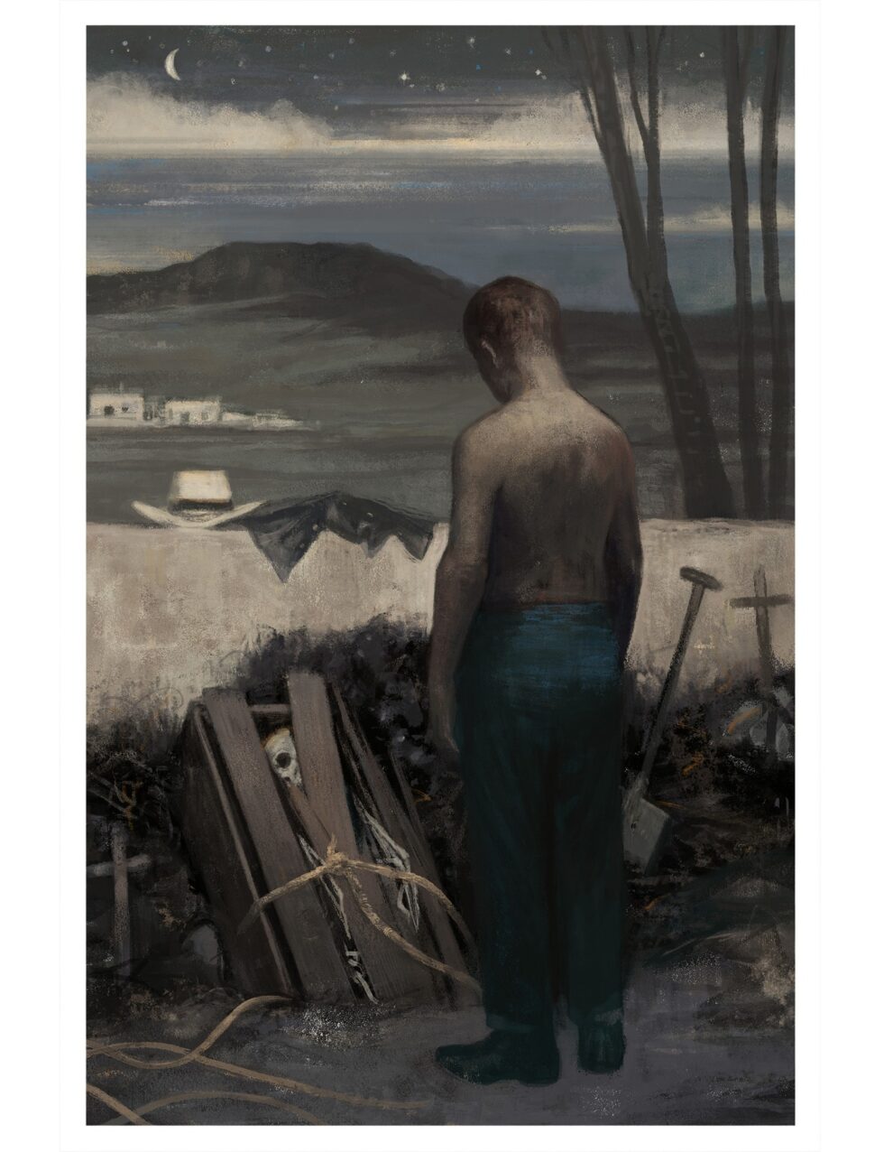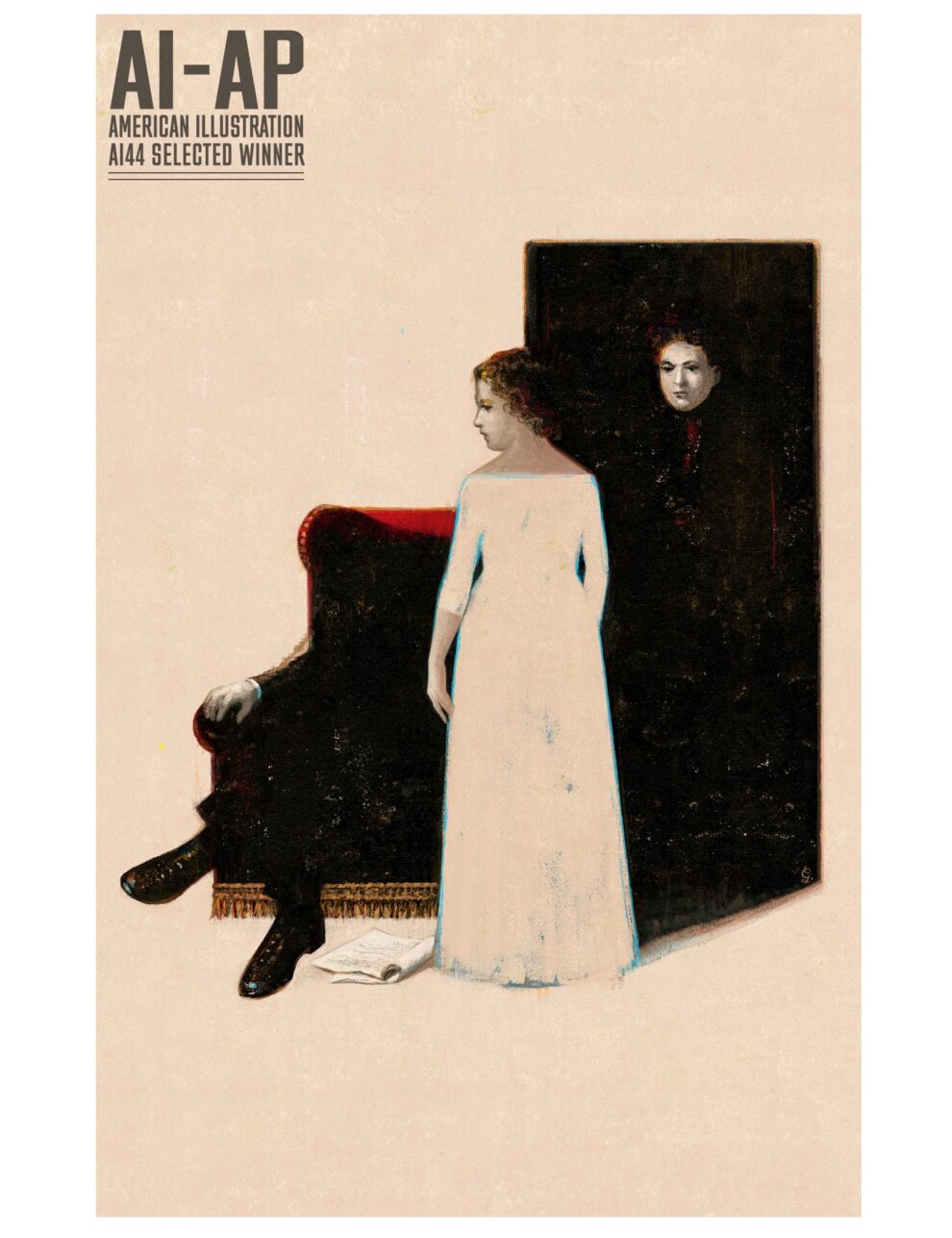 Working largely in traditional media (acrylic, oil, gouache) and then adapting for print, he creates atmospheric scenes with muted colour, careful light and slightly distorted figures that feel like stills from strange short stories, often made for magazines, book covers and picture books. His work has been widely published (including in outlets like Harper’s Magazine) and celebrated with awards such as multiple American Illustration selections, making him one of the key voices in contemporary narrative illustration.