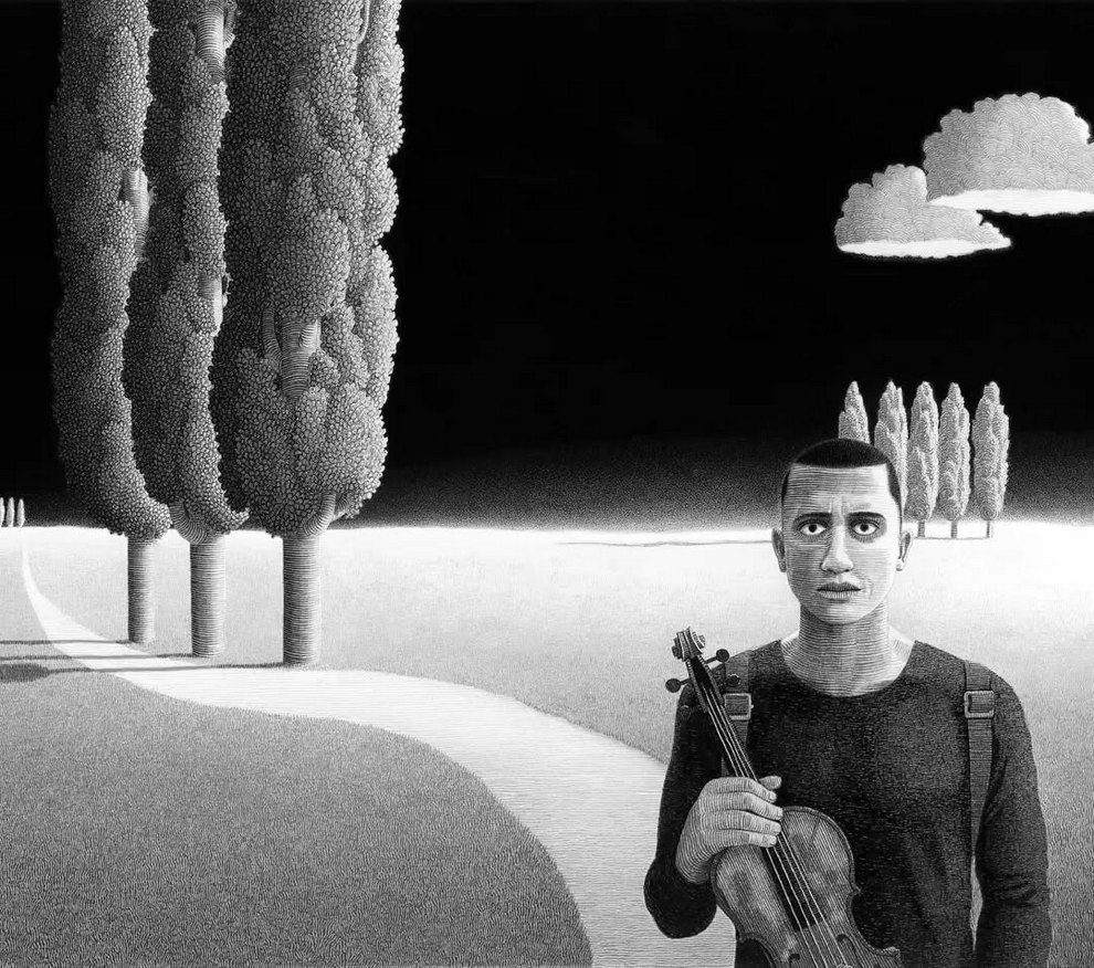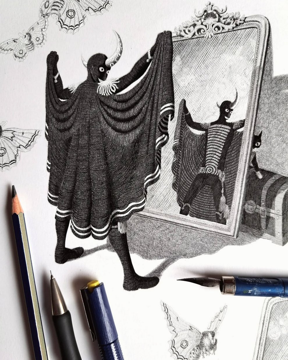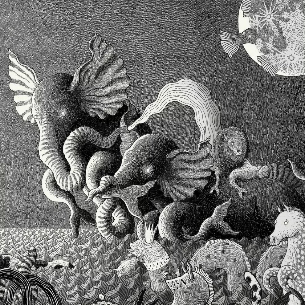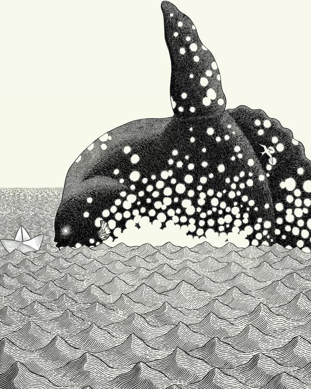 Peter van den Ende is a Belgian illustrator and author born in Antwerp in 1985, best known for his debut wordless picture book The Wanderer (Zwerveling), a hand-drawn epic following a paper boat’s fantastical ocean journey through ink-black seas, mechanical sea monsters, icy poles and alien depths.