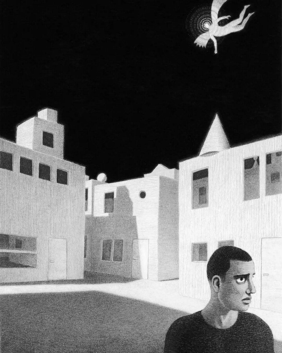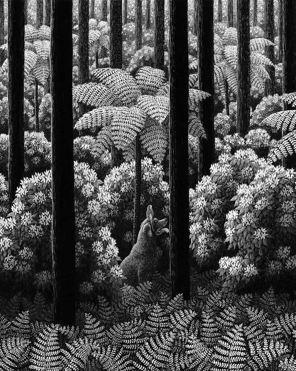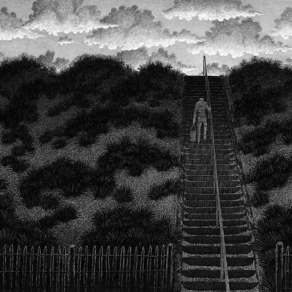 Trained in biology but always doodling, he worked as a nature guide in the Cayman Islands before committing to art full-time; his style features hyper-detailed, monochromatic pen-and-ink worlds packed with symbolism, creatures and impossible architecture that invite endless discovery for all ages. The Wanderer won awards like the Dilys Evans Founder’s Award, appeared in Best Dutch Book Designs and Ilustrarte selections, and has been translated widely, while he now teaches workshops, exhibits originals and works on new projects like dinosaur sketches.
