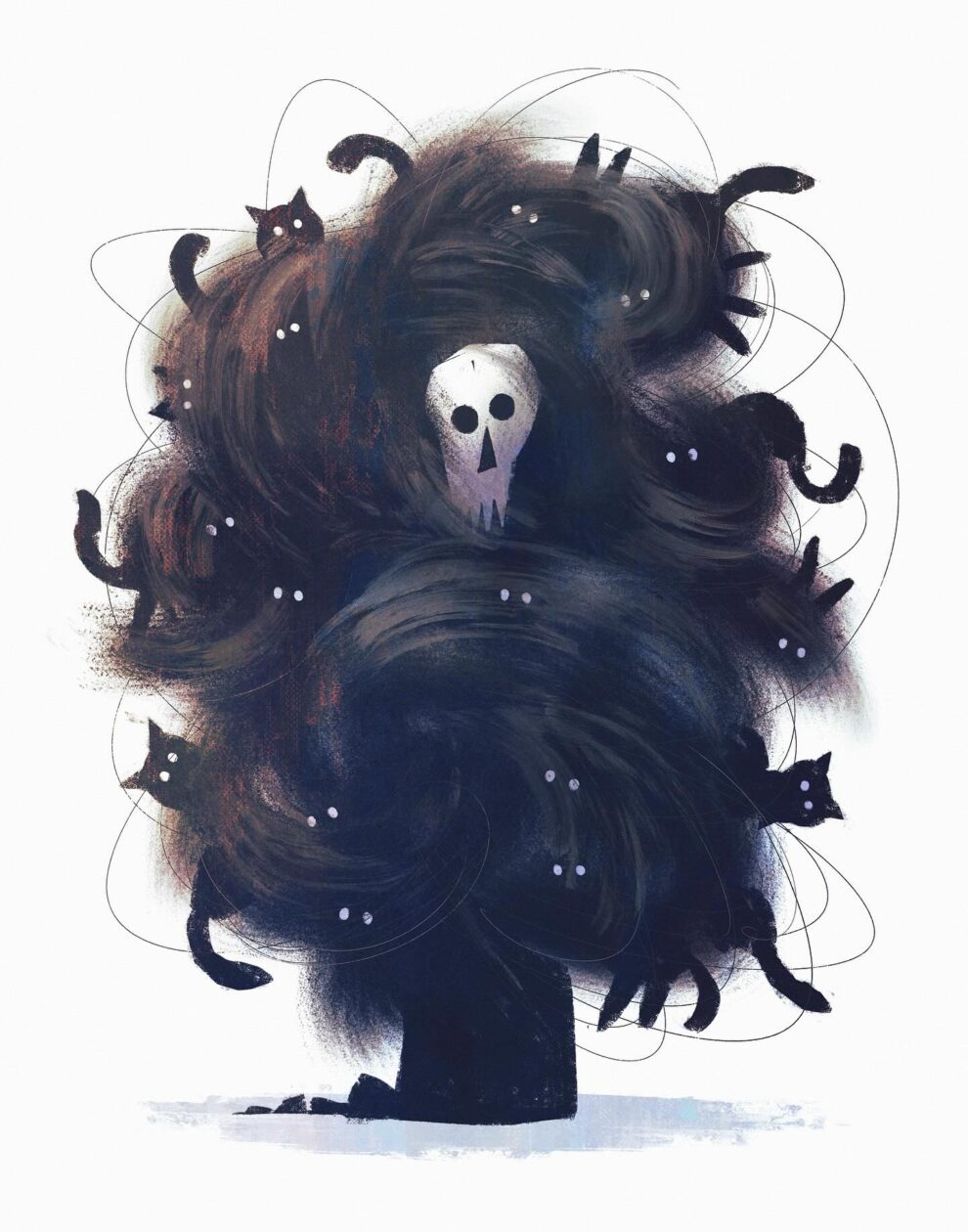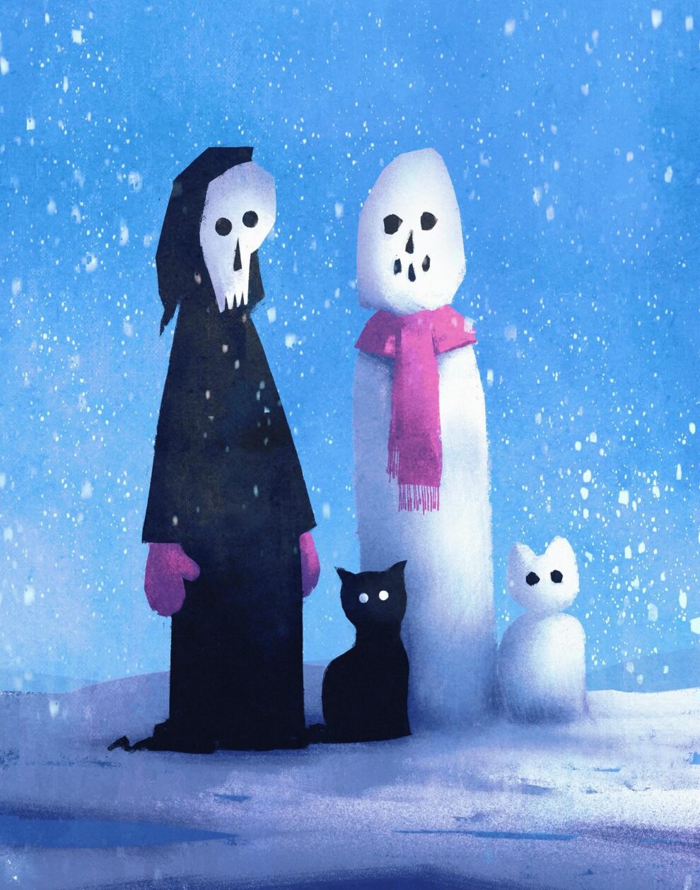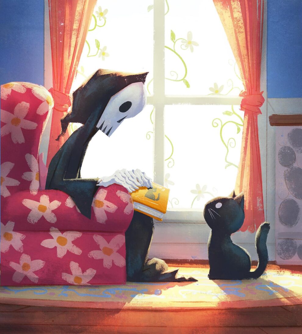 A Sheridan College animation graduate and longtime Creative Director of Design at Toronto’s Guru Studio, he has helped shape major animated productions for Netflix, Disney, Nickelodeon and more, while also illustrating over ten picture books for publishers like HarperCollins, Simon & Schuster and others. Alongside this client work, he maintains a personal painting practice, including his ongoing “Dead Cat” series that follows the Grim Reaper and their feline companion through whimsical afterlife scenes.