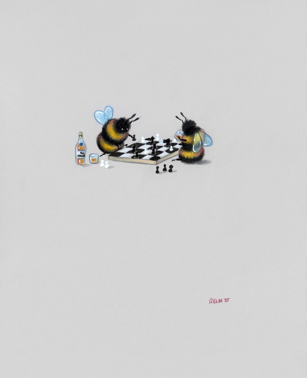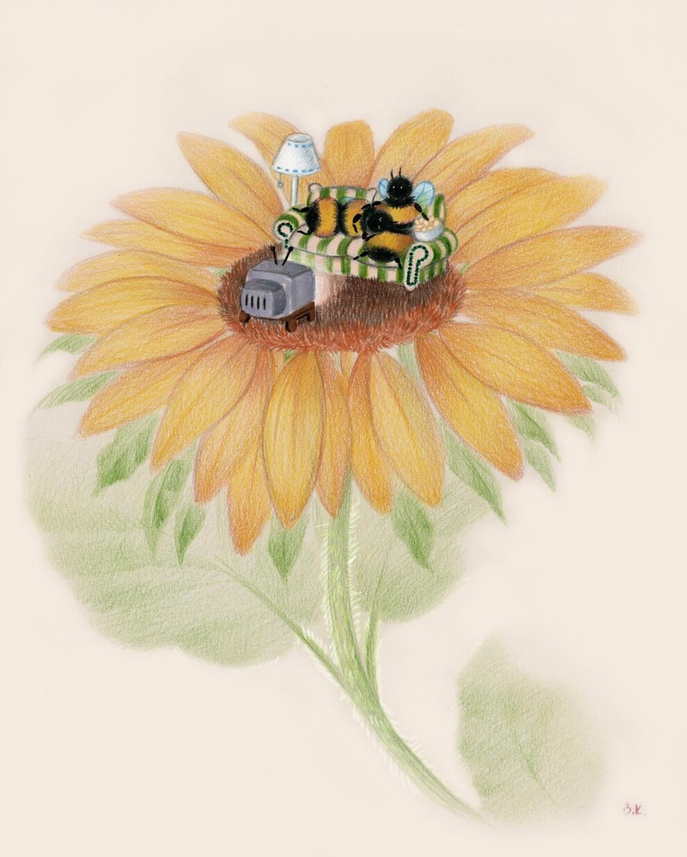Beekeepersklub (also signed as Relm) is an illustrator and designer who creates clean, minimal, character‑driven drawings—mostly bees and bee‑people living everyday, slightly whimsical lives.