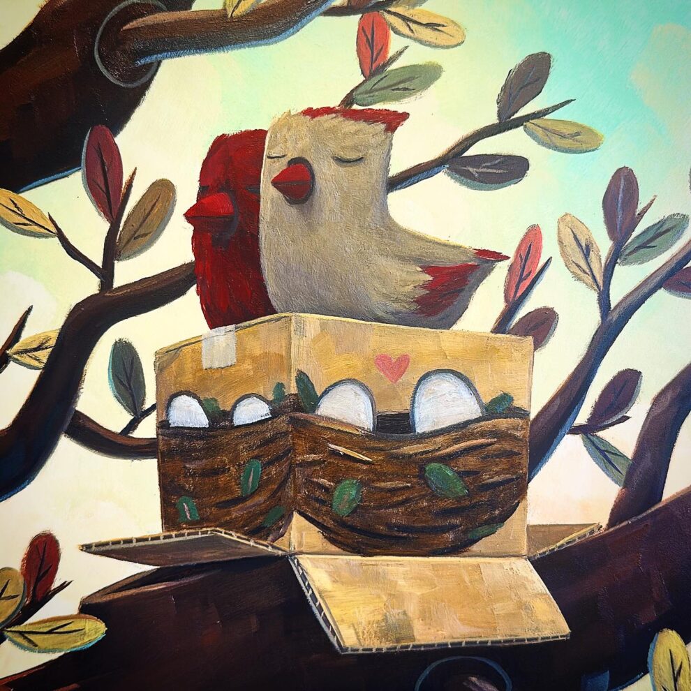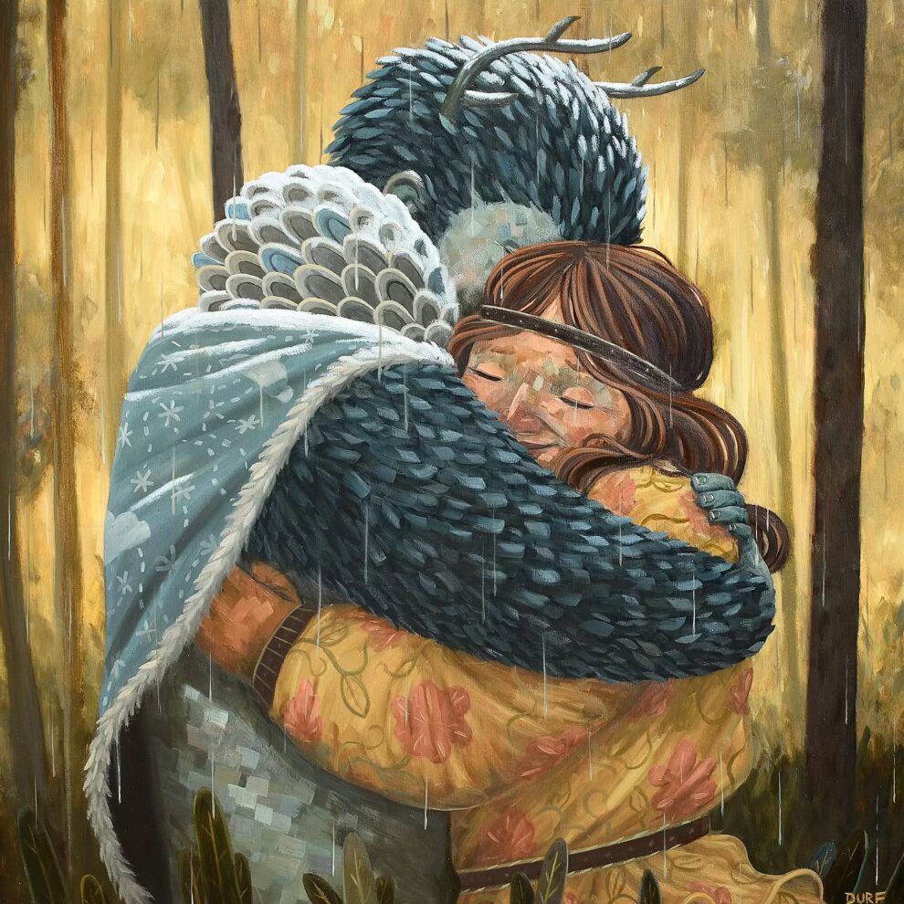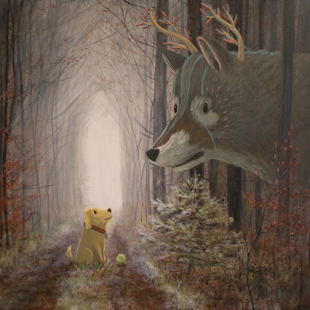 Nathan Durfee is an American painter and illustrator based in Charleston, South Carolina, known for whimsical pop‑surreal narratives packed with quirky animals, kids, and oddball objects in bright, storybook colour.