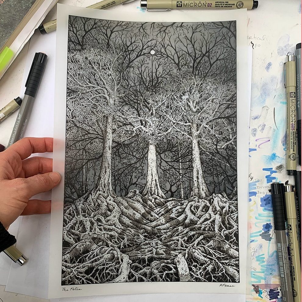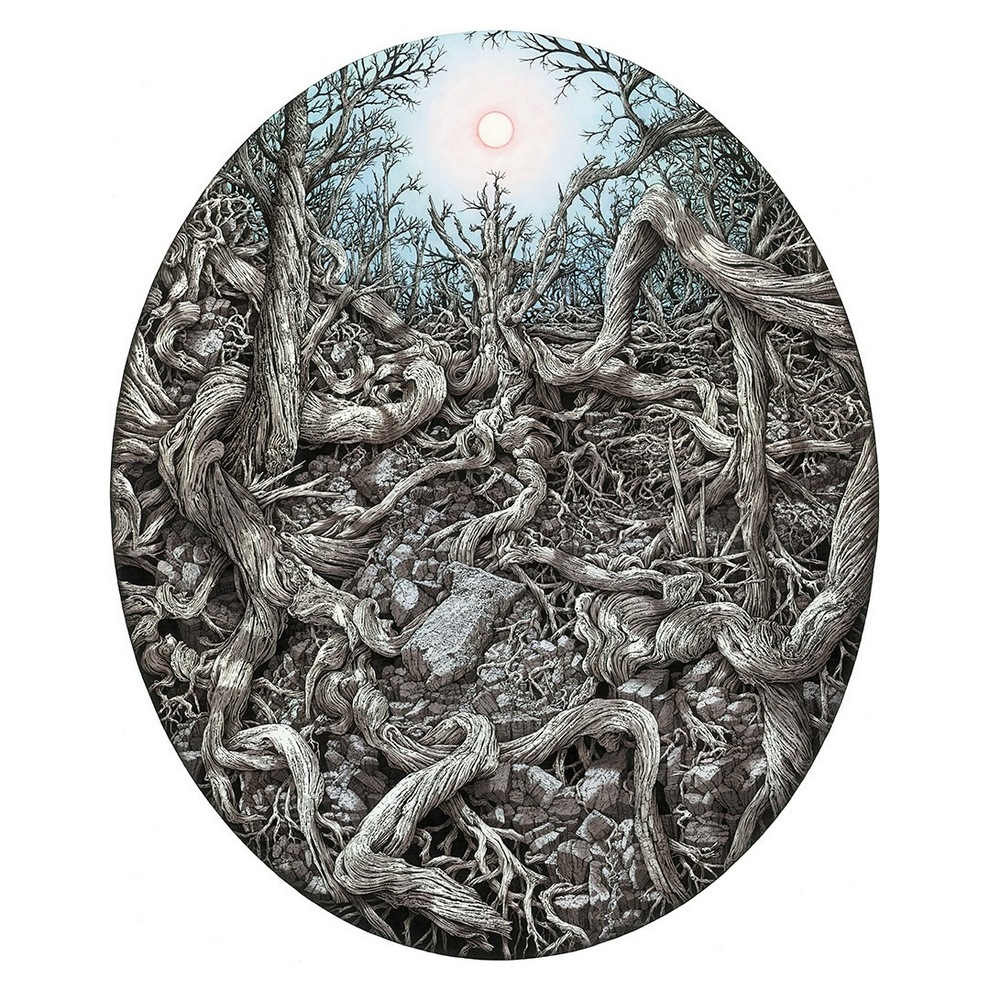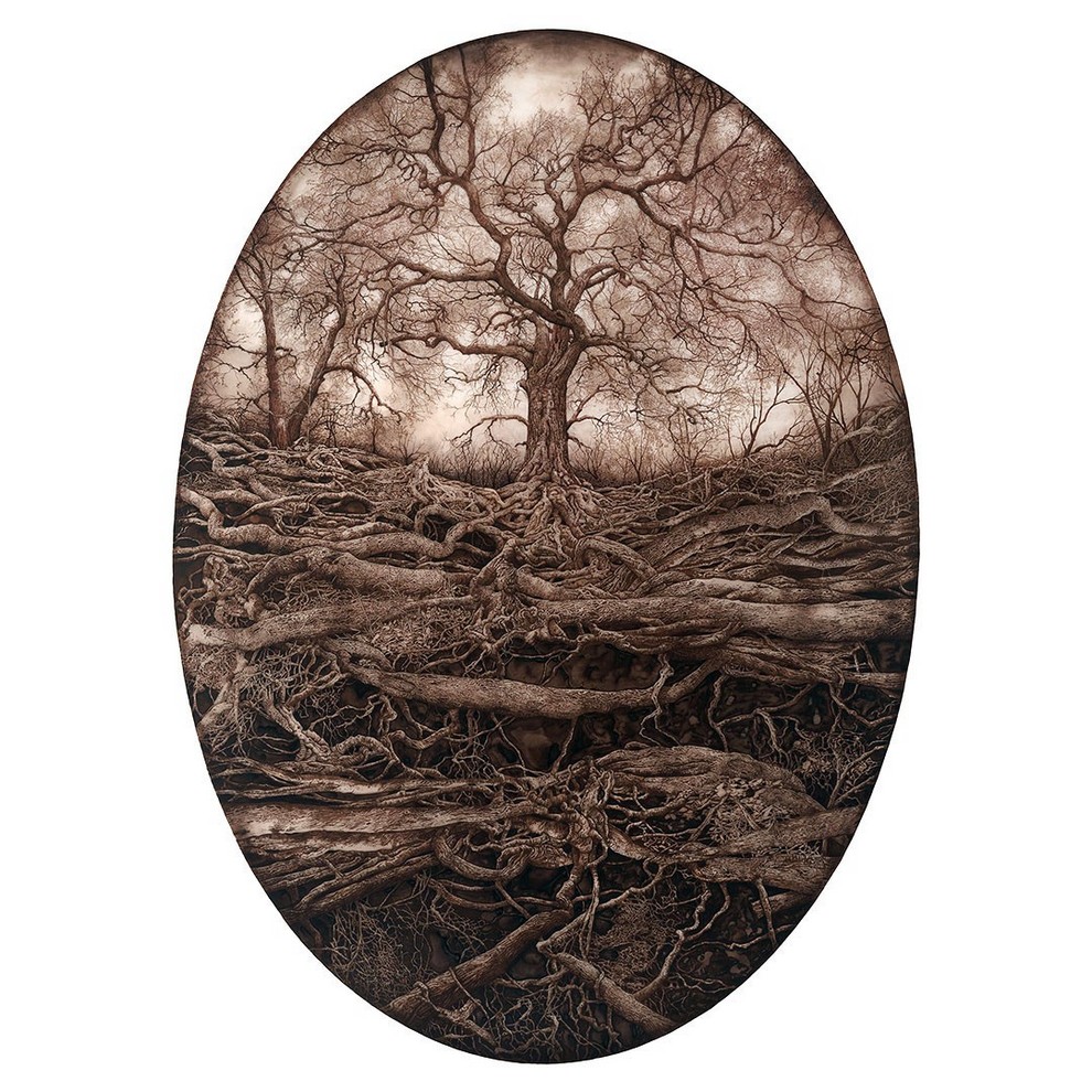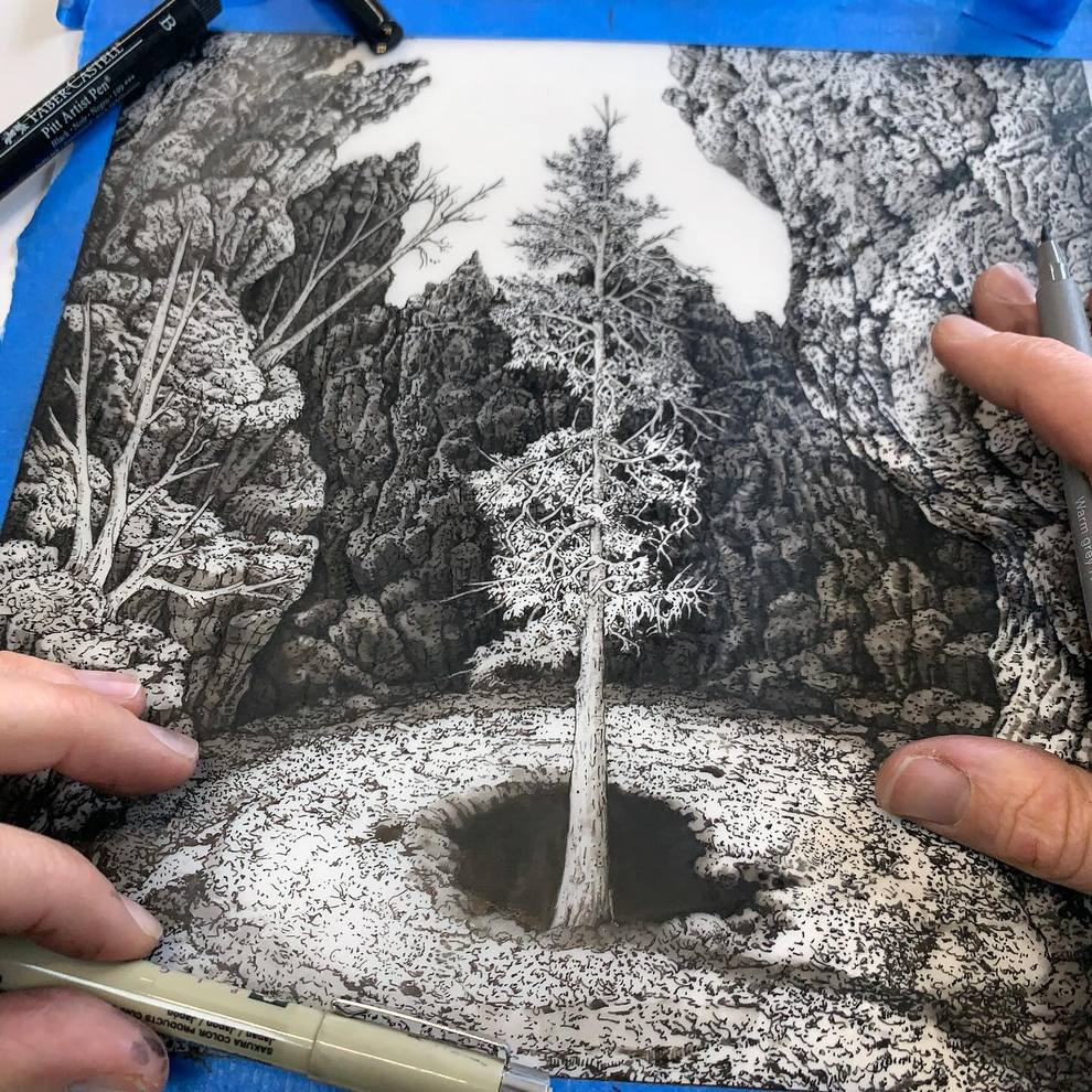 Illustrator Draws Monumental Tree‑scapes On Transparent Dura‑Lar, Braiding Roots, Rocks And Memory Into Delicate, Sci‑fi‑tinged Forest Architectures