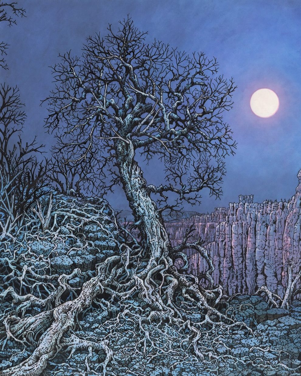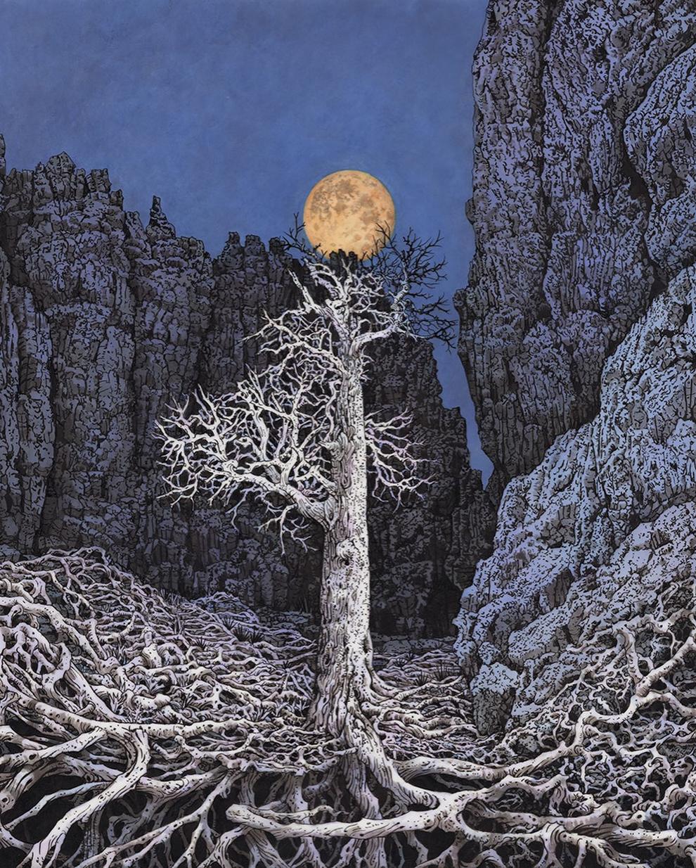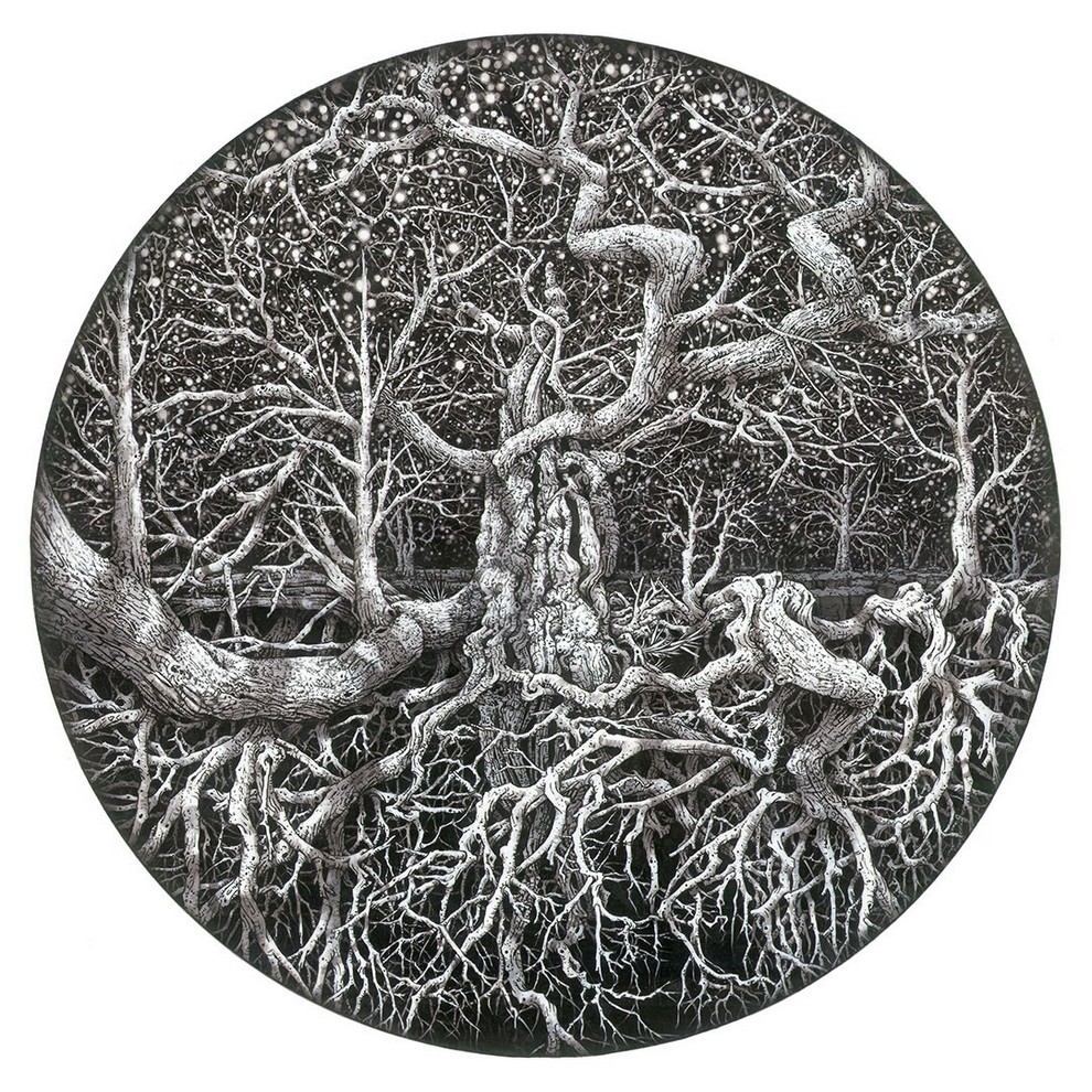 Illustrator Draws Monumental Tree‑scapes On Transparent Dura‑Lar, Braiding Roots, Rocks And Memory Into Delicate, Sci‑fi‑tinged Forest Architectures