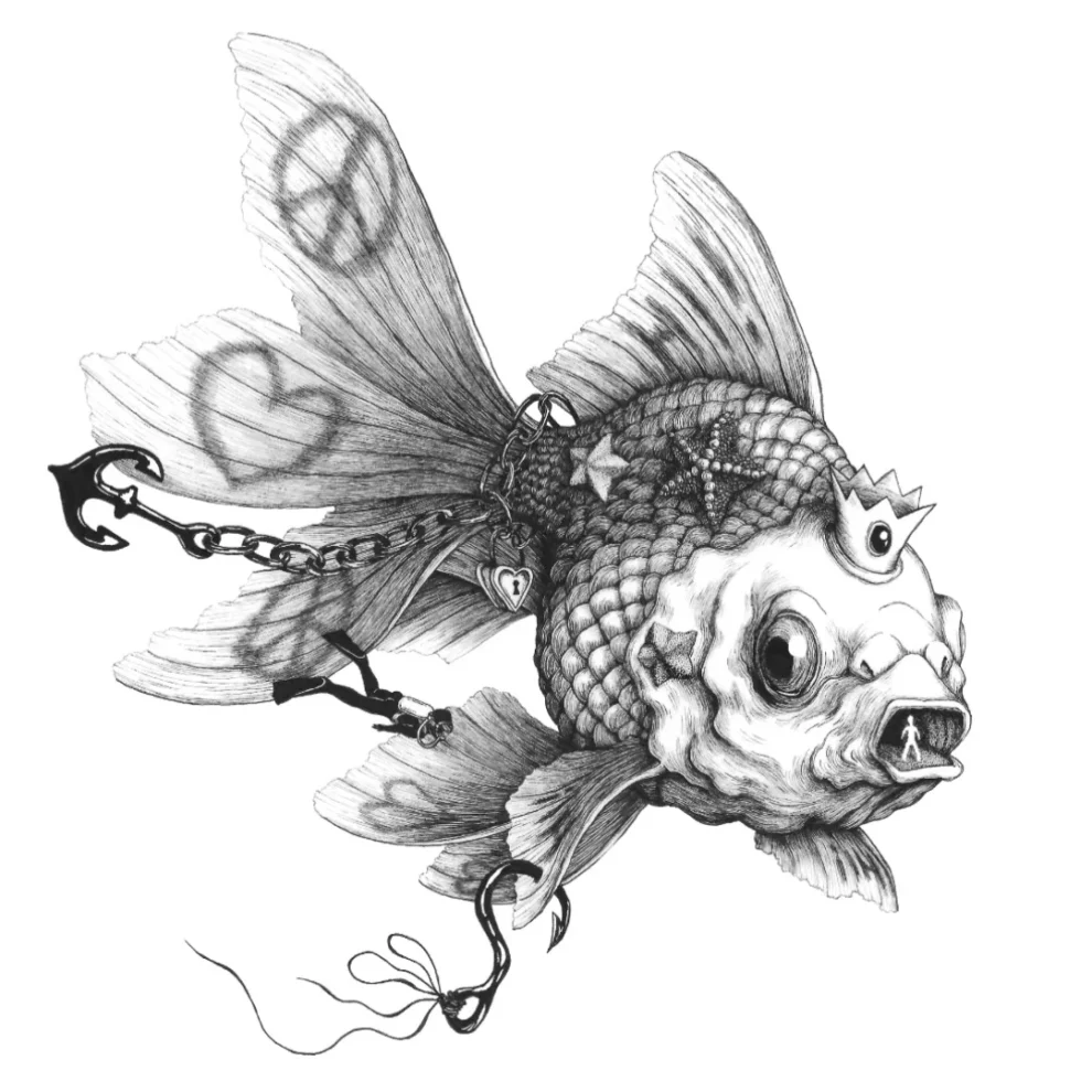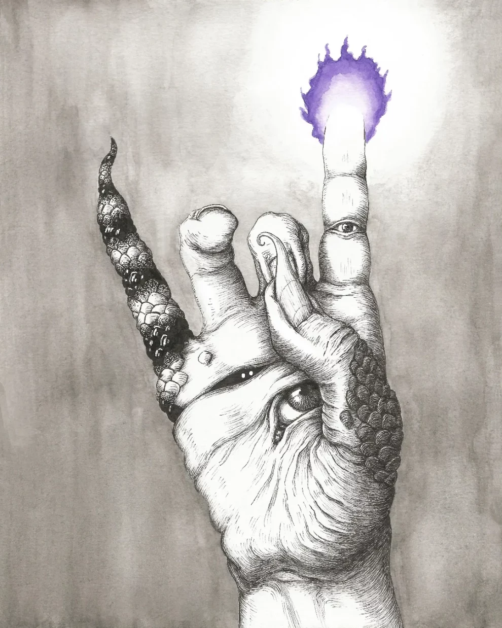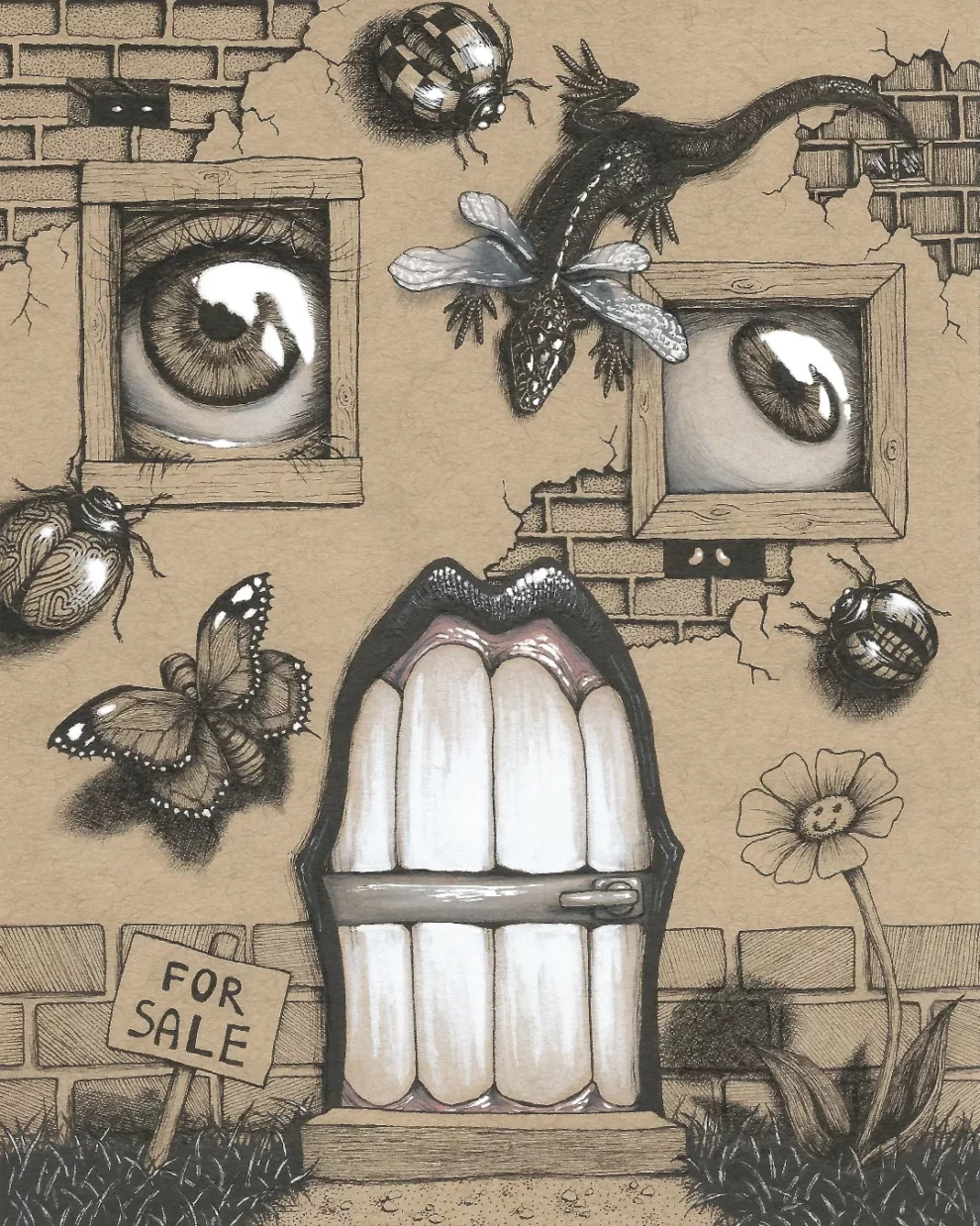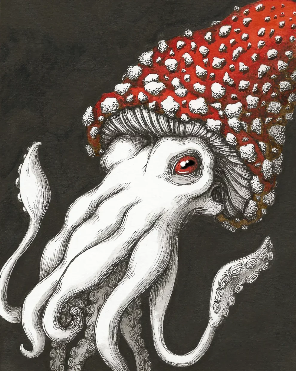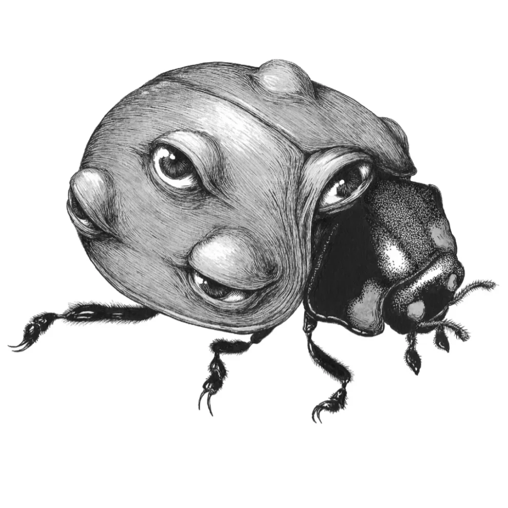 Working mostly in pen and ink (often “ink only”), she creates hypnotic compositions where weird animals, toads, crustaceans and plant forms tangle together, walking the line between horror, humour and obsessive pattern. Her work appears widely in art‑sharing communities and black‑and‑white illustration feeds.