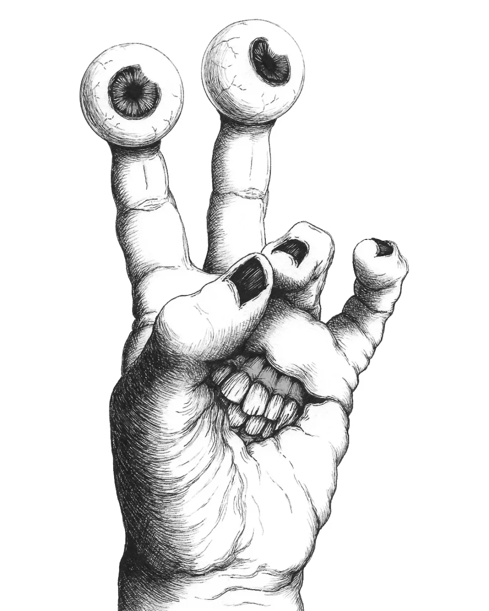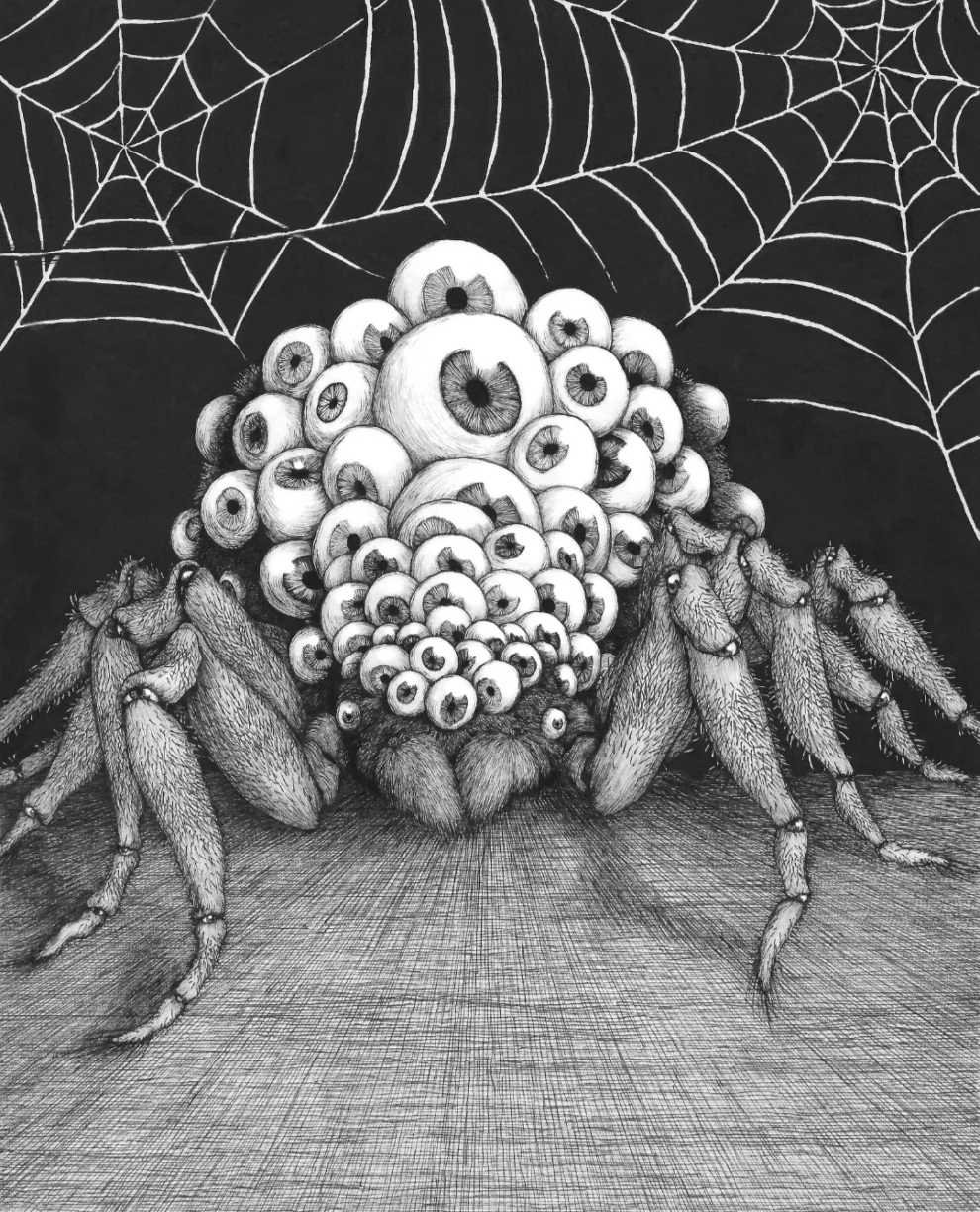 Gaia Perissutti is an Italian surreal illustrator who calls herself the “Surrealist Great Archduchess of Tiny Details,” known for dense black‑and‑white ink drawings filled with eyes, tentacles, teeth, bugs and strange hybrid creatures.