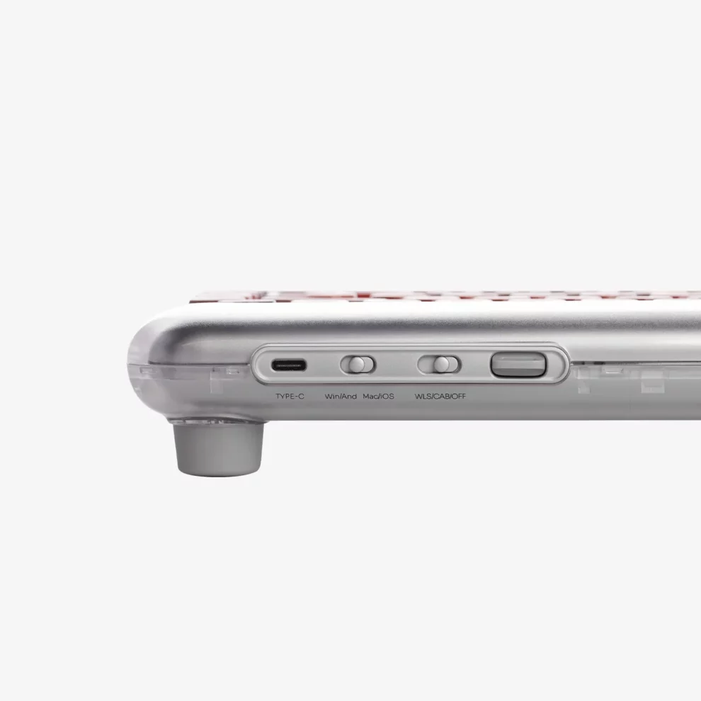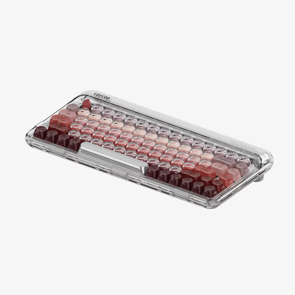Each keycap is styled in a classic lipstick shade, creating a cosmetic-like color palette that feels more like a makeup collection than a gadget. The frosted transparent shell lets these colors shine through, adding a soft, jewelry-display effect to your workspace. Gasket mounting and linear Lofree × Gateron switches with a light 40 g actuation force deliver a smooth, cushioned typing feel and a more refined sound profile.