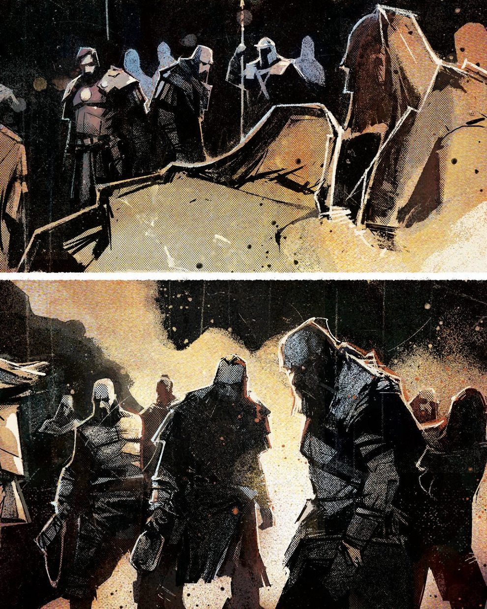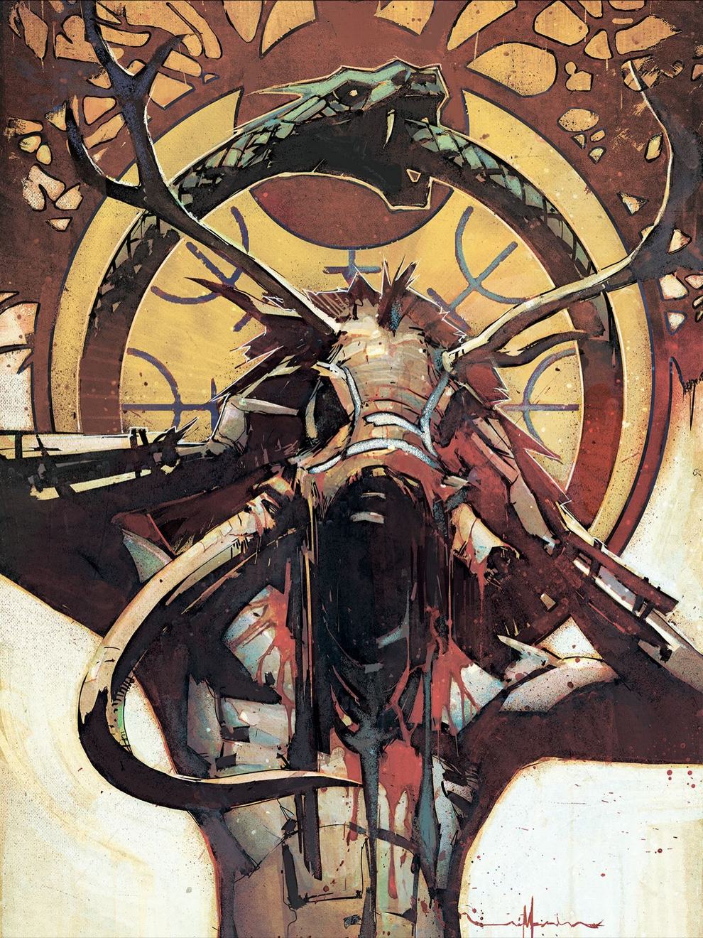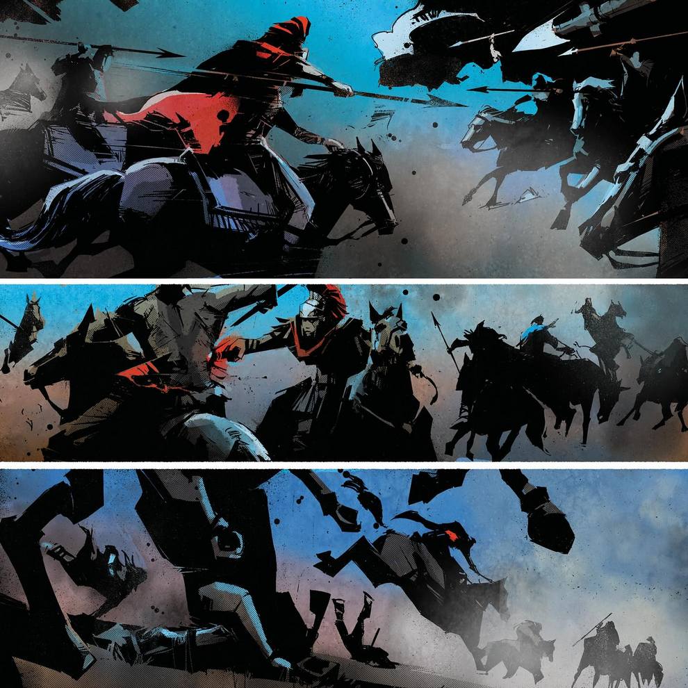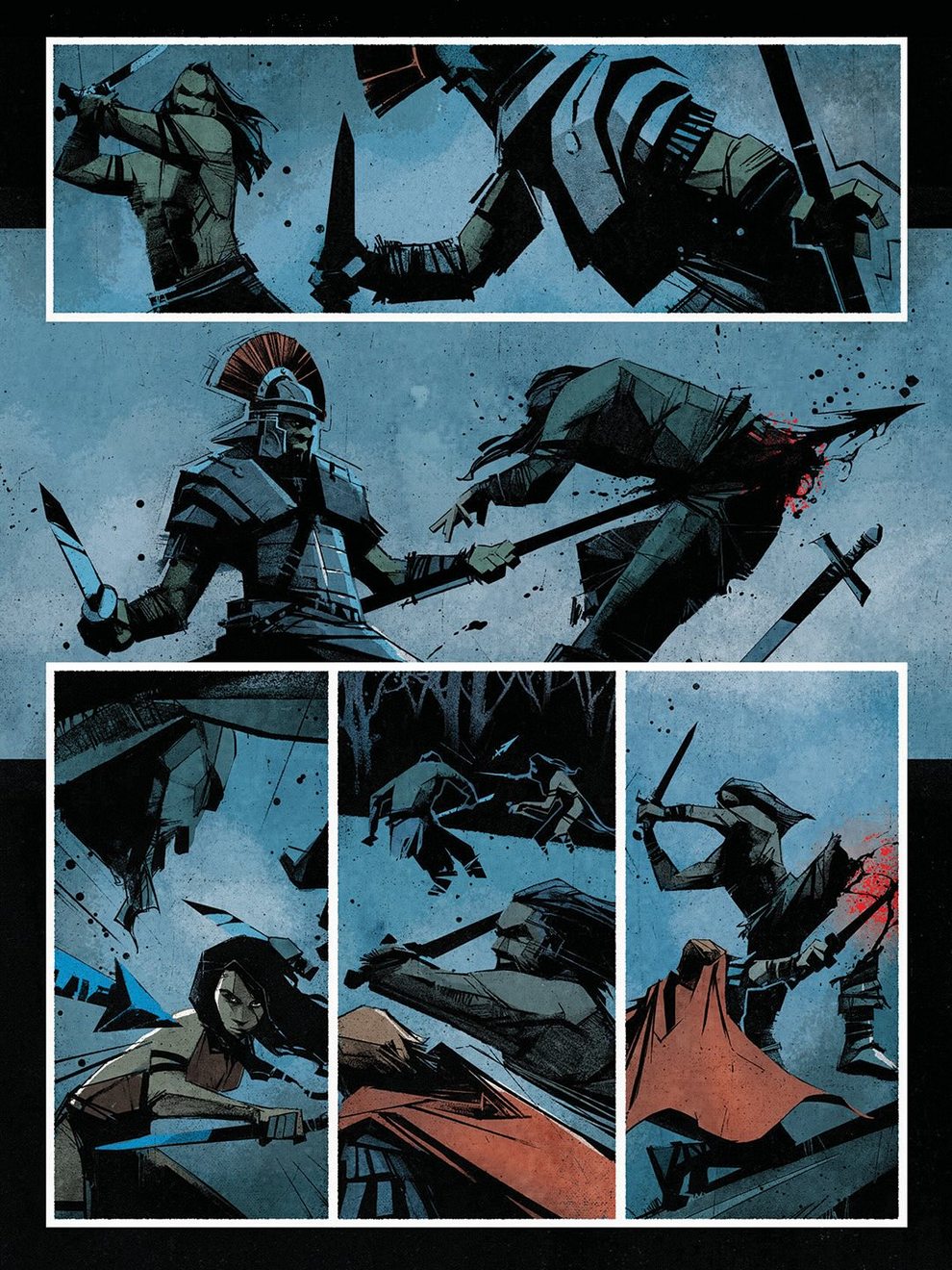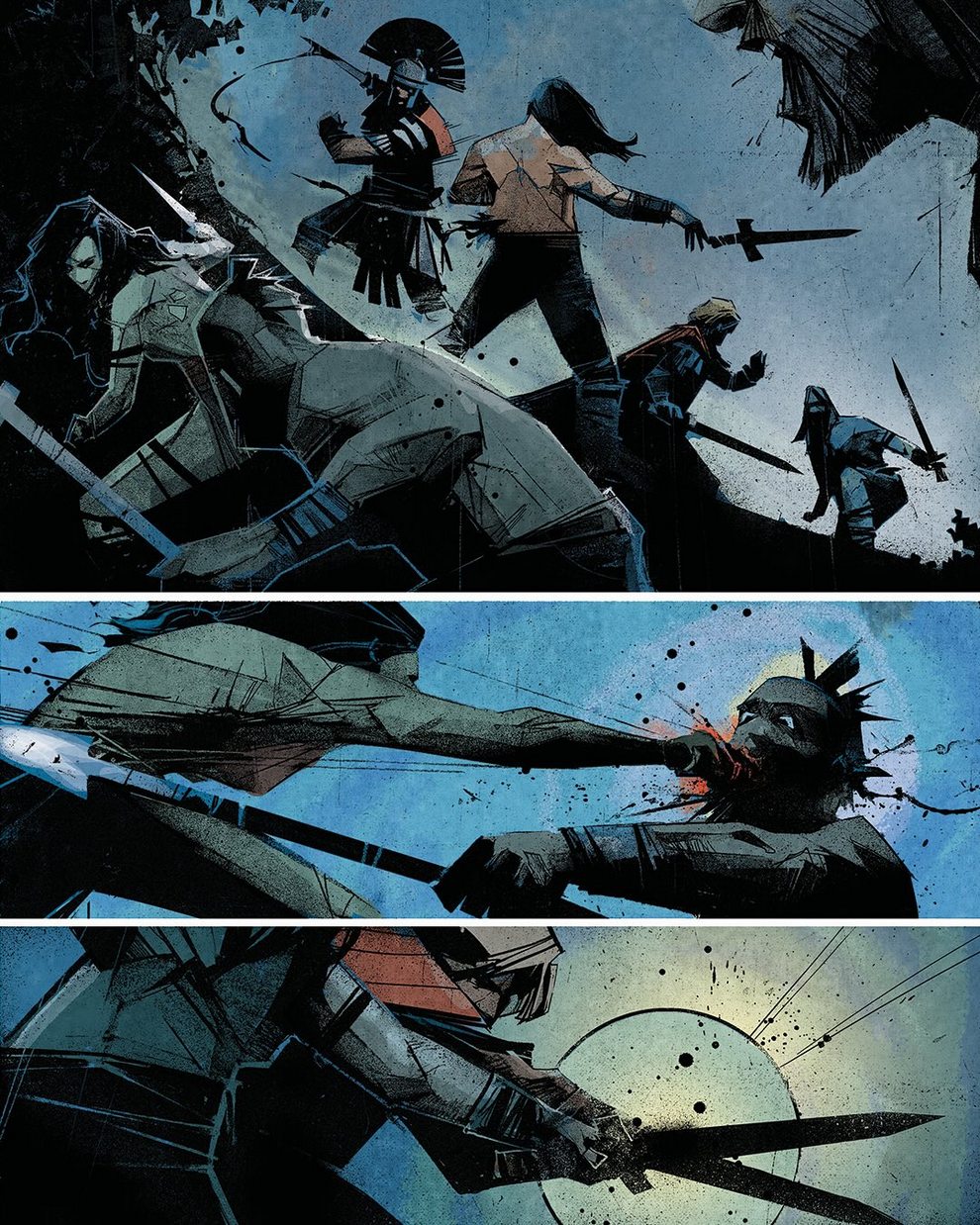 Working in ink, watercolour and digital, he combines loose, expressive mark‑making with gritty realism, using splatters, dry‑brush textures and moody lighting to portray Roman legions, plague‑era England, monsters and reimagined classics like Dracula and Frankenstein. Beyond interiors and covers for publishers such as Image, Titan and Ubisoft (Assassin’s Creed stories), he releases limited prints, process reels and personal pieces on Instagram that blend comics storytelling with fine‑art atmosphere.