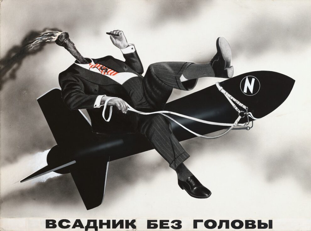 The headless rider: The capitalist, with a torch as a head, is pictured riding a bomb, 1981 by Aleksandr Zhitomirsky