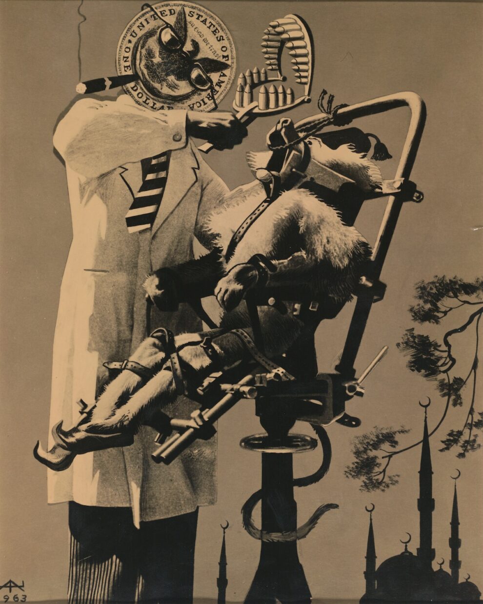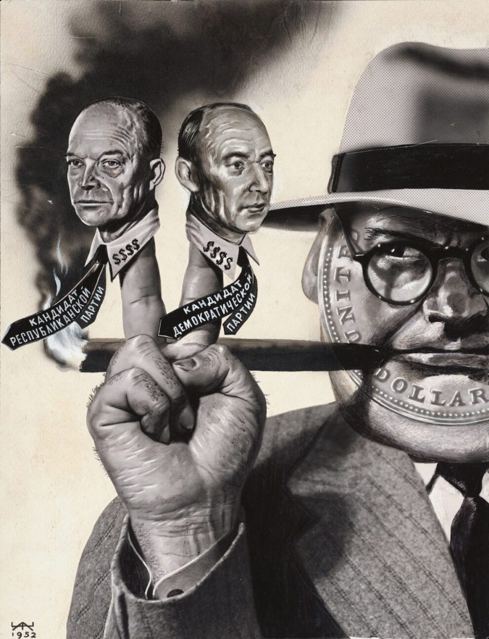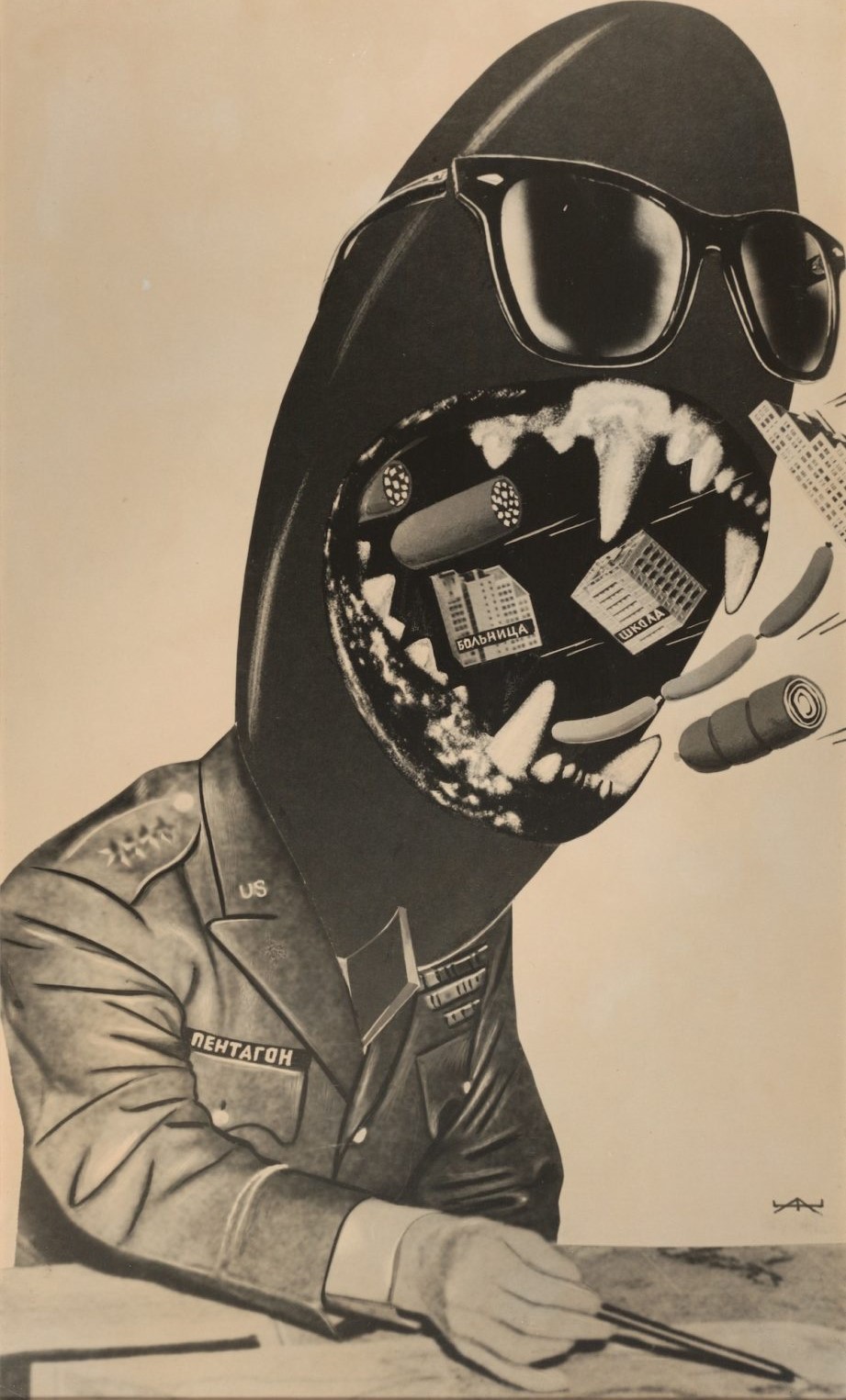 Born in Rostov‑on‑Don and based in Moscow, he was inspired by John Heartfield and worked for publications like Pravda, producing leaflets airdropped on Nazi troops (Front Illustrierte) and anti‑American posters that placed figures like Harry Truman in monstrous or ironic contexts. His photomontages used cut‑and‑paste photography to deliver direct, humanistic messages to soldiers and citizens, earning him a spot on the Nazi “most wanted” list, though he faced persecution during Stalin’s anti‑Semitism campaigns and the Zhdanov Doctrine, which criticized photomontage as non‑socialist realist. In 1983, he published The Art of Political Photomontage: Advice for the Artist, sharing techniques for impactful, “dynamite” propaganda rooted in seeing the unseen.