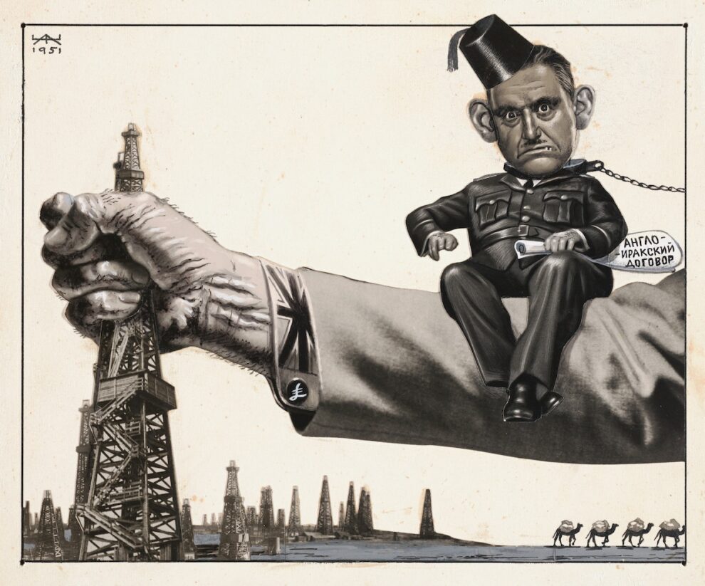 The Stock Exchange watered with the blood of US soldiers – On the petals of the flower are the names of various American corporations by Aleksandr Zhitomirsky, 1950