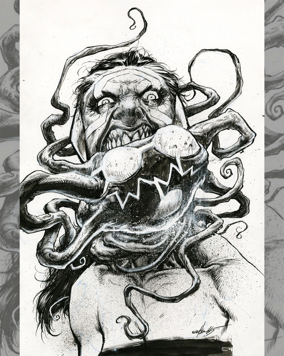 Jonathan Wayshak is an American comic and concept artist known for chaotic, high‑energy ink work, dense cross‑hatching and grimy, “questionable” creatures that sit between underground comix, horror and sci‑fi illustration.