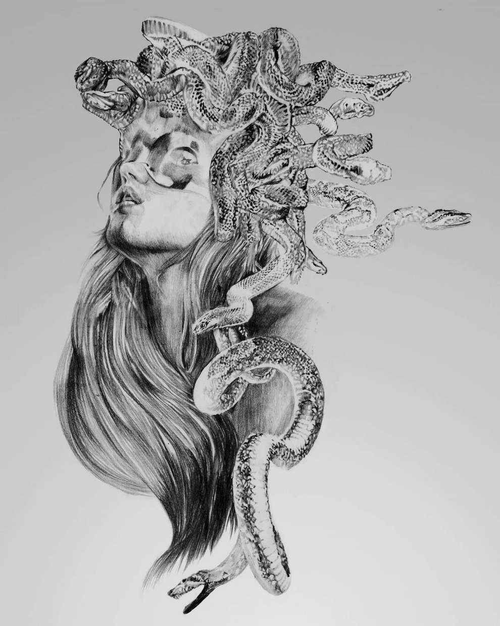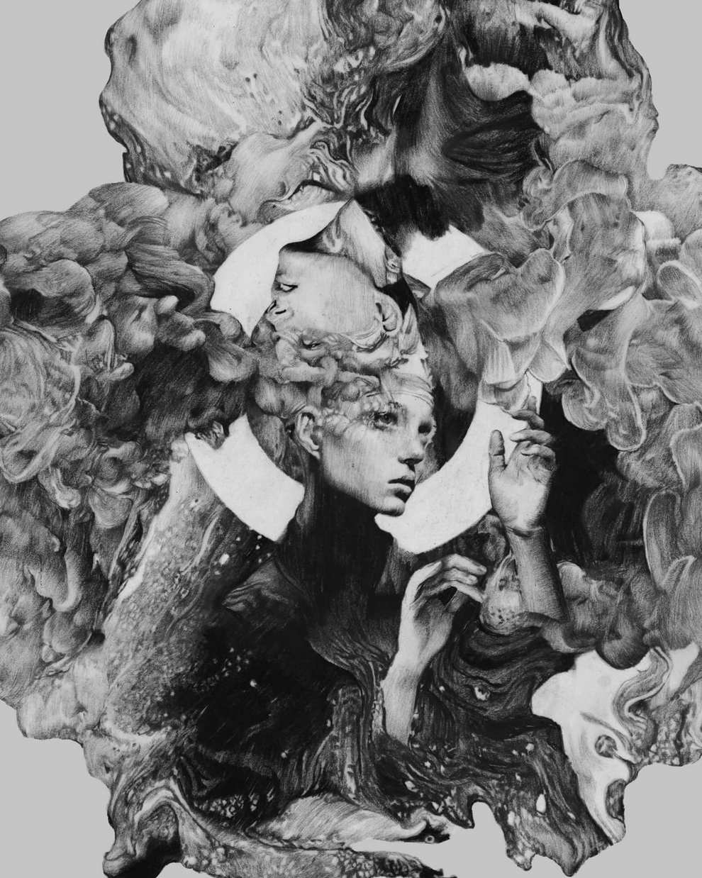 Dasha Pliska is a Ukrainian artist and illustrator from near Odesa who works primarily in graphite, charcoal and pencil, creating monochrome drawings with rough textures, delicate shading and a strong sense of drama and “ghostly grace.”
