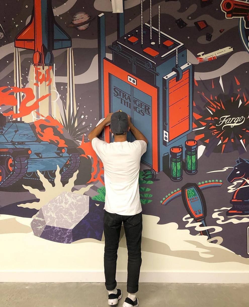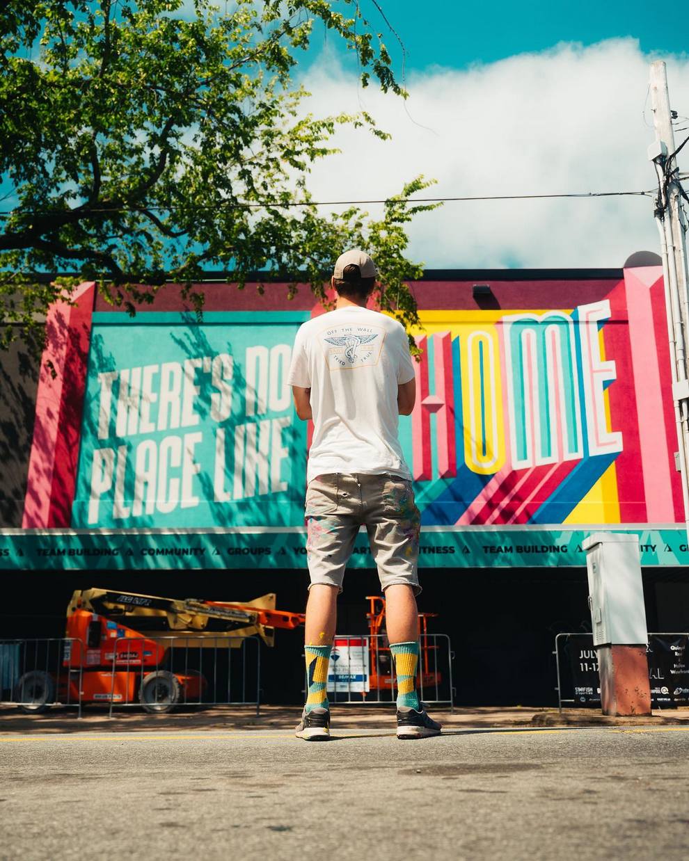A First Class Honours graduate from Nottingham Trent University’s Graphic Communication program, he freelanced since 2013 after London agency experience, creating murals, sculptures and graphics for clients like Sony Music, Lululemon, Urban Outfitters, Red Bull and Penguin Random House, often using custom typography to reshape environments from music venues to retail interiors. He authored the books Drawing Type and Expressive Type (Rockport Publishing), celebrating letterform creativity, and shares his process—hand‑drawn sketches evolving into wood carvings, coolers, snowboards and large‑scale installations.