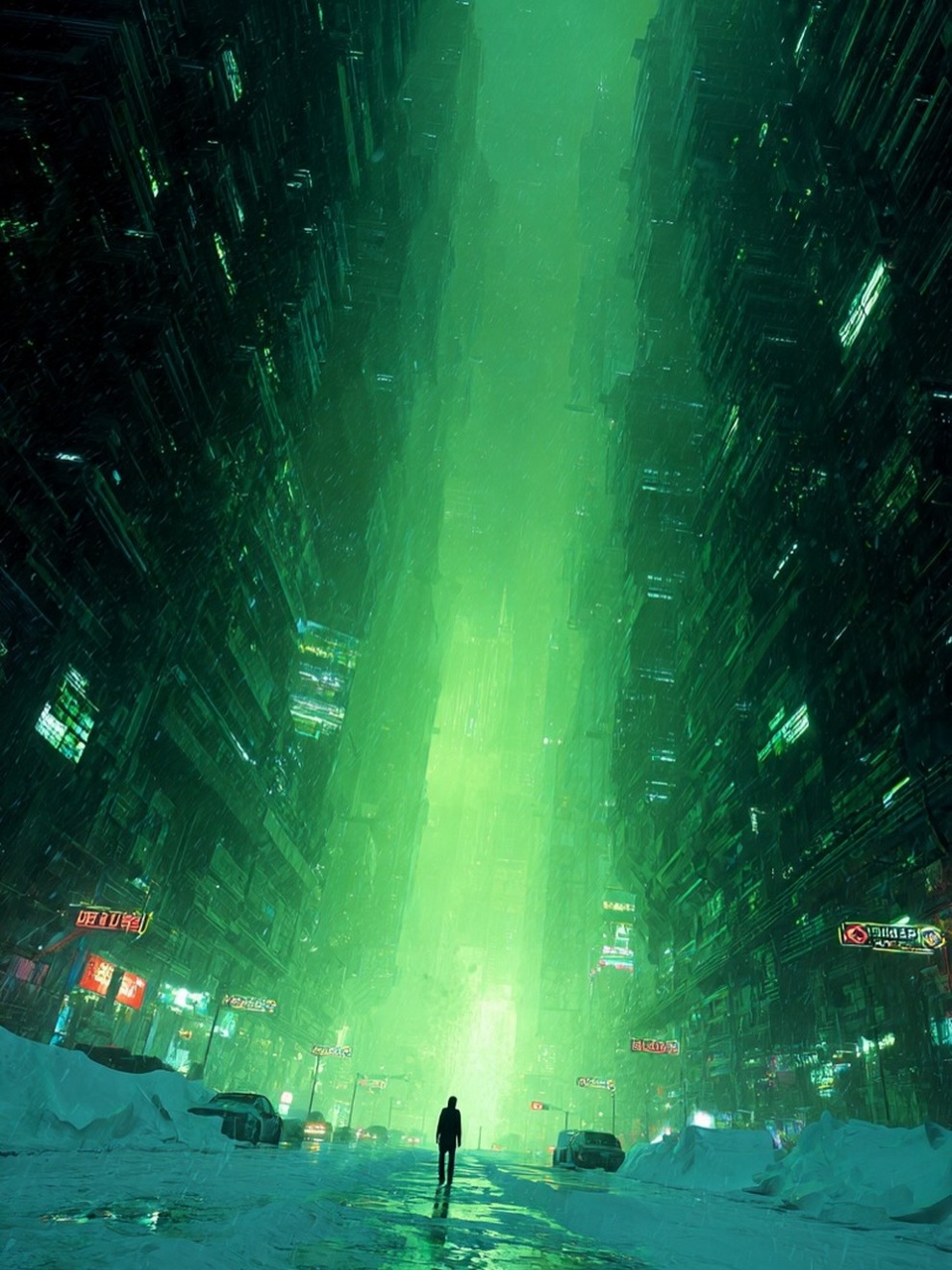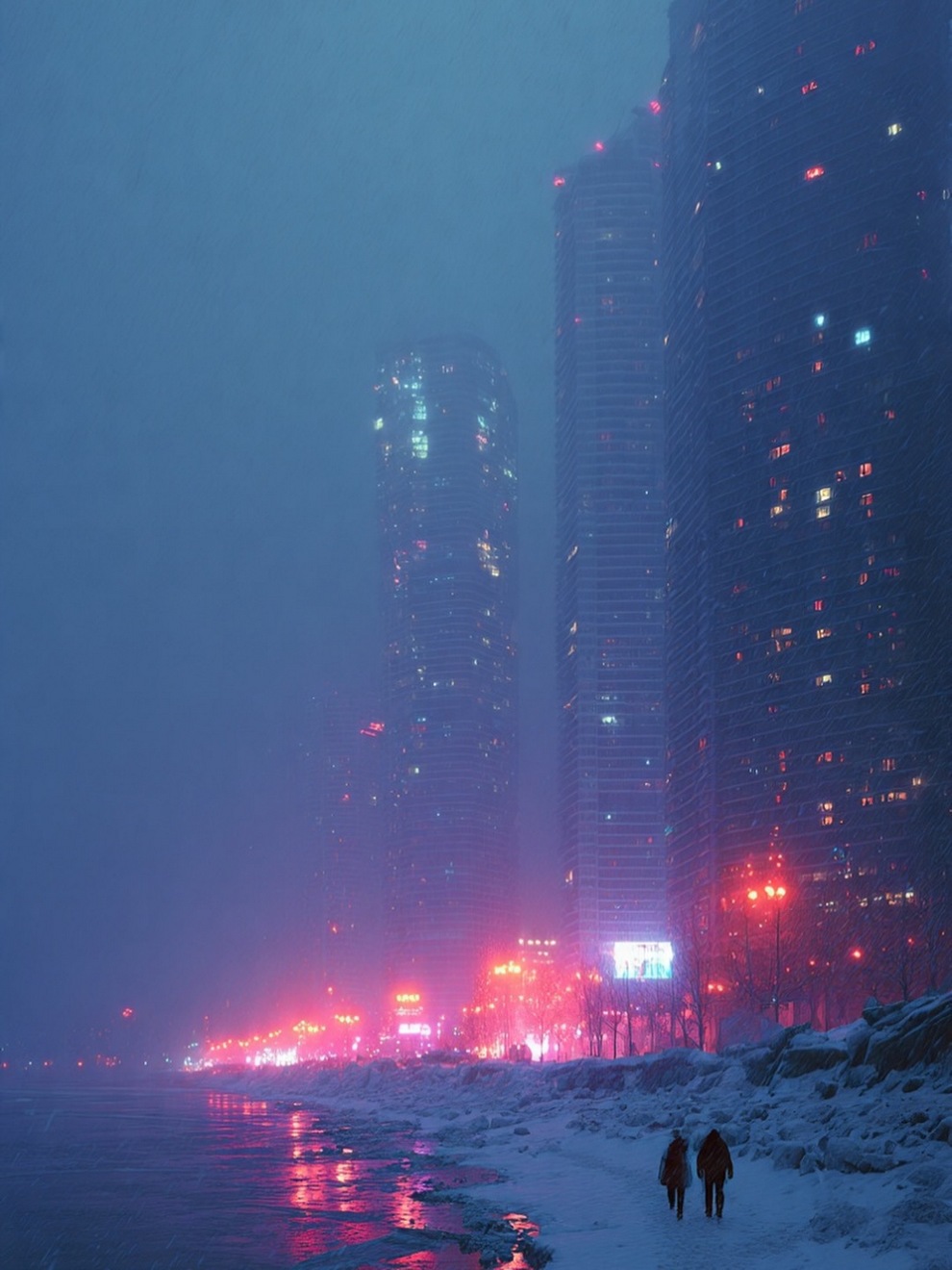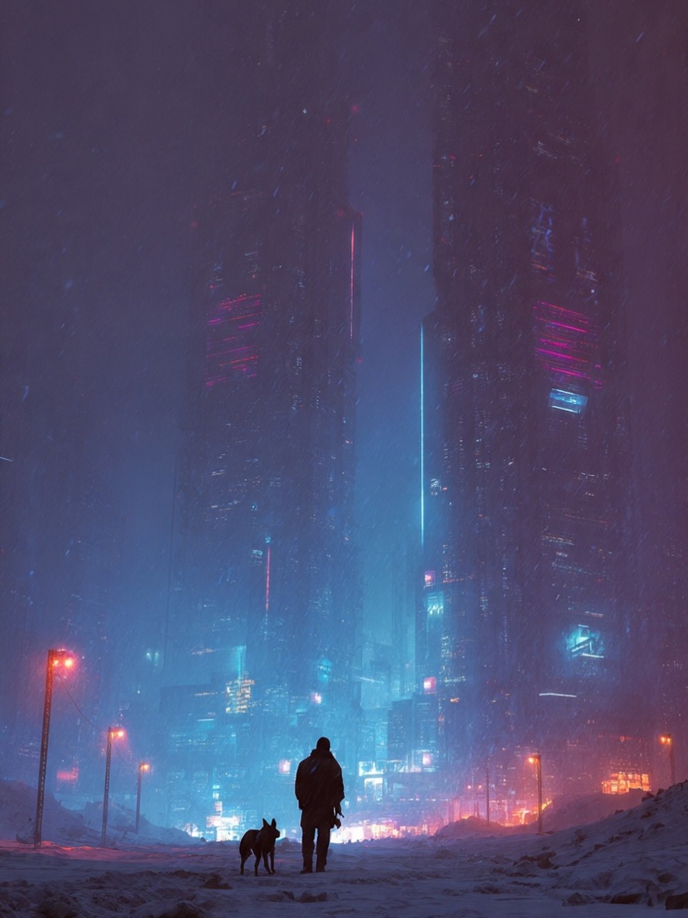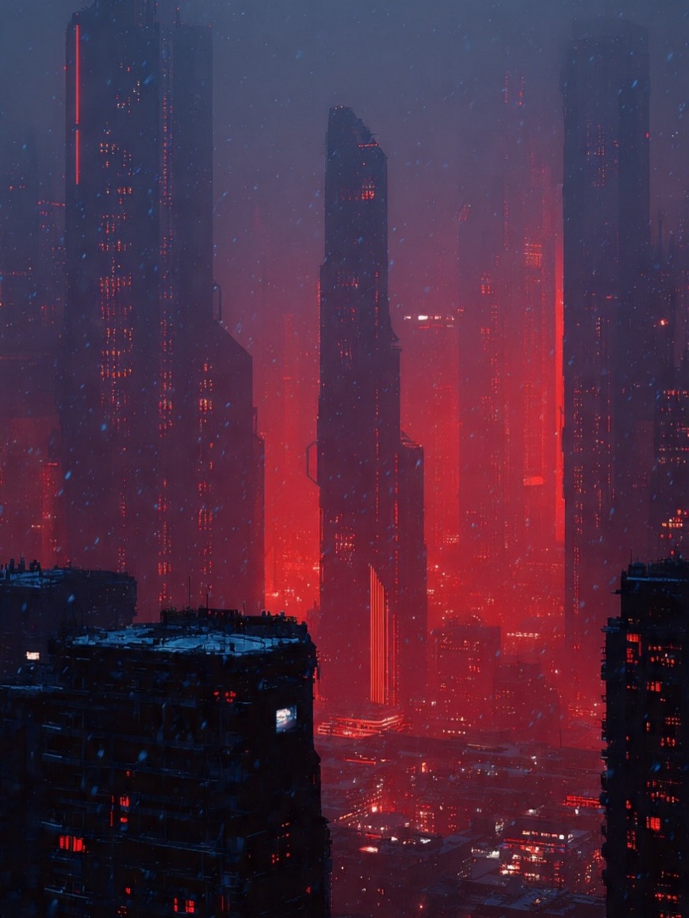 Artist Turns Cyberpunk Skylines Into Soft Poetry—Neon Streets, Snowfall And Silence In A Parallel Universe