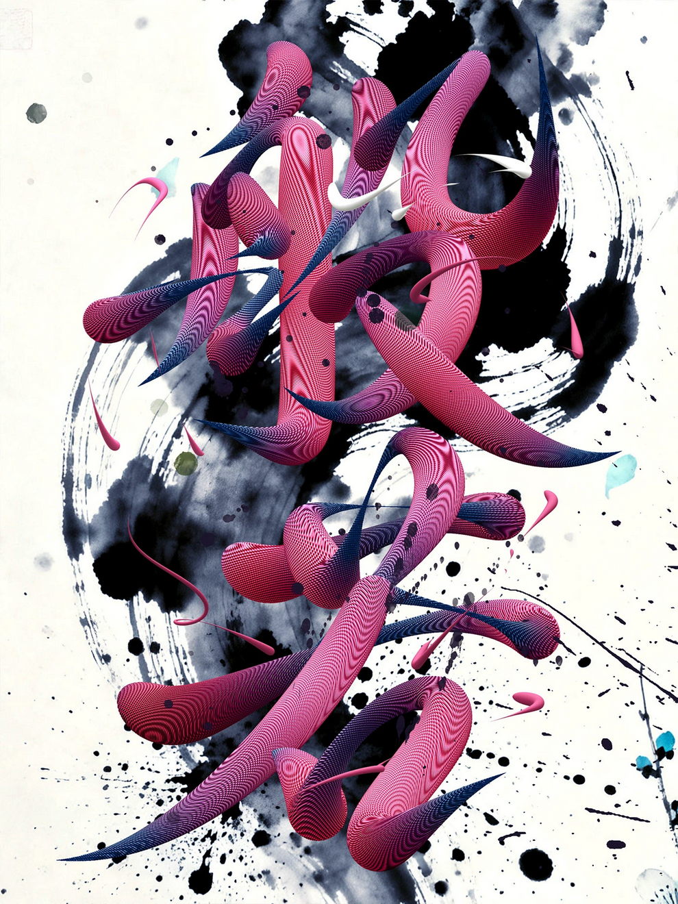 Li Zhongzheng Turns Modern Calligraphy Into Chunky Neon Lettering Pulsing With Sci-Fi Volume