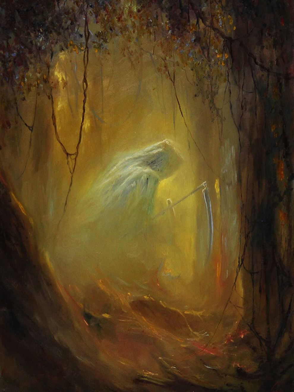 Without formal art training, he started by painting shop signs and funeral ribbons while working at a metal factory, then sold paintings at local markets near Lidzbark Warmiński and Olsztyn before gaining wider recognition for his distinctive style of cosmic horror, barren landscapes and lone figures confronting towering monoliths, cataclysms and horrific entities. His breakthrough came with American doom metal band Bell Witch commissioning the cover for their 2017 album Mirror Reaper, leading to further metal covers and a posthumous legacy managed by his family, with originals and fine‑art prints.