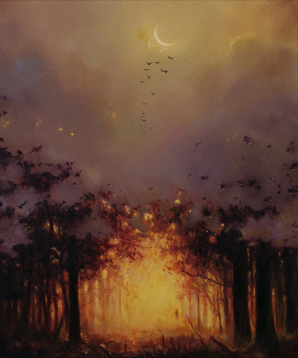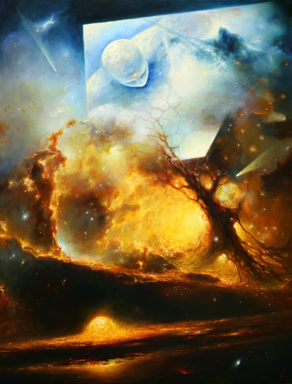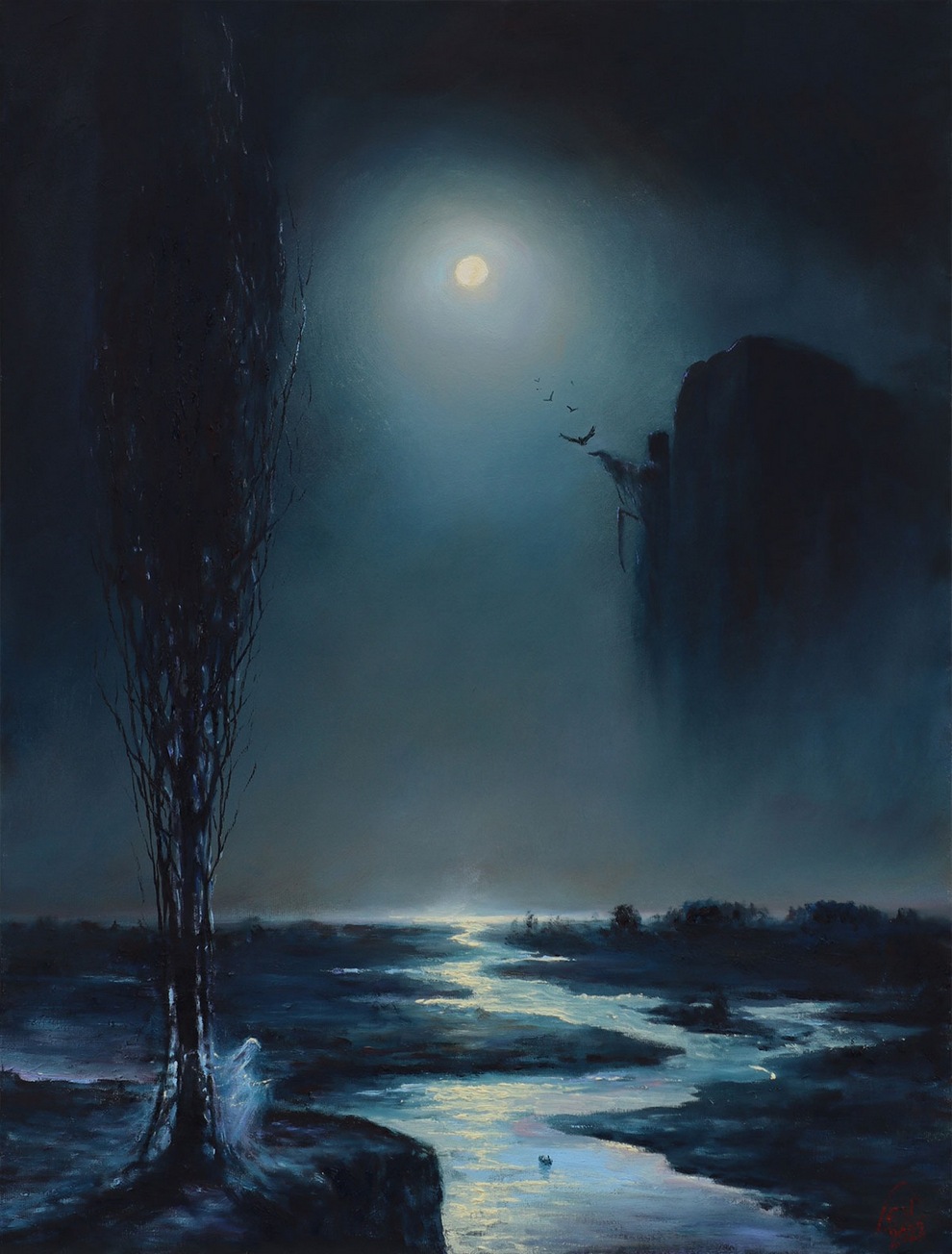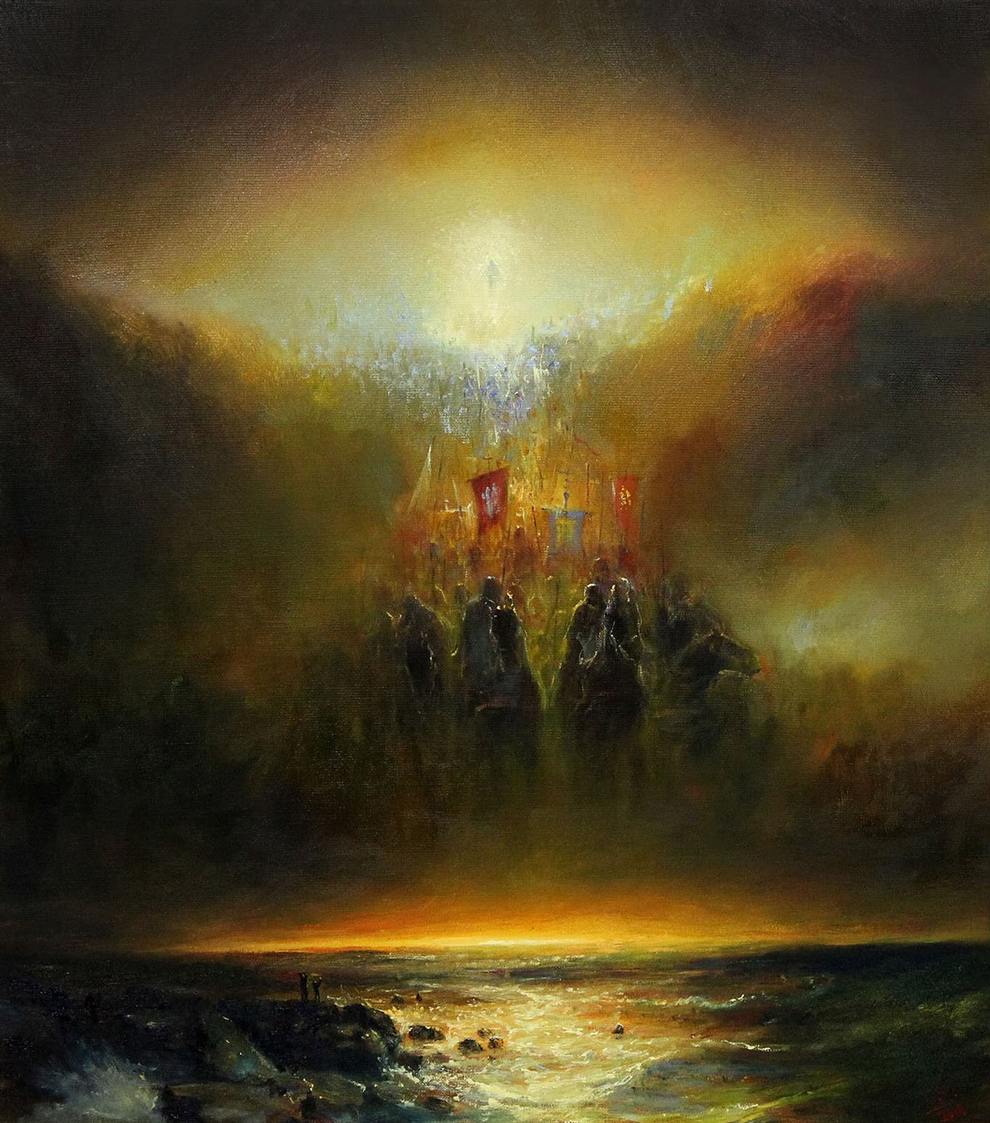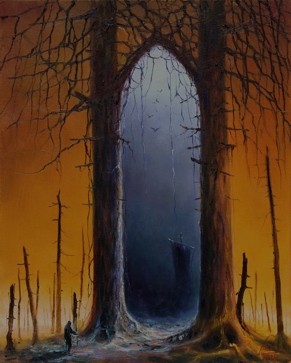 Mariusz Lewandowski was a Polish surrealist painter (1960–2022) from Działdowo who lived and worked in Górowo Iławeckie, Warmia and Masuria, creating oil‑on‑canvas works dominated by mystical, apocalyptic and otherworldly motifs.