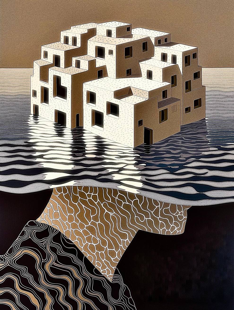 Robert Reimann is a Boston‑based designer, author and pioneer of “synthography”—AI‑generated surreal digital fine art created with Midjourney, blending photography, hand‑drawn elements and precise prompting for complex, weeks‑long pieces like “Manifold Destiny I,” “Saturation Point I” and “Interpenetrable I.”