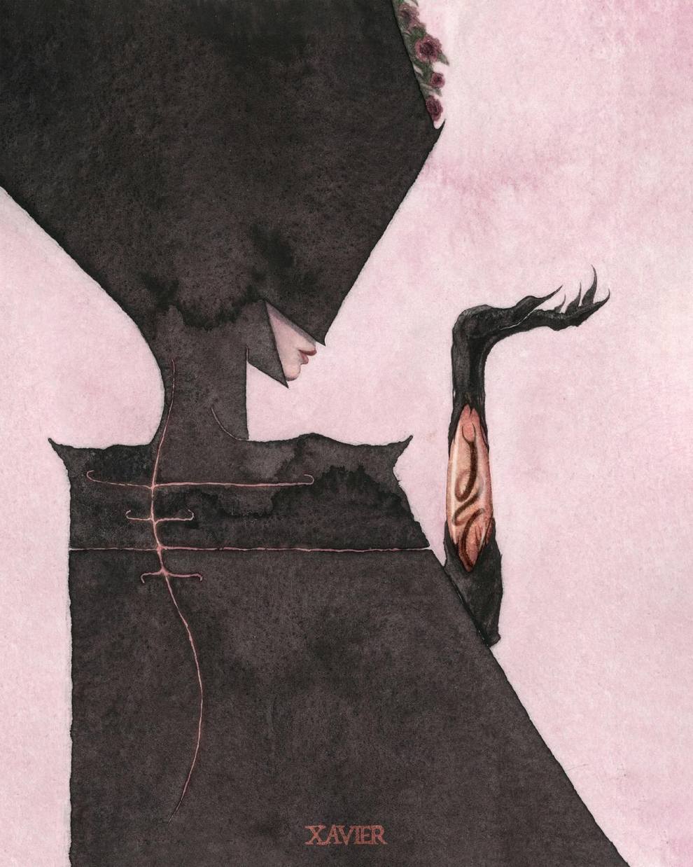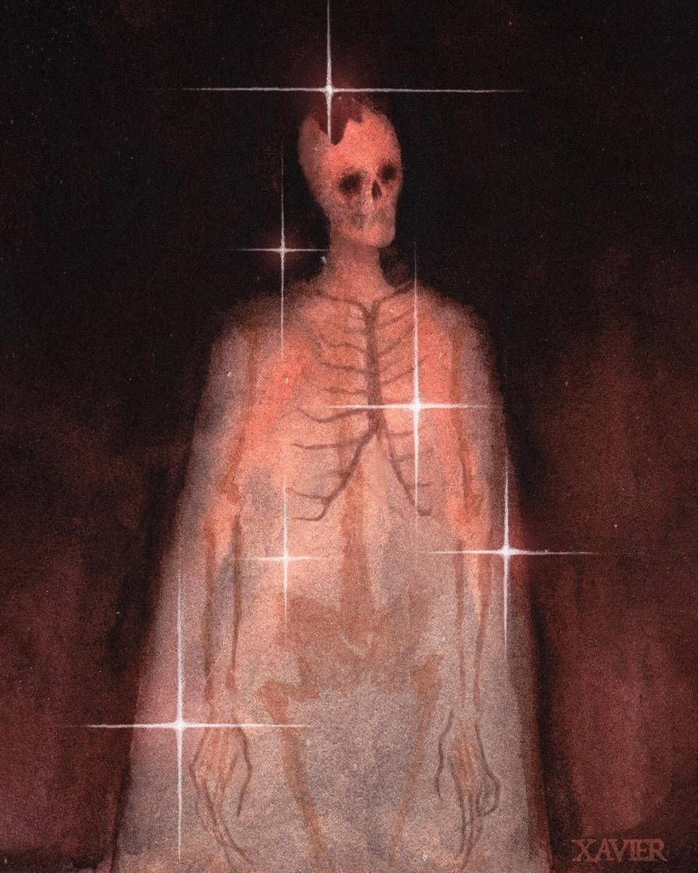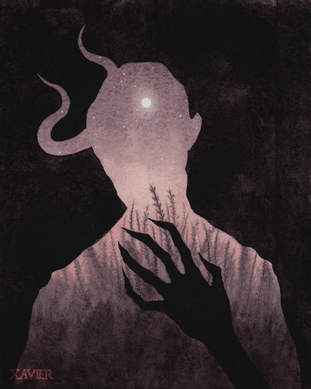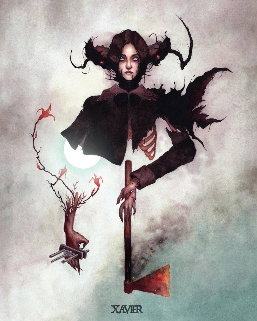 Xavier Ortiz is a Sacramento‑based dark‑fantasy illustrator working primarily in watercolor (often mixed with pastel), known for haunting yet tender images of witches, spirits, skeletons and seasonal beings wrapped in misty, glowing atmospheres.