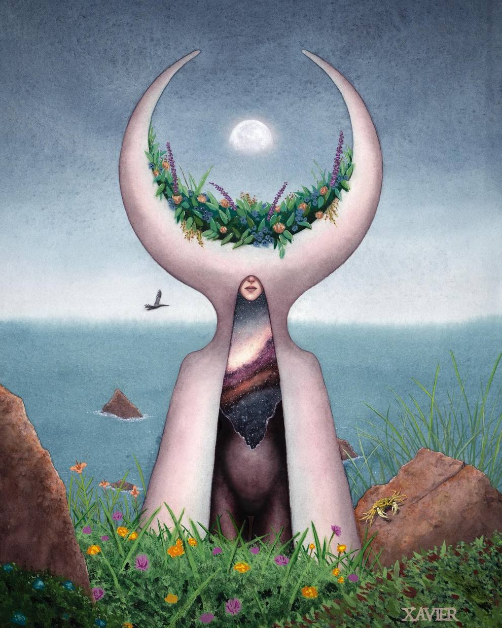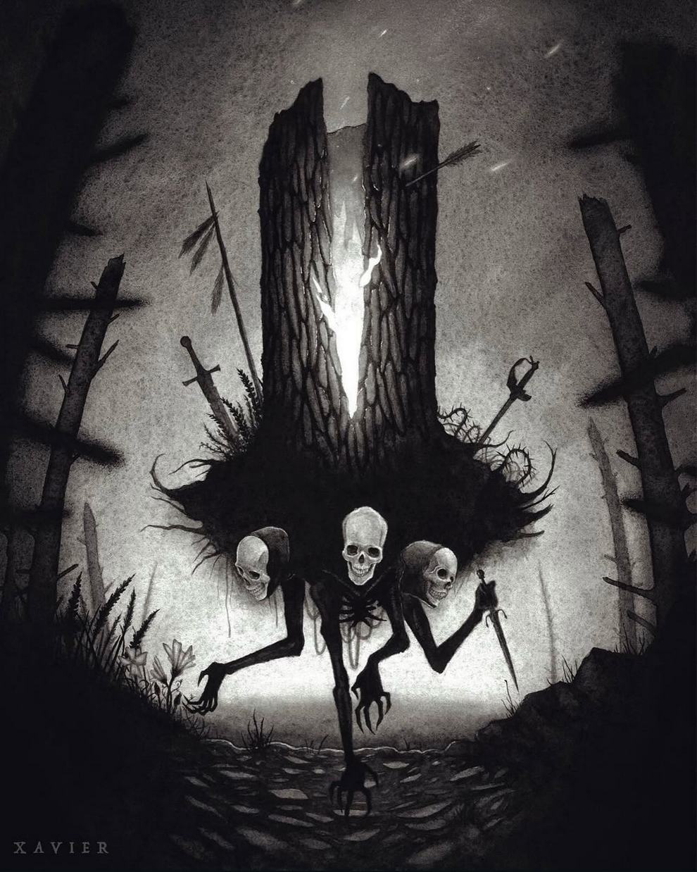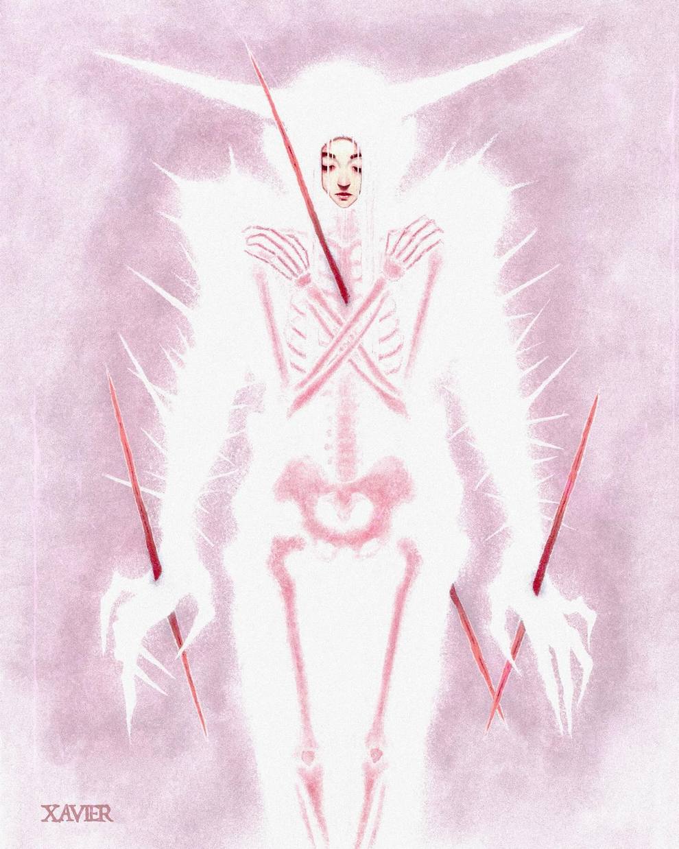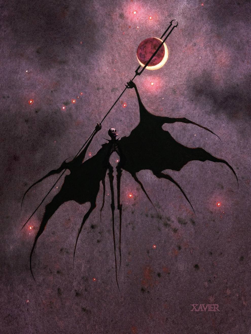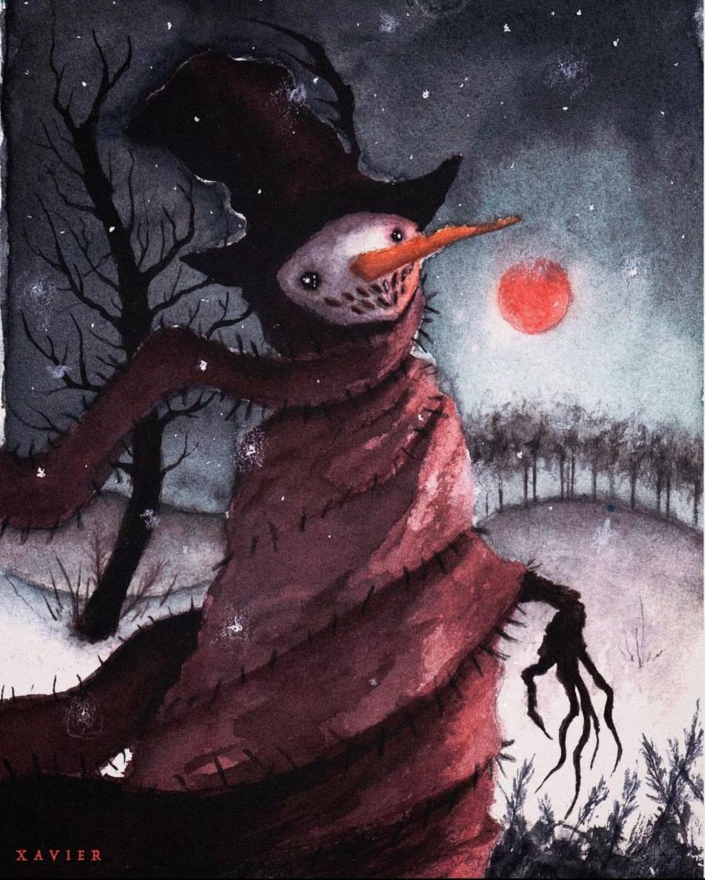 Xavier Ortiz is a Sacramento‑based dark‑fantasy illustrator working primarily in watercolor (often mixed with pastel), known for haunting yet tender images of witches, spirits, skeletons and seasonal beings wrapped in misty, glowing atmospheres.
