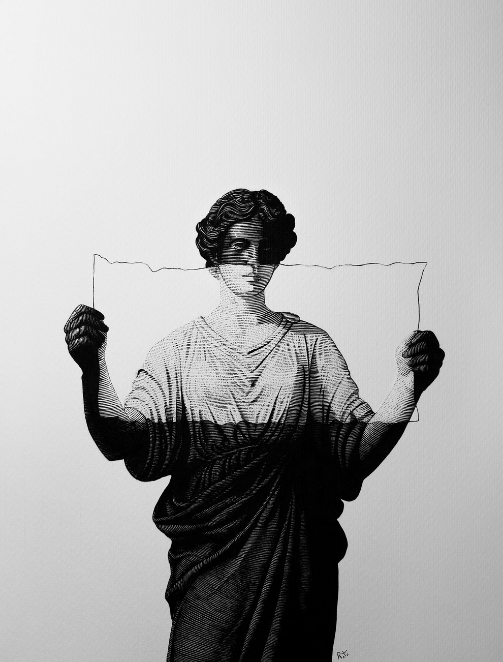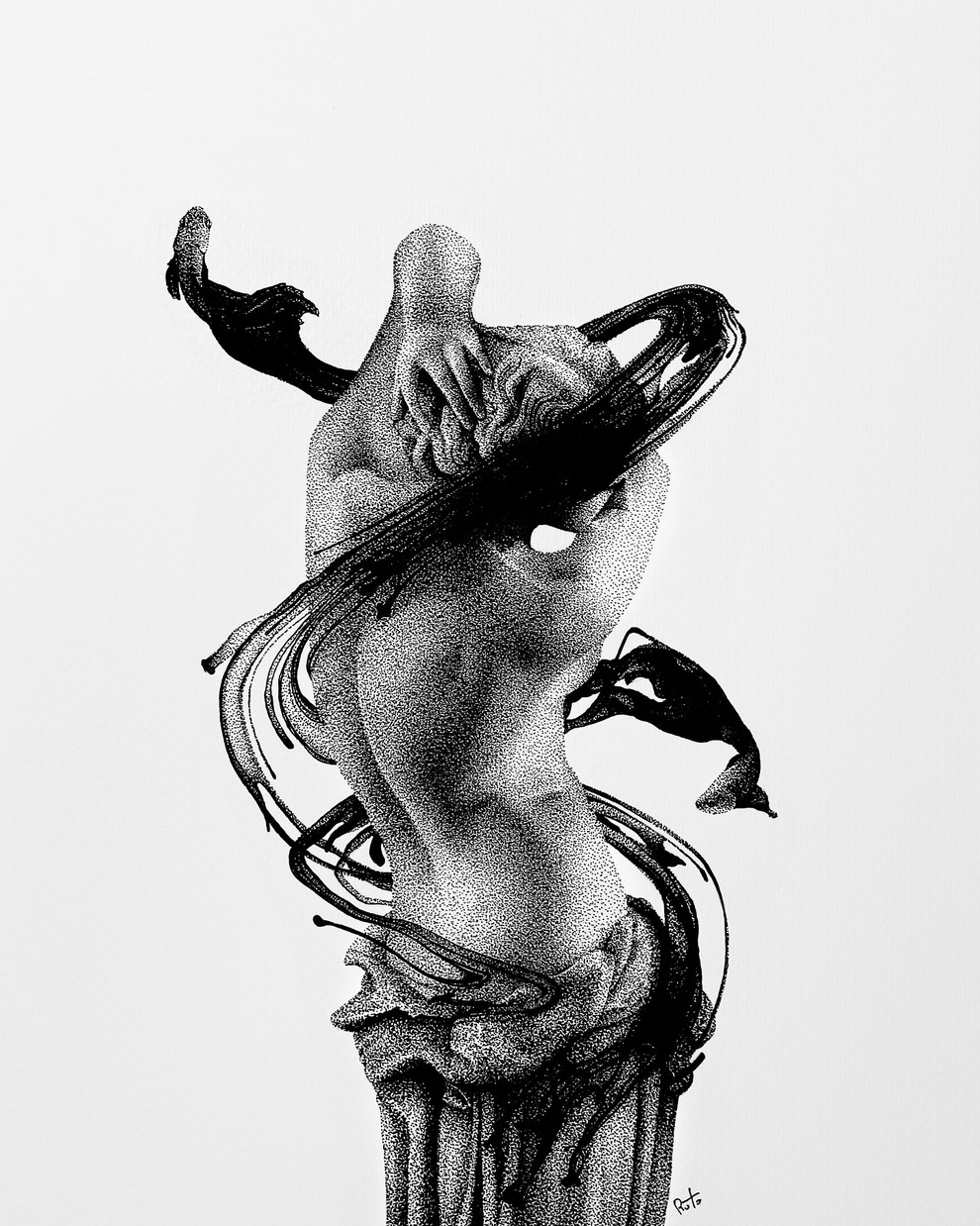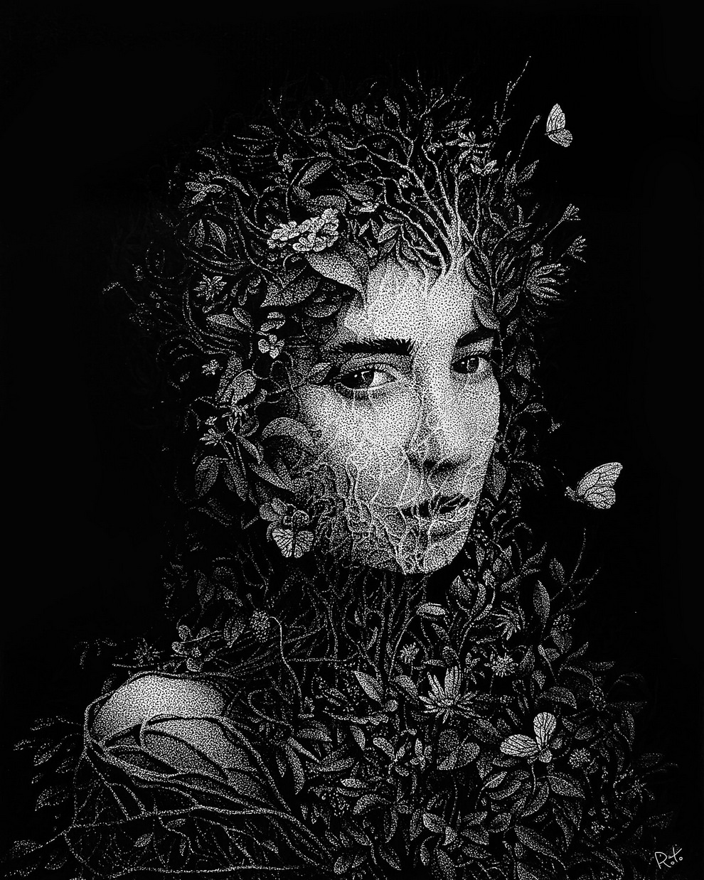 Rostislaw Tsarenko is a Ukrainian self‑taught artist from Poltava who specializes in highly detailed black‑and‑white ink drawings using dotwork and stippling to build realistic yet surreal, symbol‑heavy images.