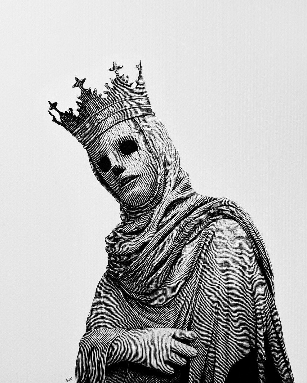 Ukrainian Artist Builds Dotwork Worlds Where Kings, Queens And Skeletons Act Out Quiet, Psychological Dramas In Pure Black Ink