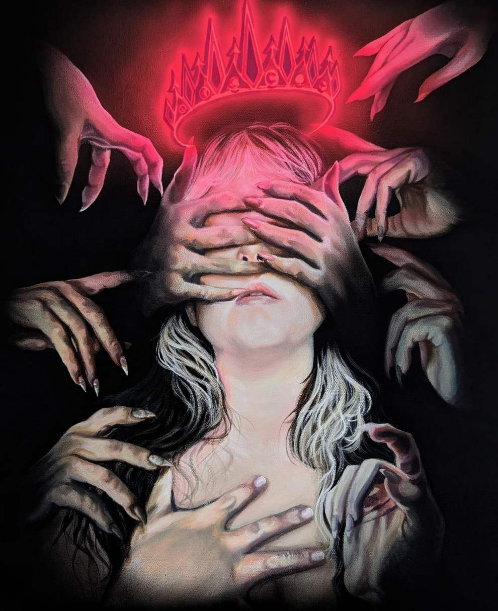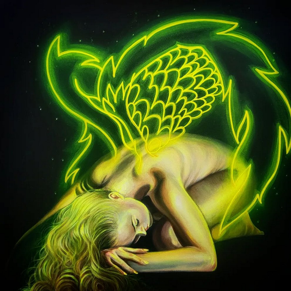 Her work often explores emotion, mental health and growing up—pieces like “Everybody’s Fool,” “Forget You,” and entries in the Neon Wings series use neon color, halos, wings and symbolic props to visualise heartbreak, resilience and self‑image.