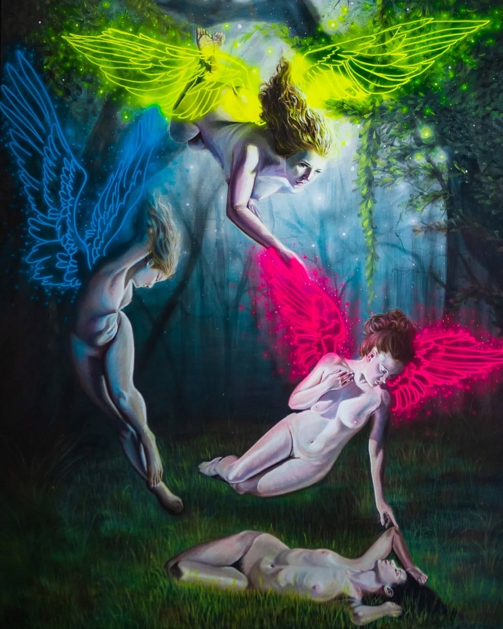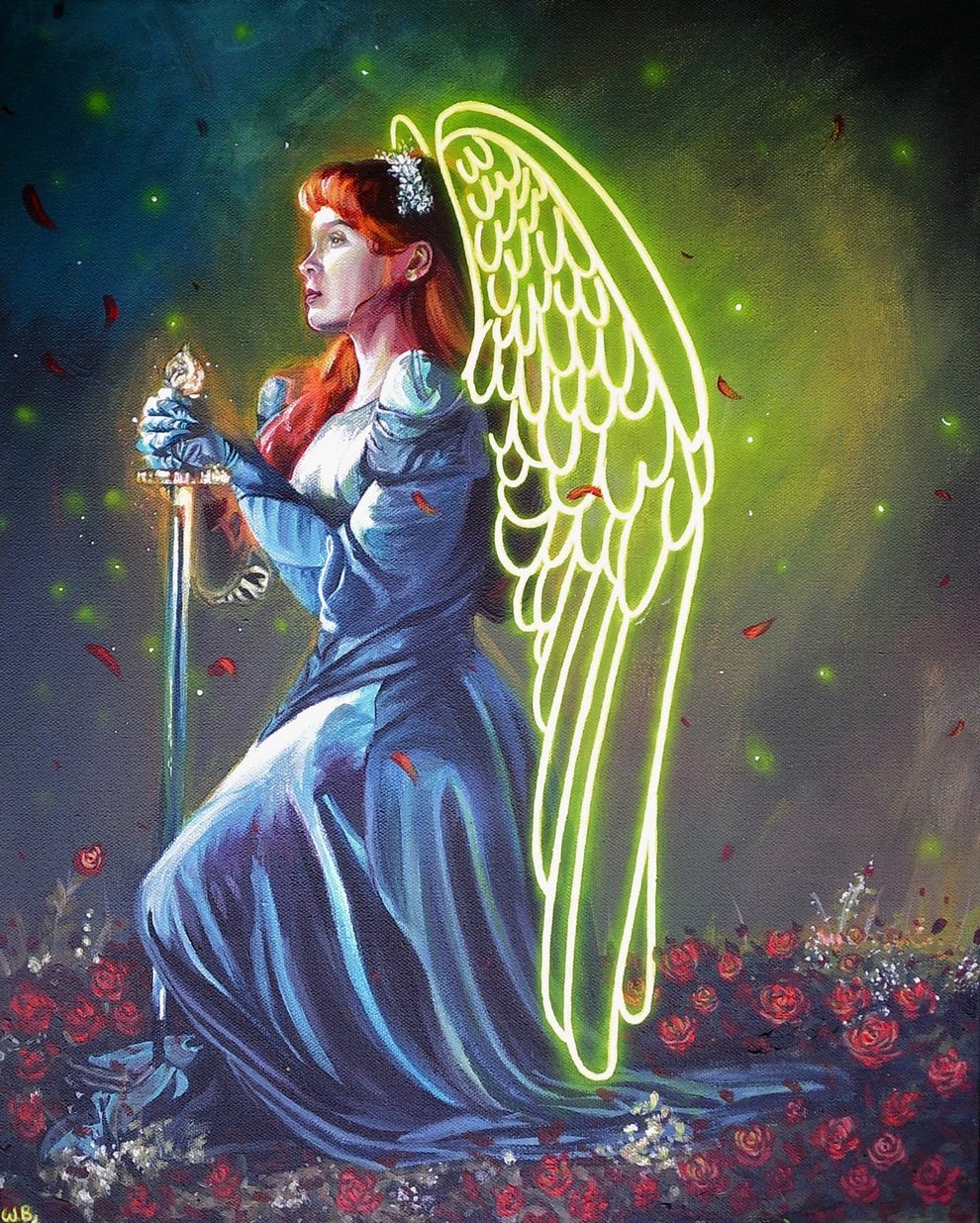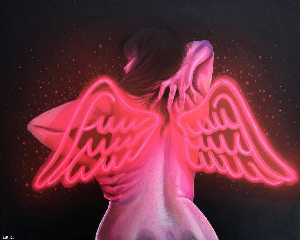 World Of Halos, Wings And Symbolic Props and Emotional Afterglow in Acrylic Portraits of Willow Benjamin