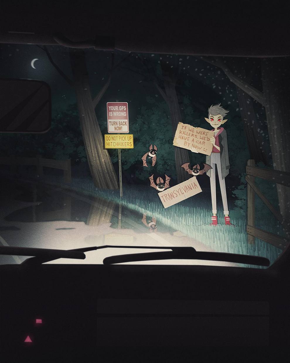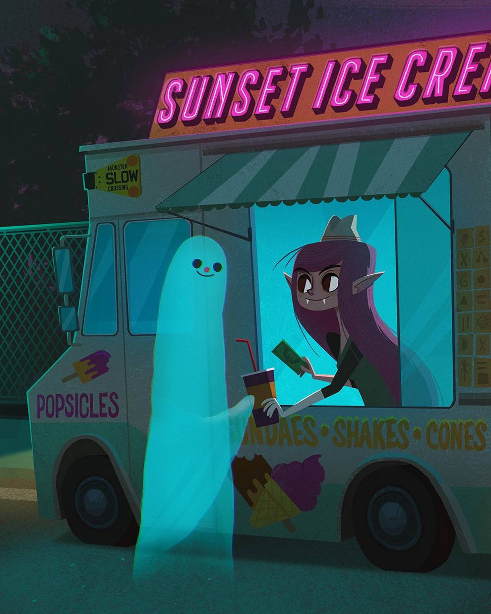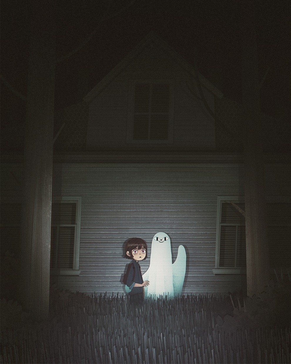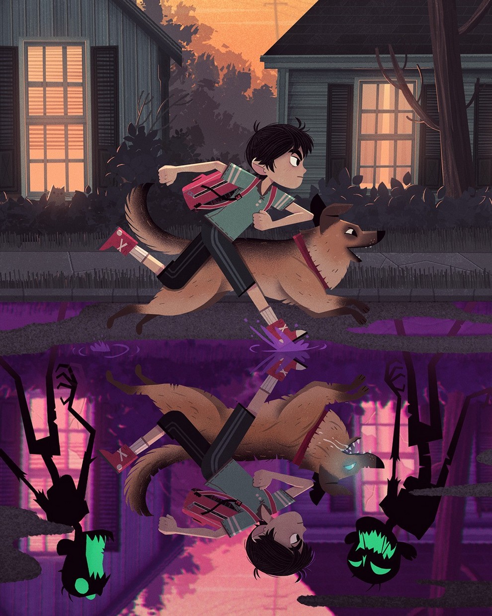 He creates “creepy‑cute atmospheric scenes and characters” for children’s books, with influences from graffiti, horror films, Studio Ghibli, cinema and photography, and has contributed to Knights and Bikes, Creepy Campfire Stories.