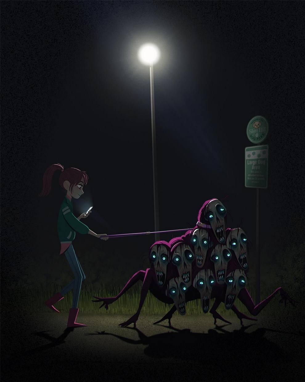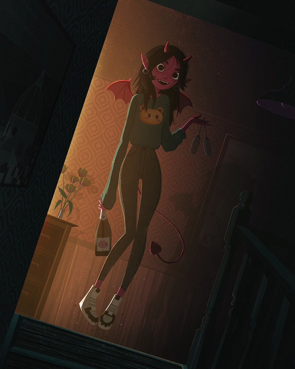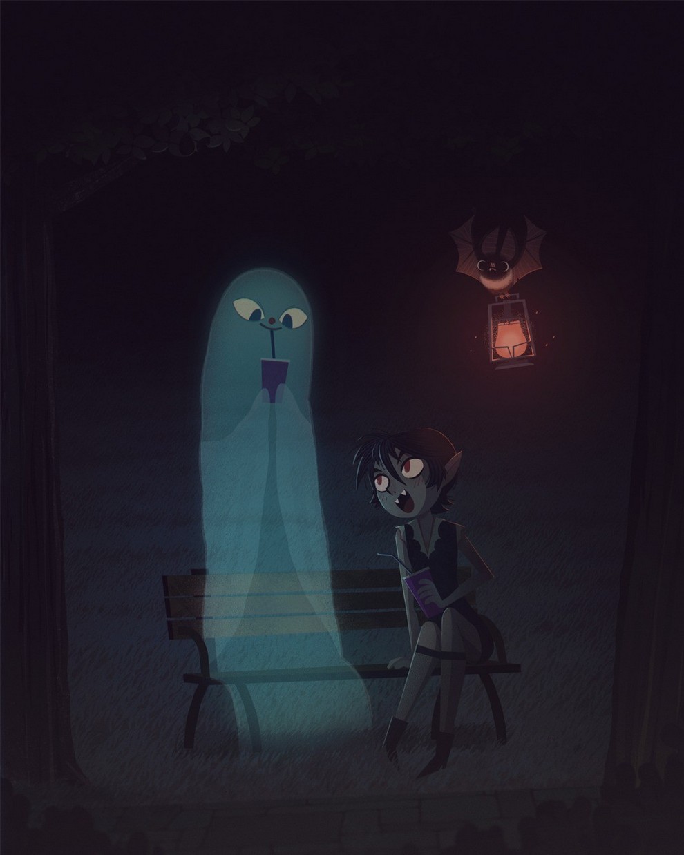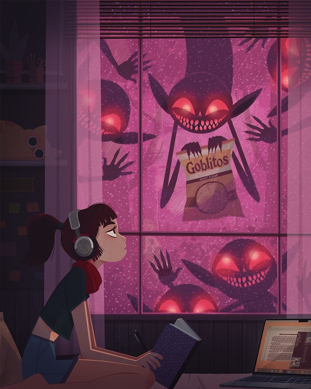 He creates “creepy‑cute atmospheric scenes and characters” for children’s books, with influences from graffiti, horror films, Studio Ghibli, cinema and photography, and has contributed to Knights and Bikes, Creepy Campfire Stories.