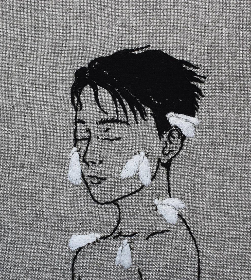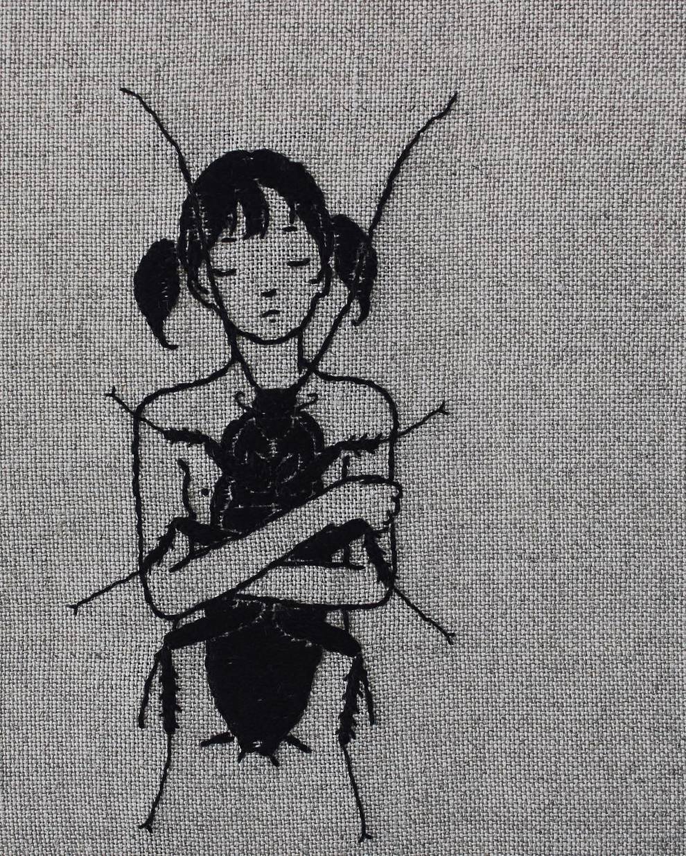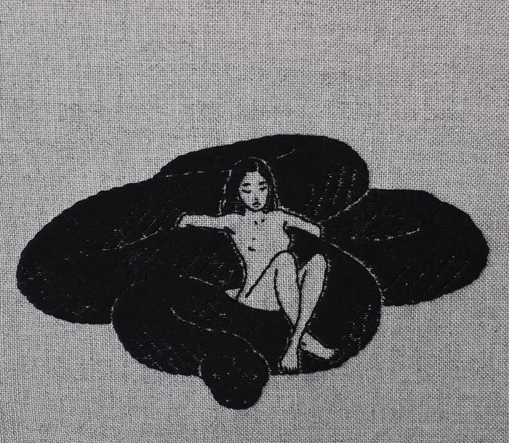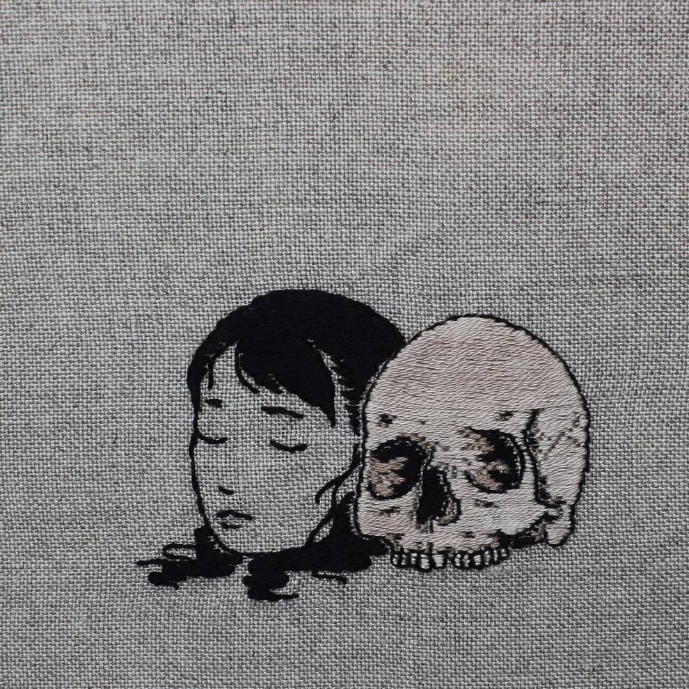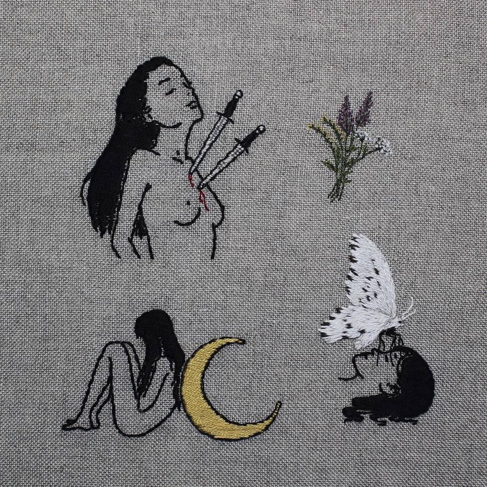 Adipocere is a Melbourne‑based embroidery artist who crafts intricate, macabre illustrations on natural linen using hand embroidery, blending innocence with unsettling melancholy and surrealism.