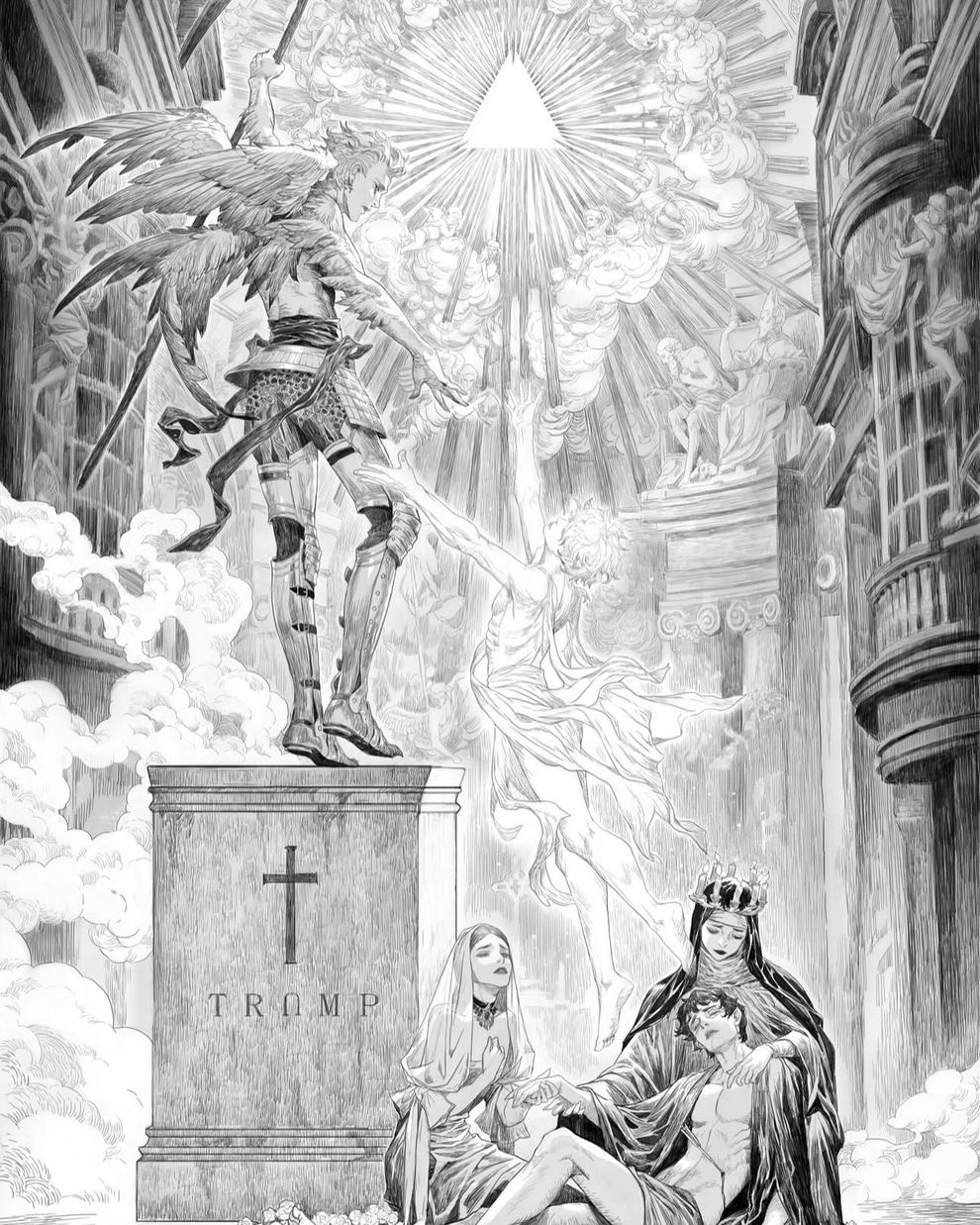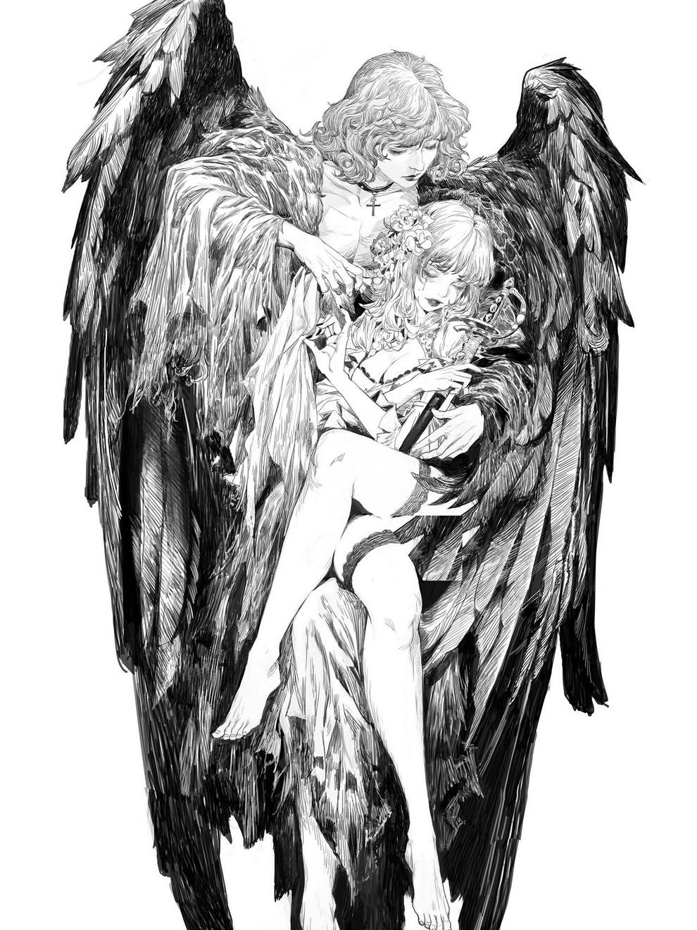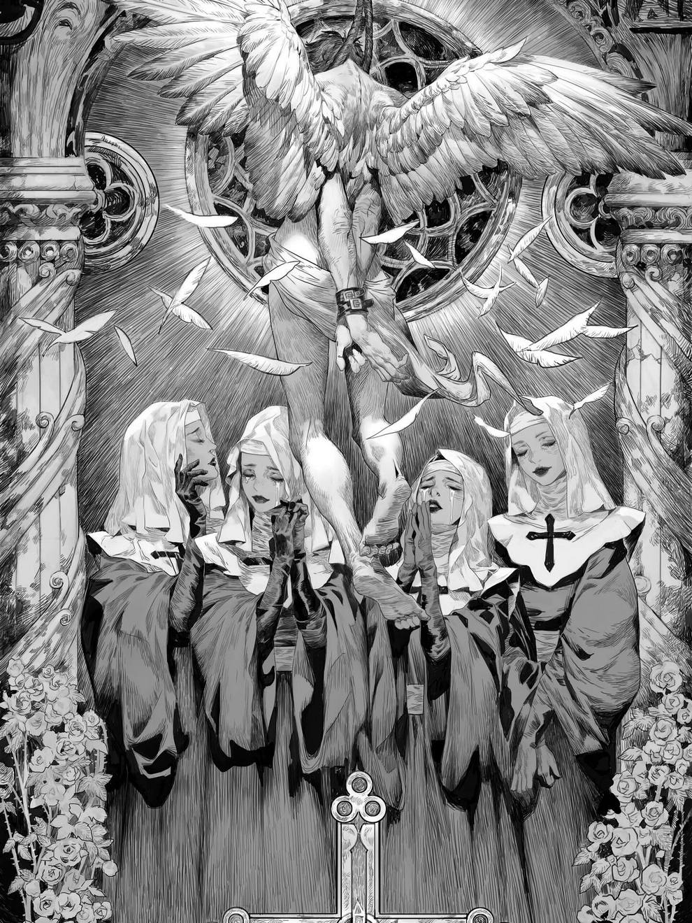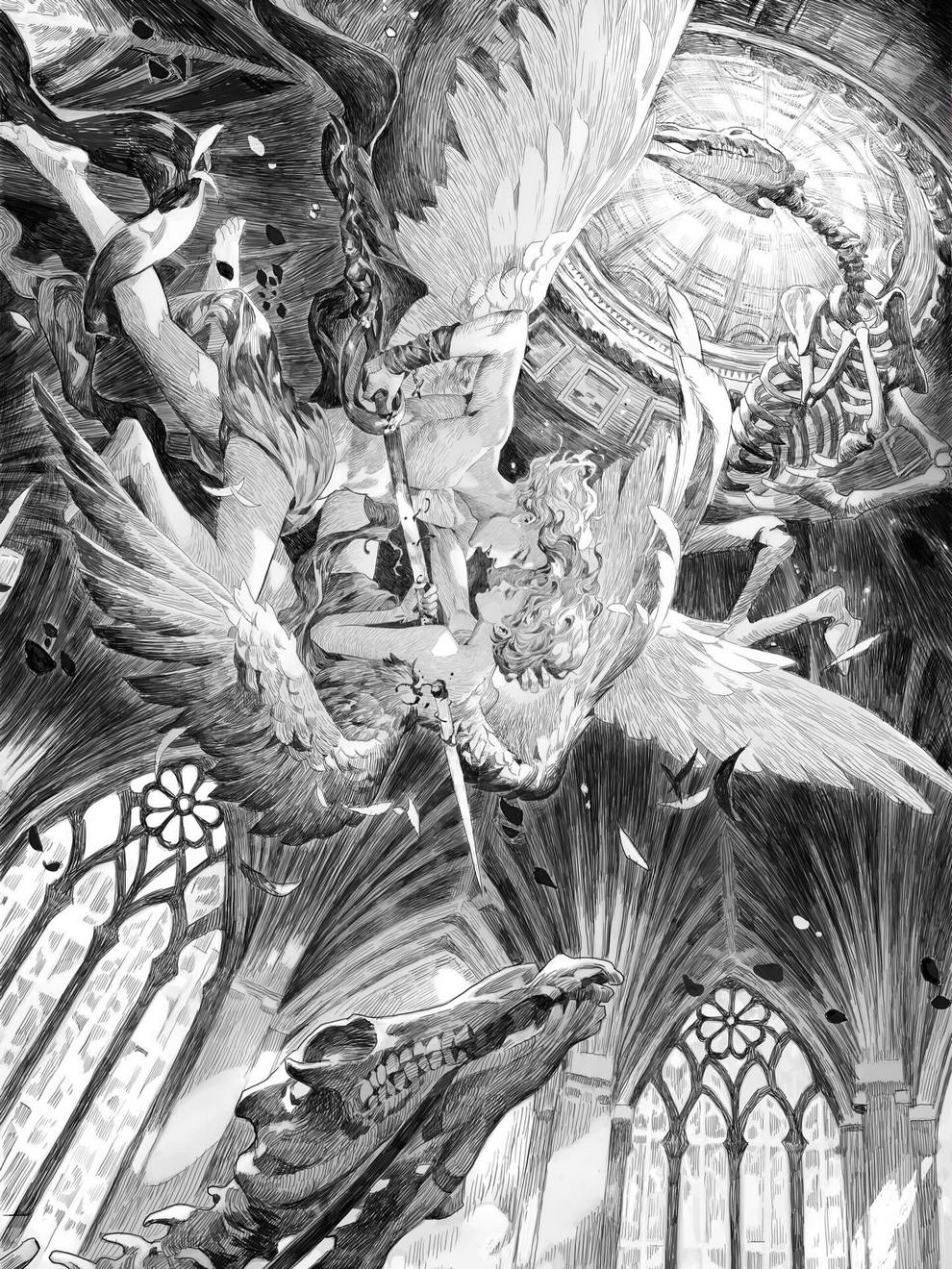 Breathtaking Anime‑inspired Scenes Mixing Religious Symbolism And Sci‑fi Vibes in Ink Drawings by Feng Wei