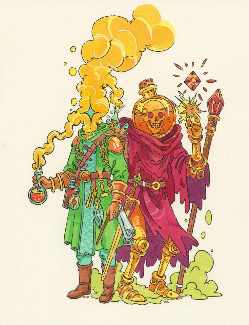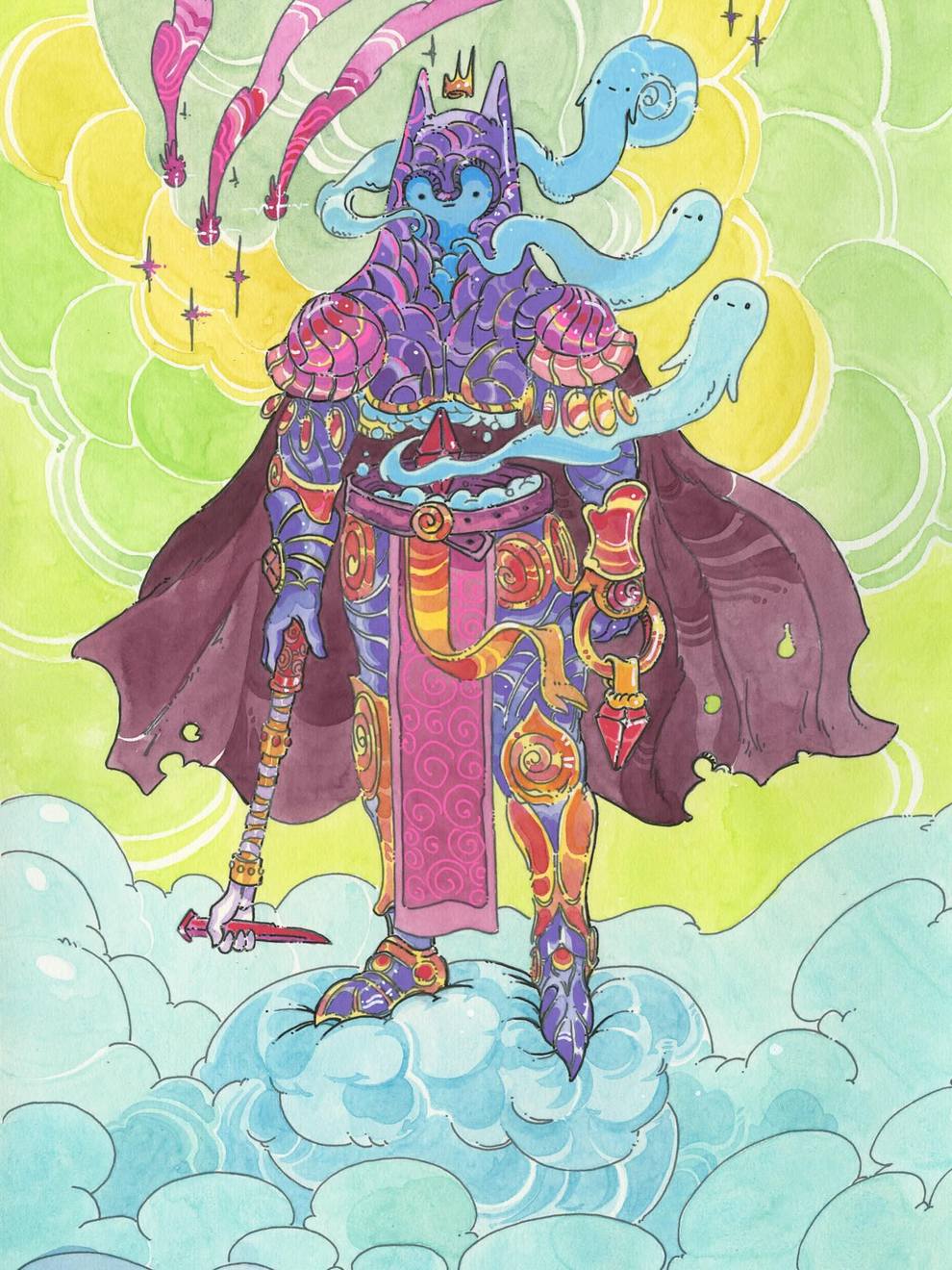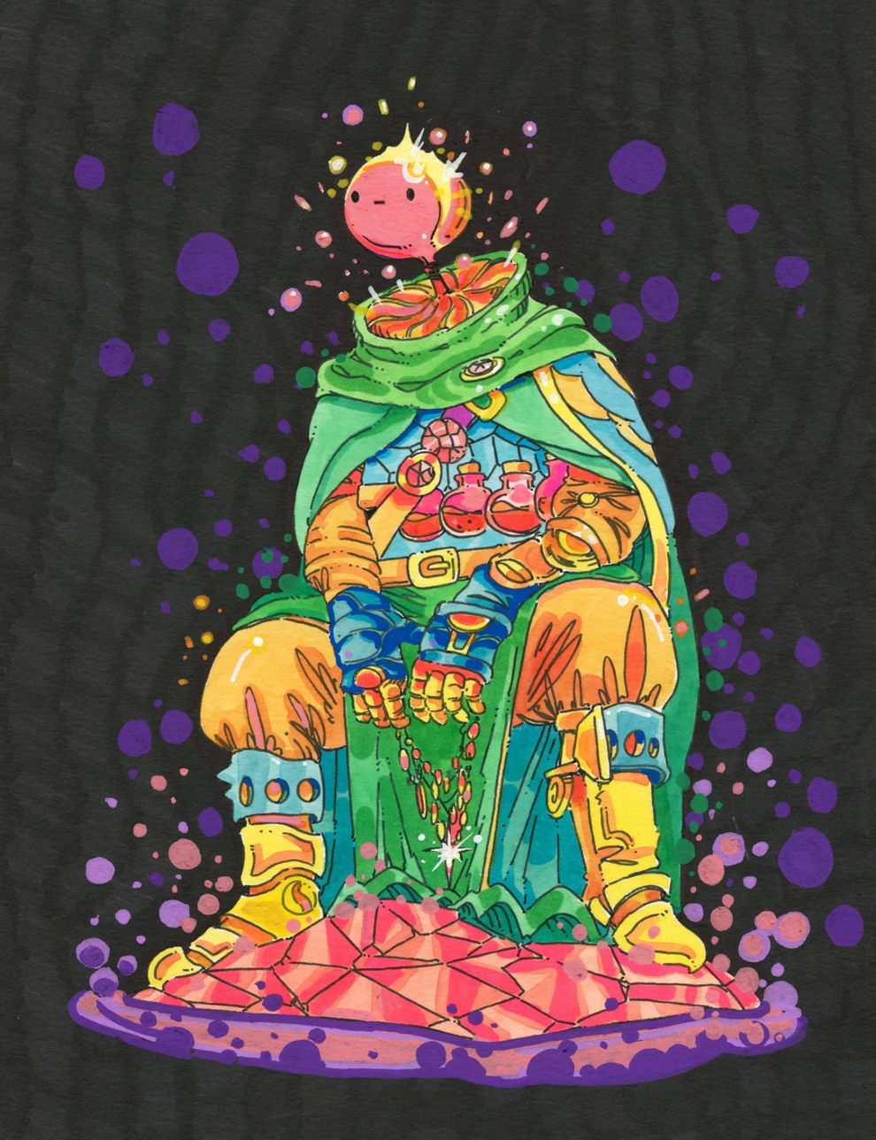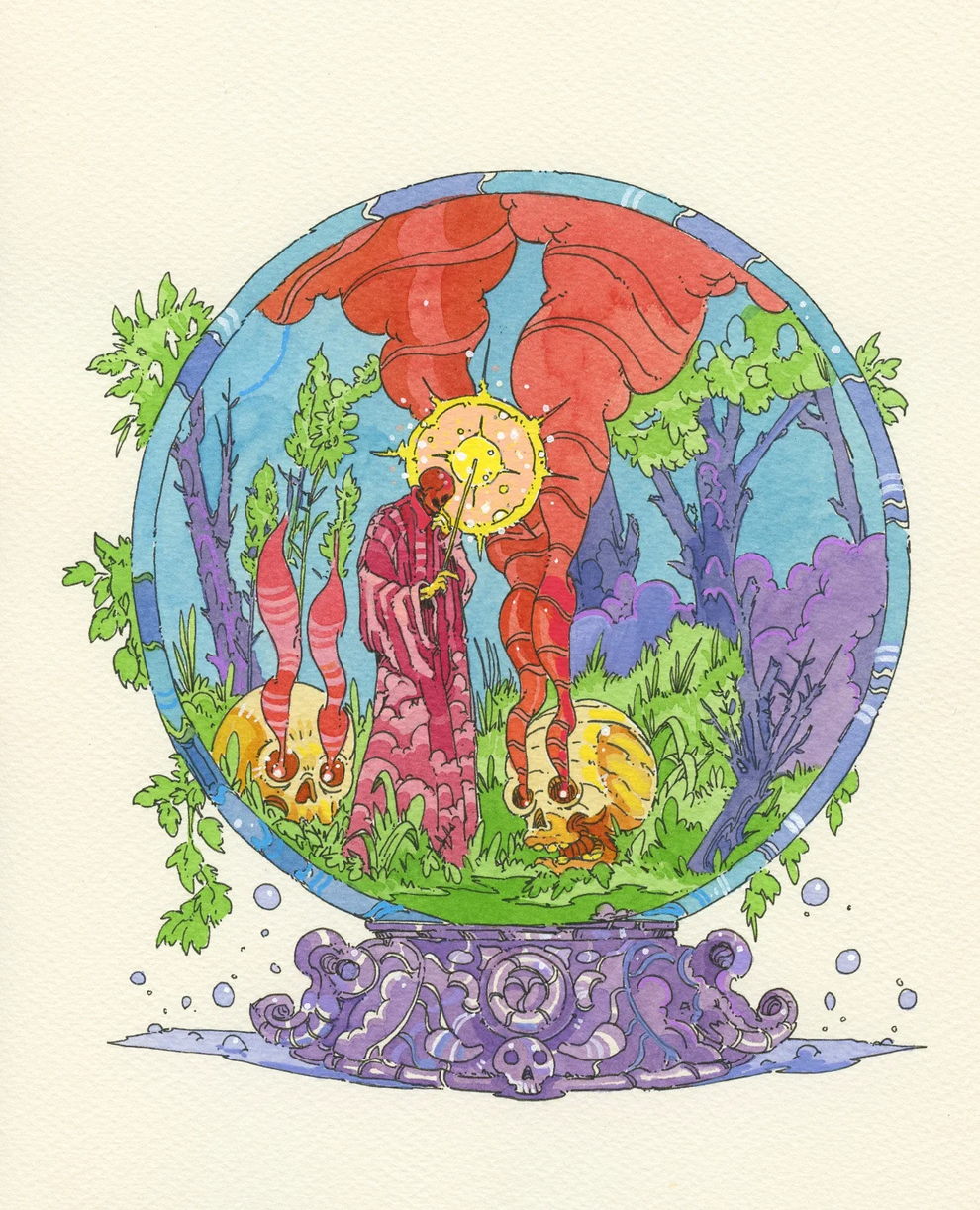John Gagne is a fantasy illustrator specializing in world‑building, watercolor character designs and surreal concept art like “The Ghost King” and “Crimson Wizards,” blending pop surrealism with dark, atmospheric fantasy themes.