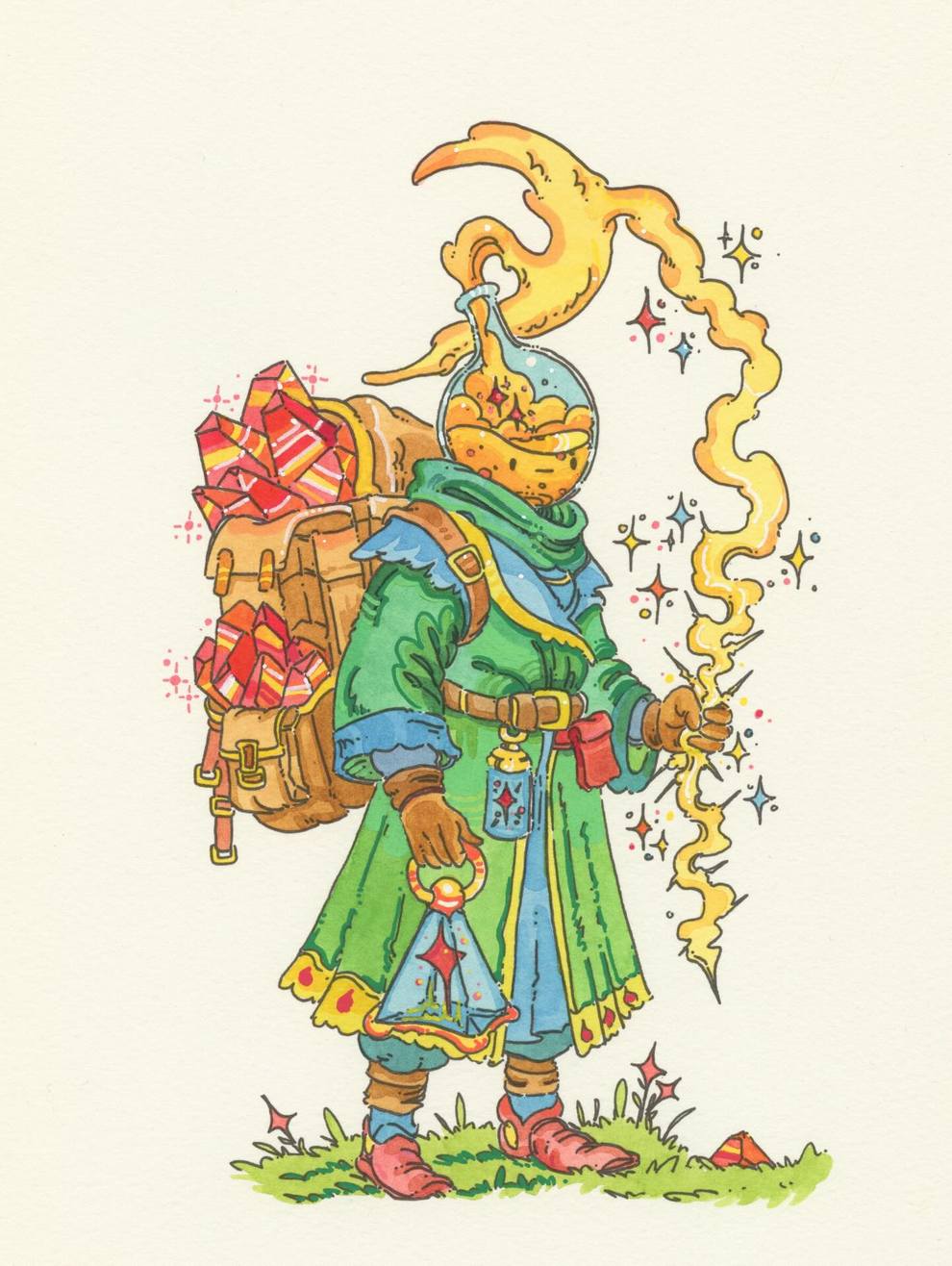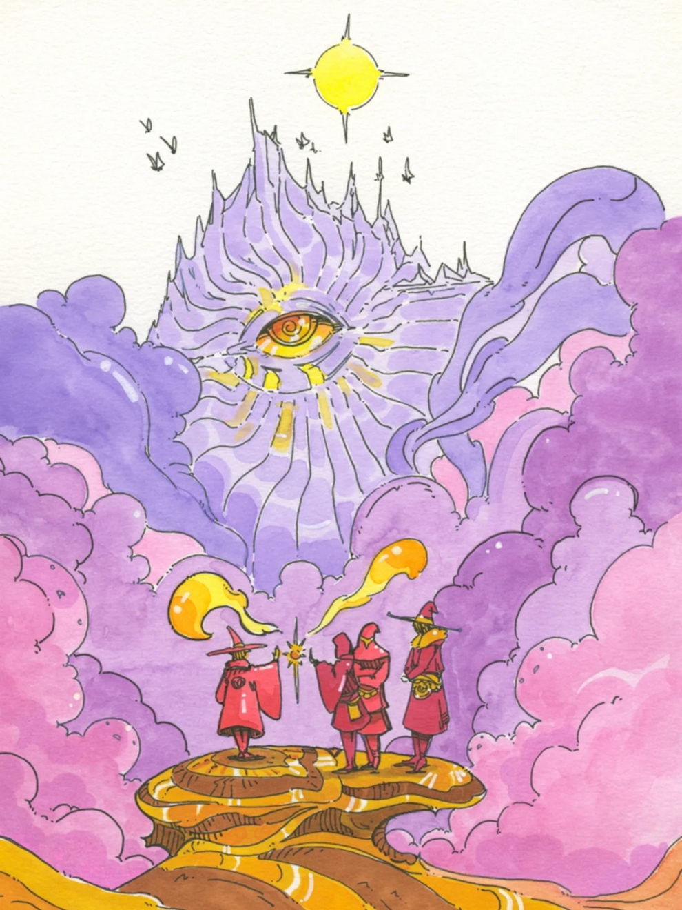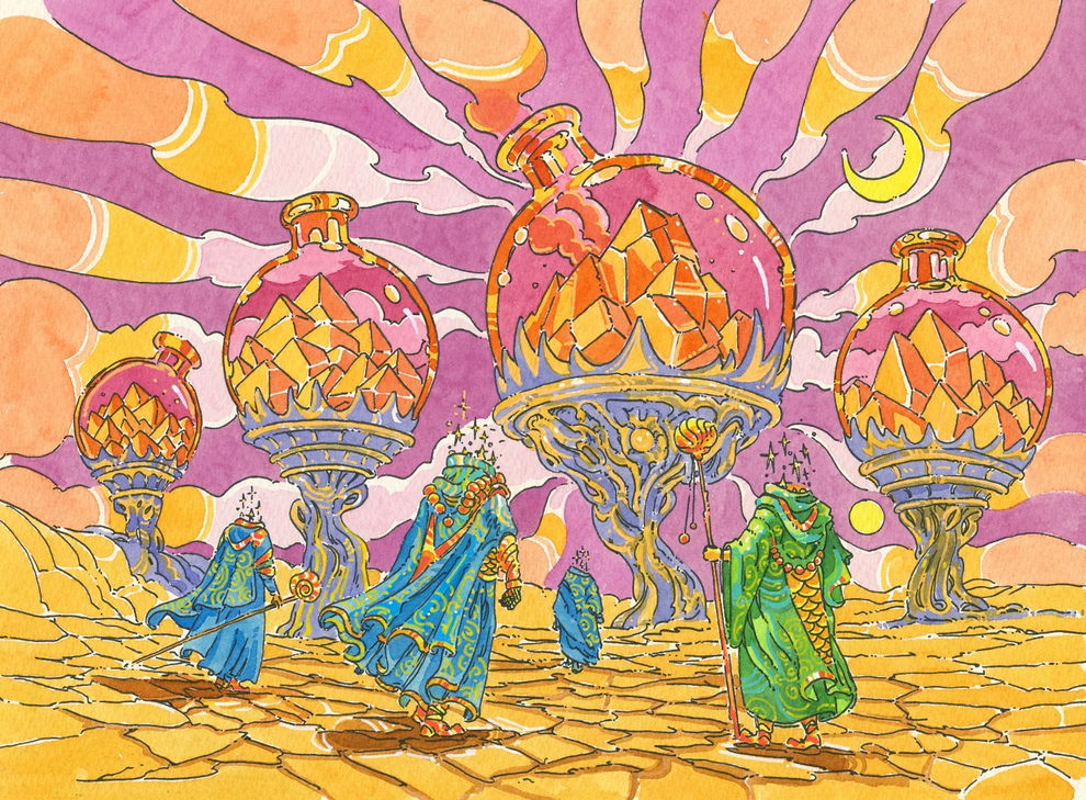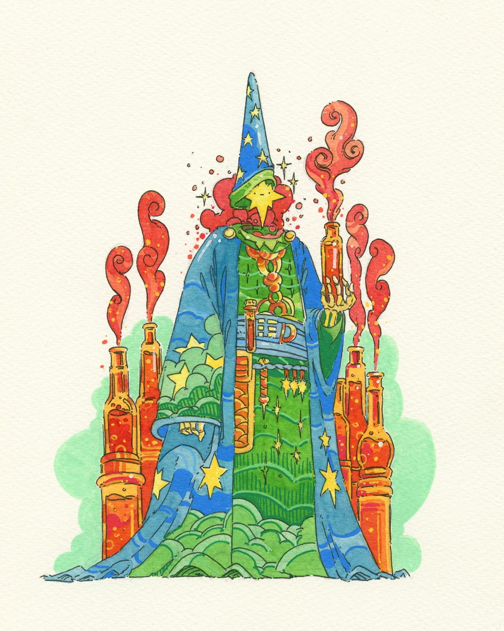 John Gagne is a fantasy illustrator specializing in world‑building, watercolor character designs and surreal concept art like “The Ghost King” and “Crimson Wizards,” blending pop surrealism with dark, atmospheric fantasy themes.