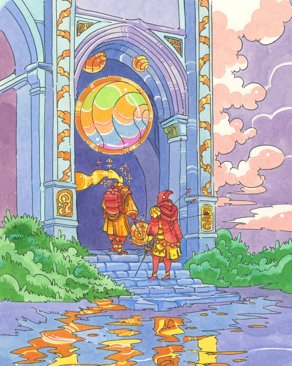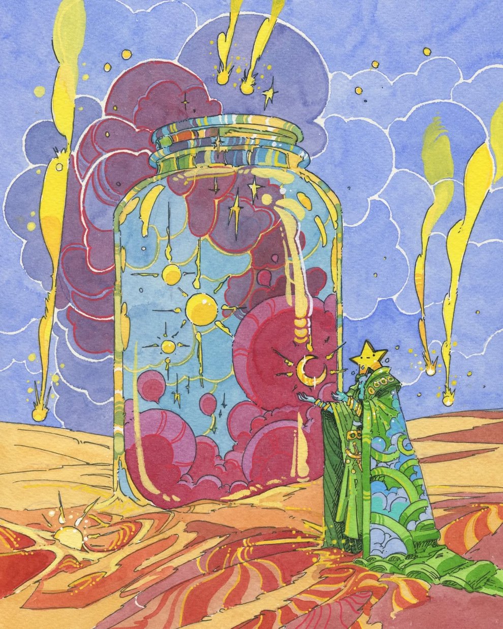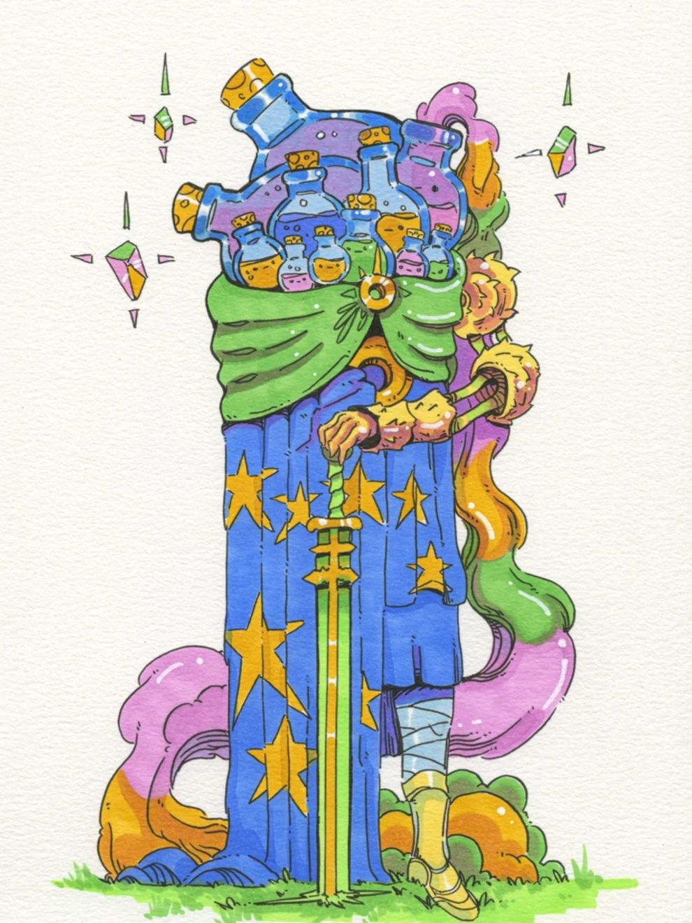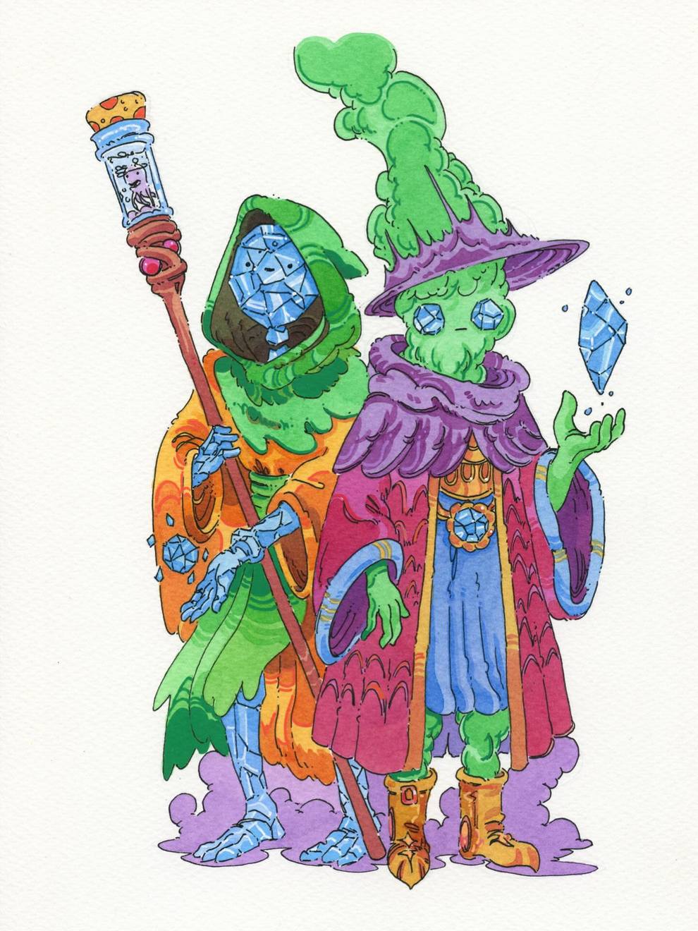 John Gagne is a fantasy illustrator specializing in world‑building, watercolor character designs and surreal concept art like “The Ghost King” and “Crimson Wizards,” blending pop surrealism with dark, atmospheric fantasy themes.