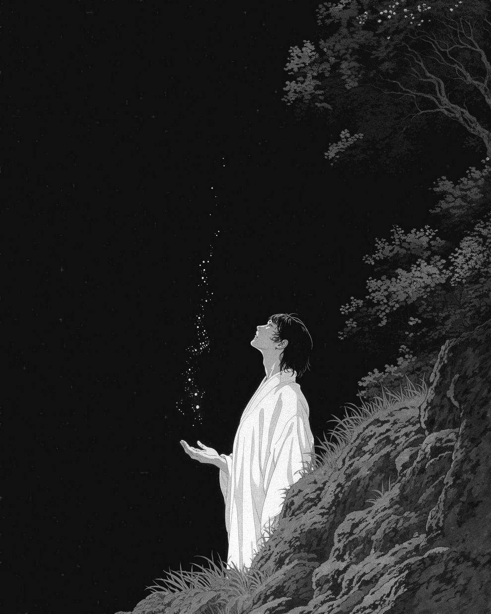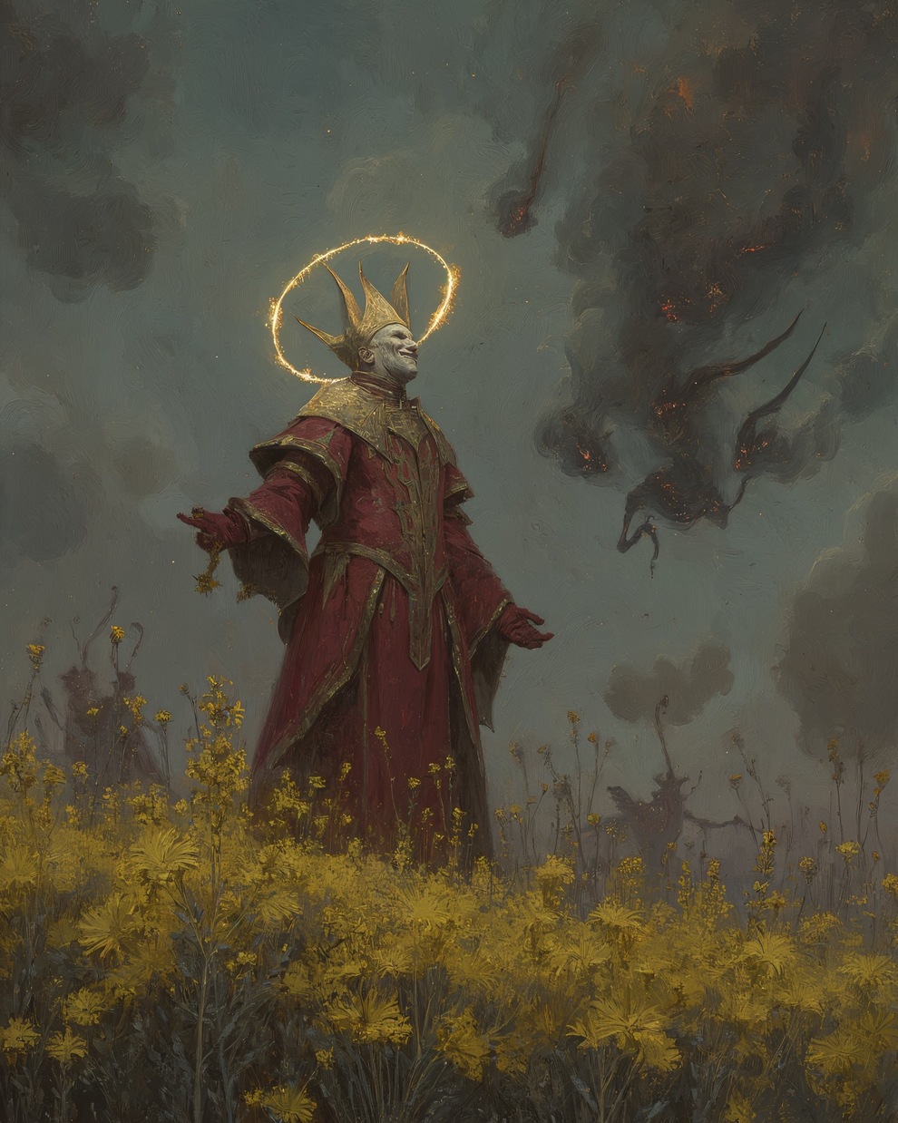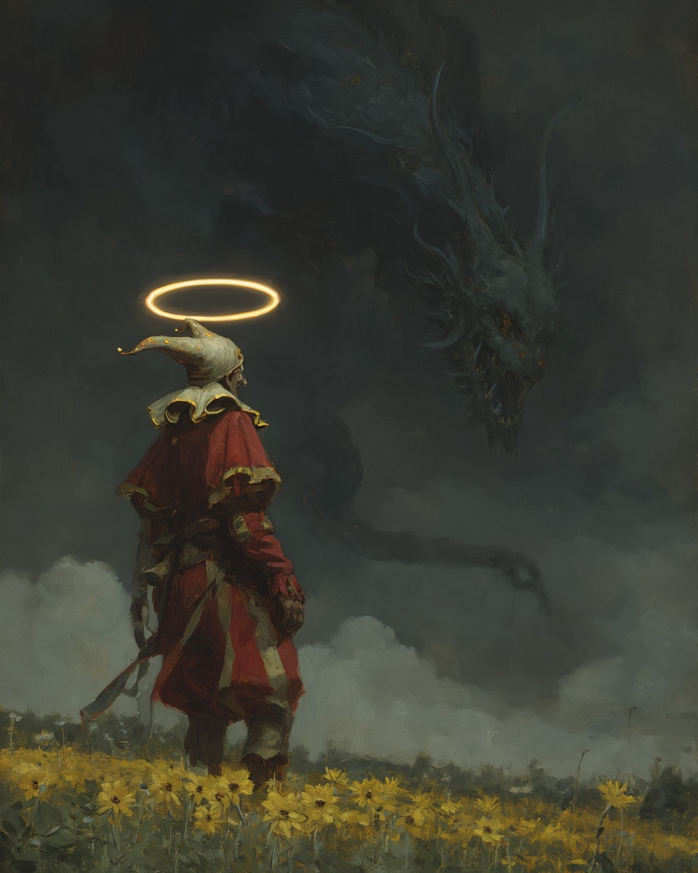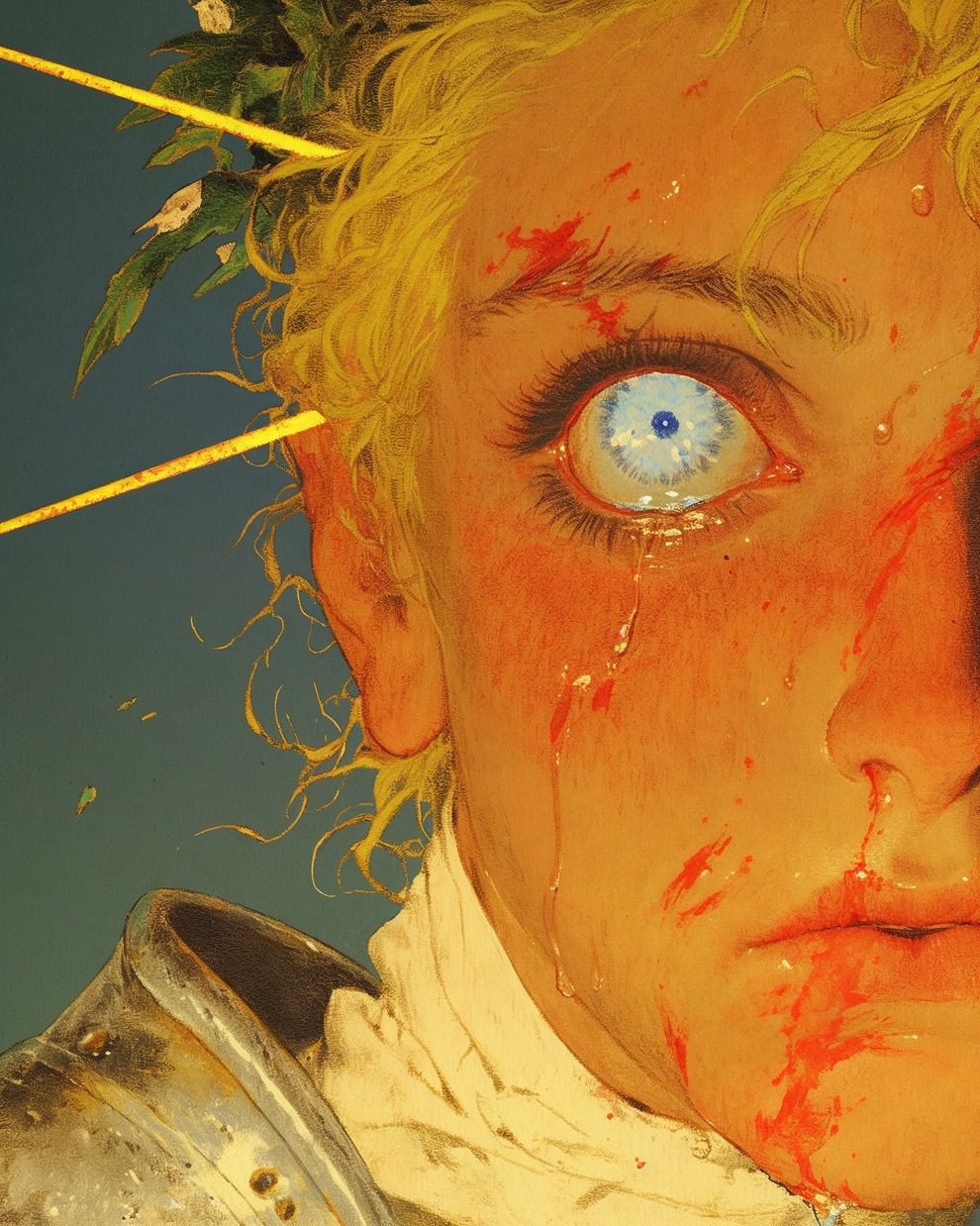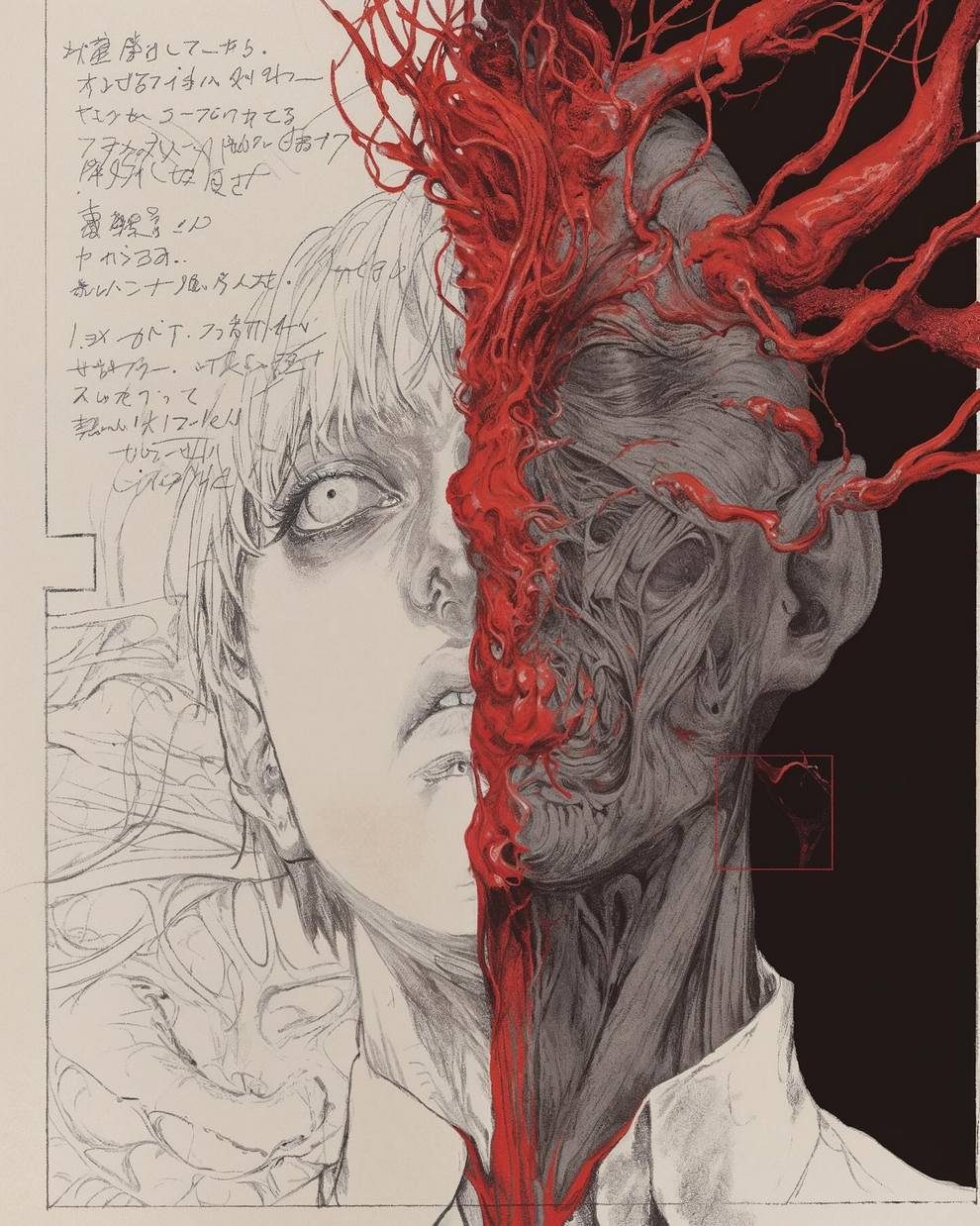 His mixes moonlit figures, death motifs, Vatican museum reflections, ritualistic imagery and prompt‑driven experiments (e.g., “This Is Not a Prompt Book” sold via Ko‑fi), with pieces exploring loneliness, darkness, beauty, betrayal and mythic gates.