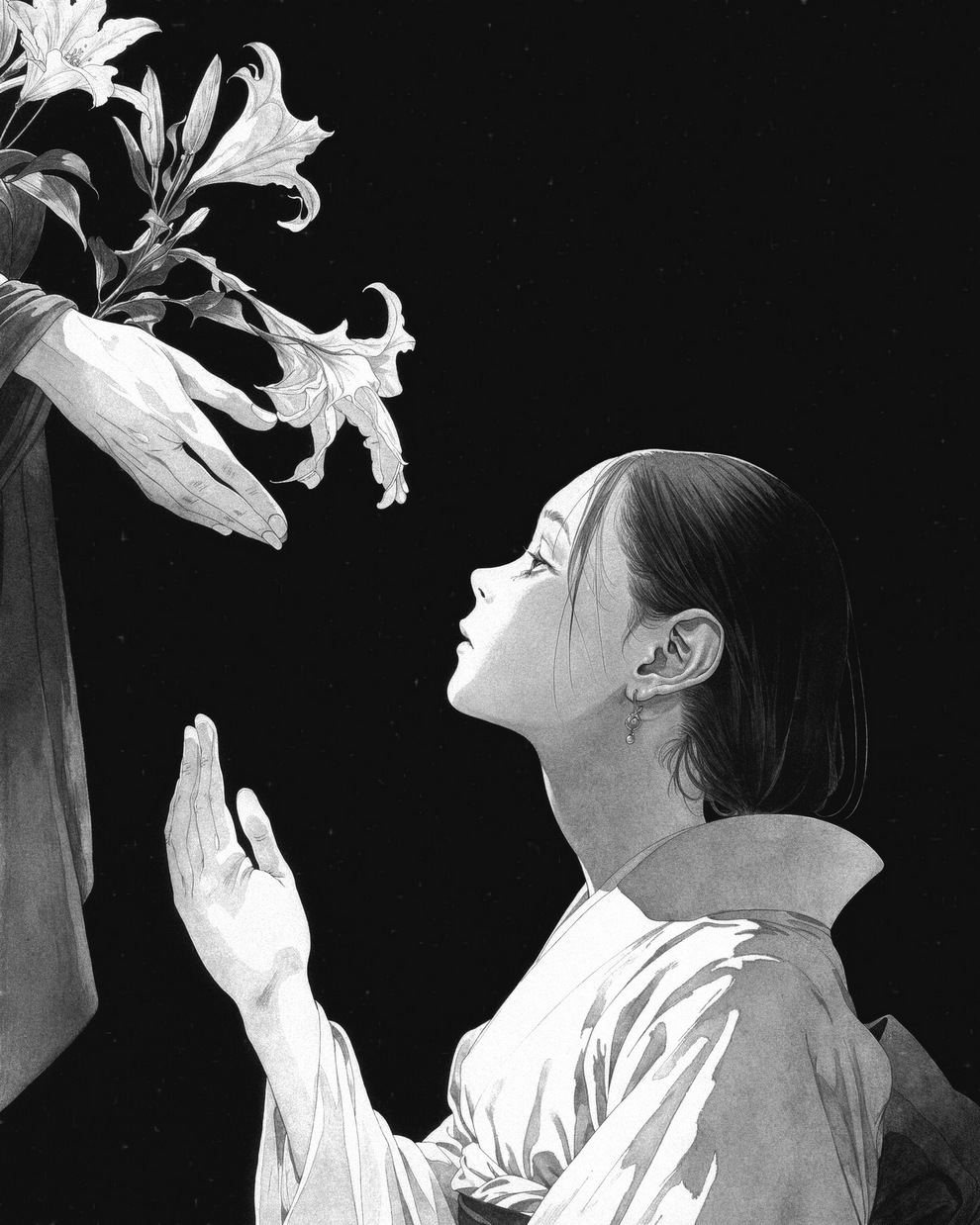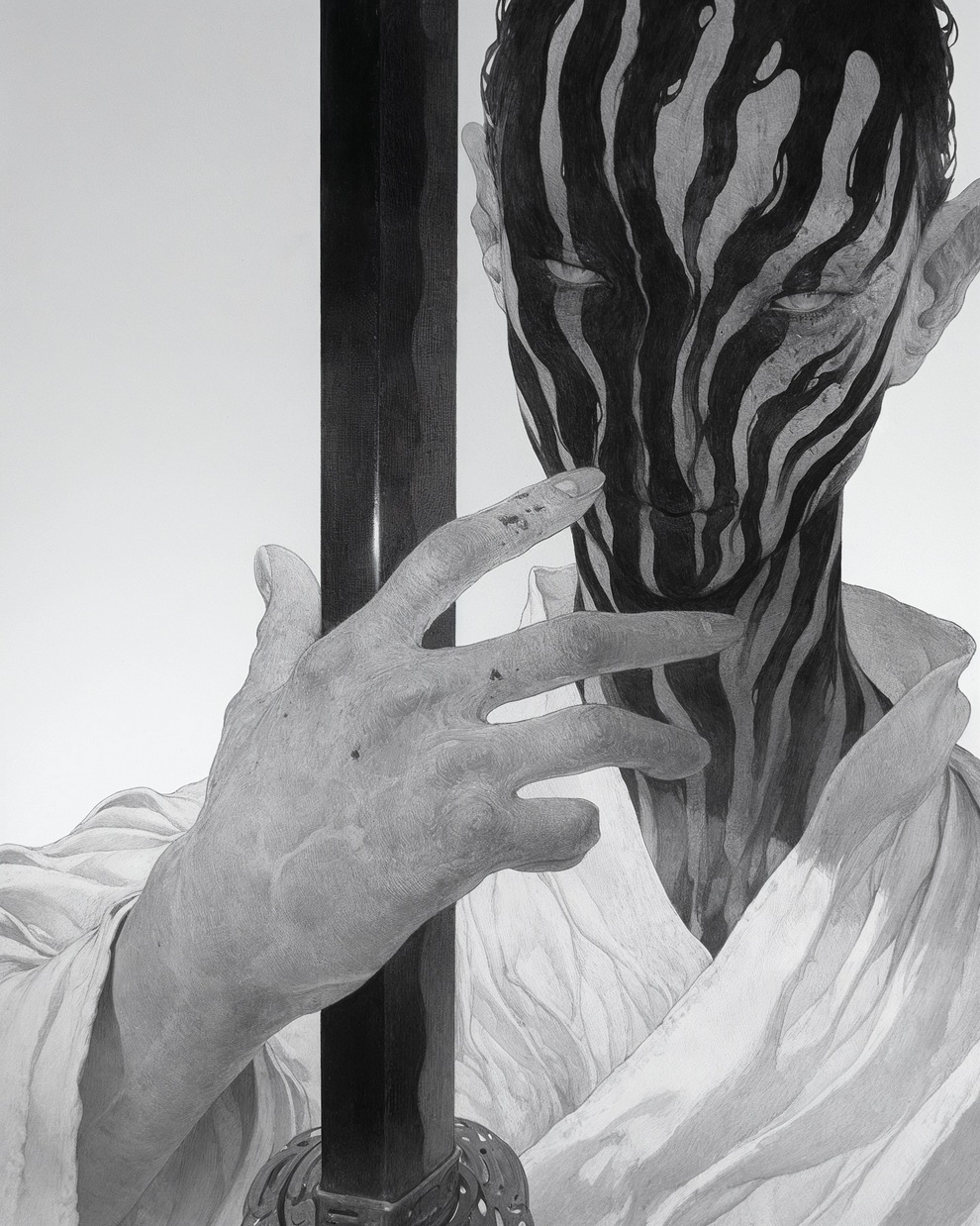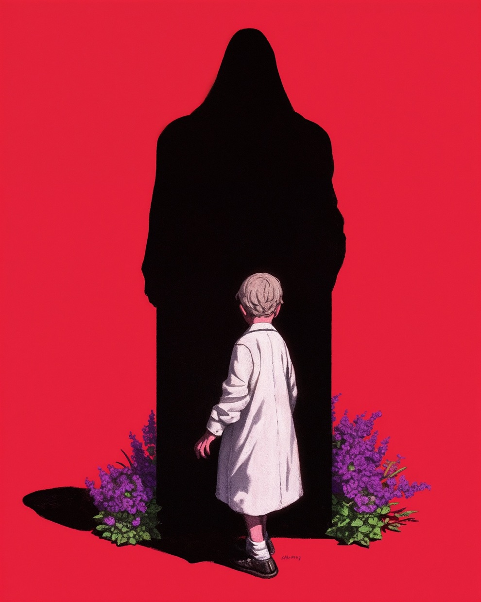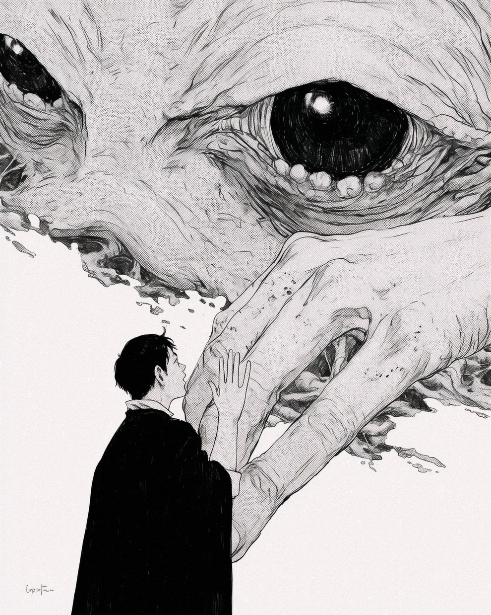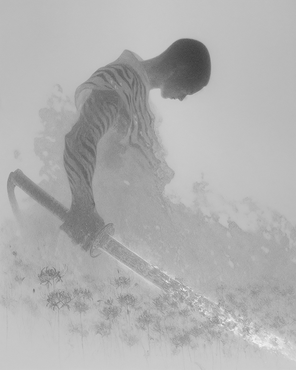 His mixes moonlit figures, death motifs, Vatican museum reflections, ritualistic imagery and prompt‑driven experiments (e.g., “This Is Not a Prompt Book” sold via Ko‑fi), with pieces exploring loneliness, darkness, beauty, betrayal and mythic gates.